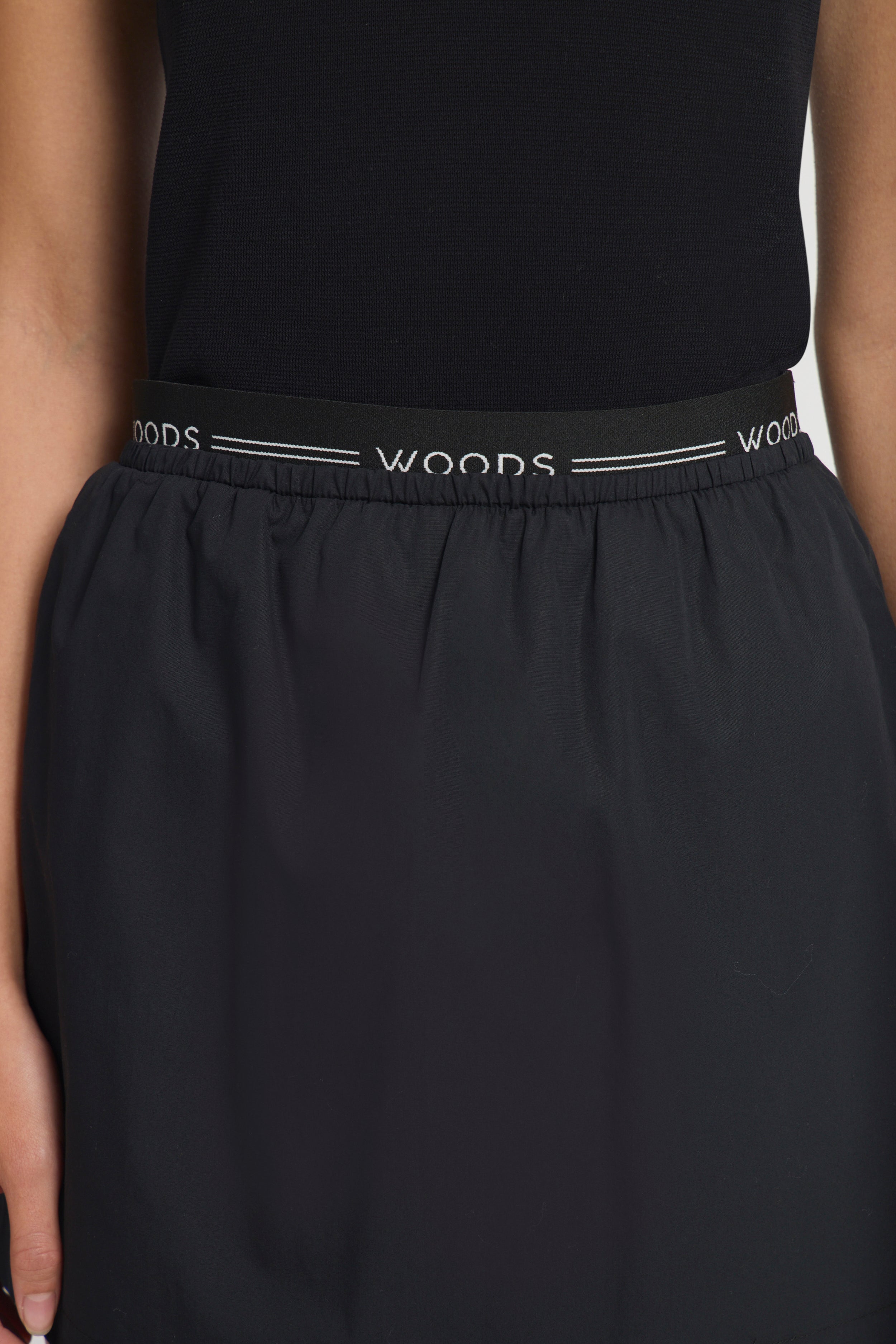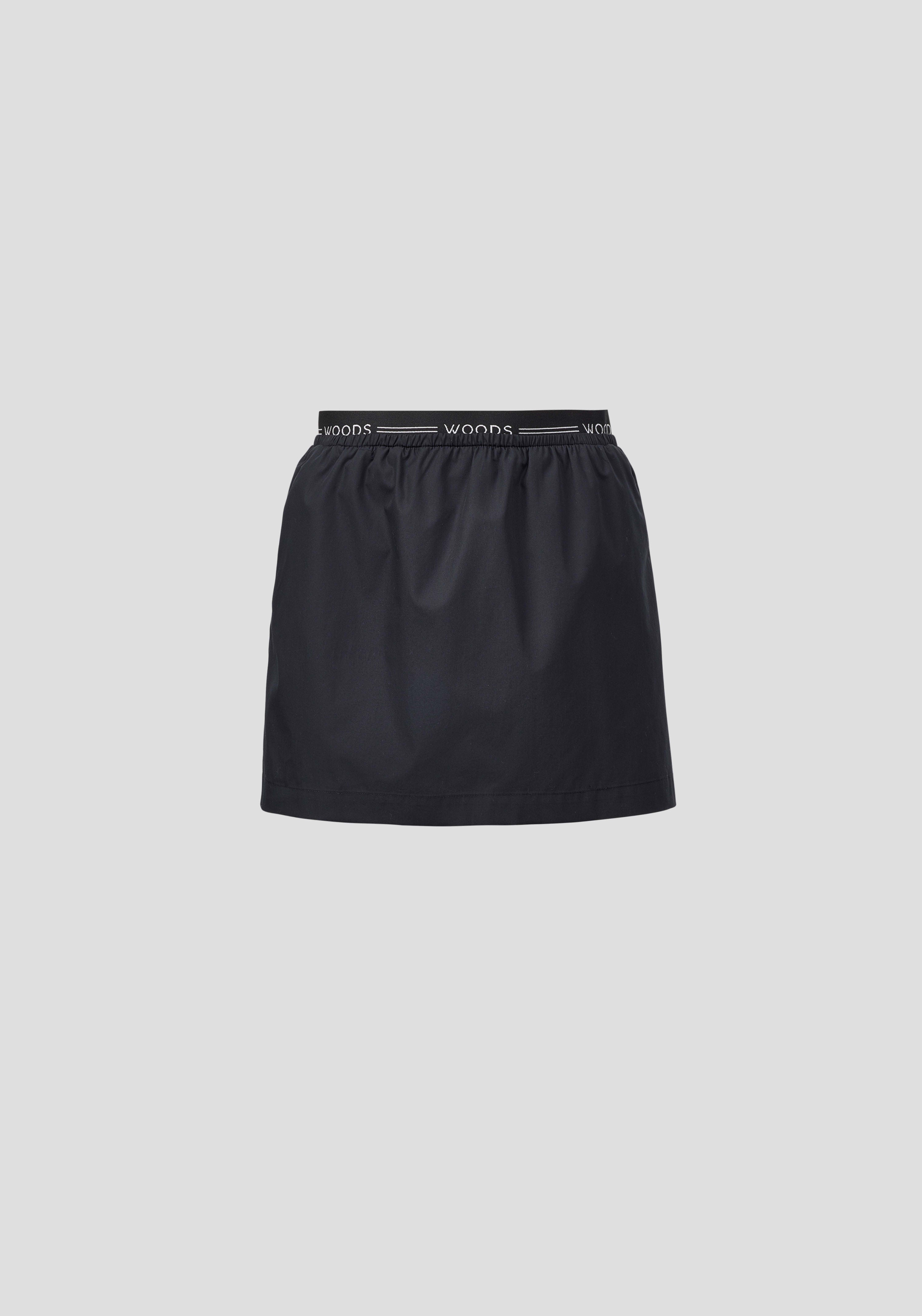 The Alistair Skirt is the answer to effortless everyday ease, crafted in black cotton for versatile wear. Showcasing a mini, soft A-line silhouette, an elasticated WOODS waistband, and pockets, it becomes an instant staple - pairing back with your essentials for an off-duty, sporty look.