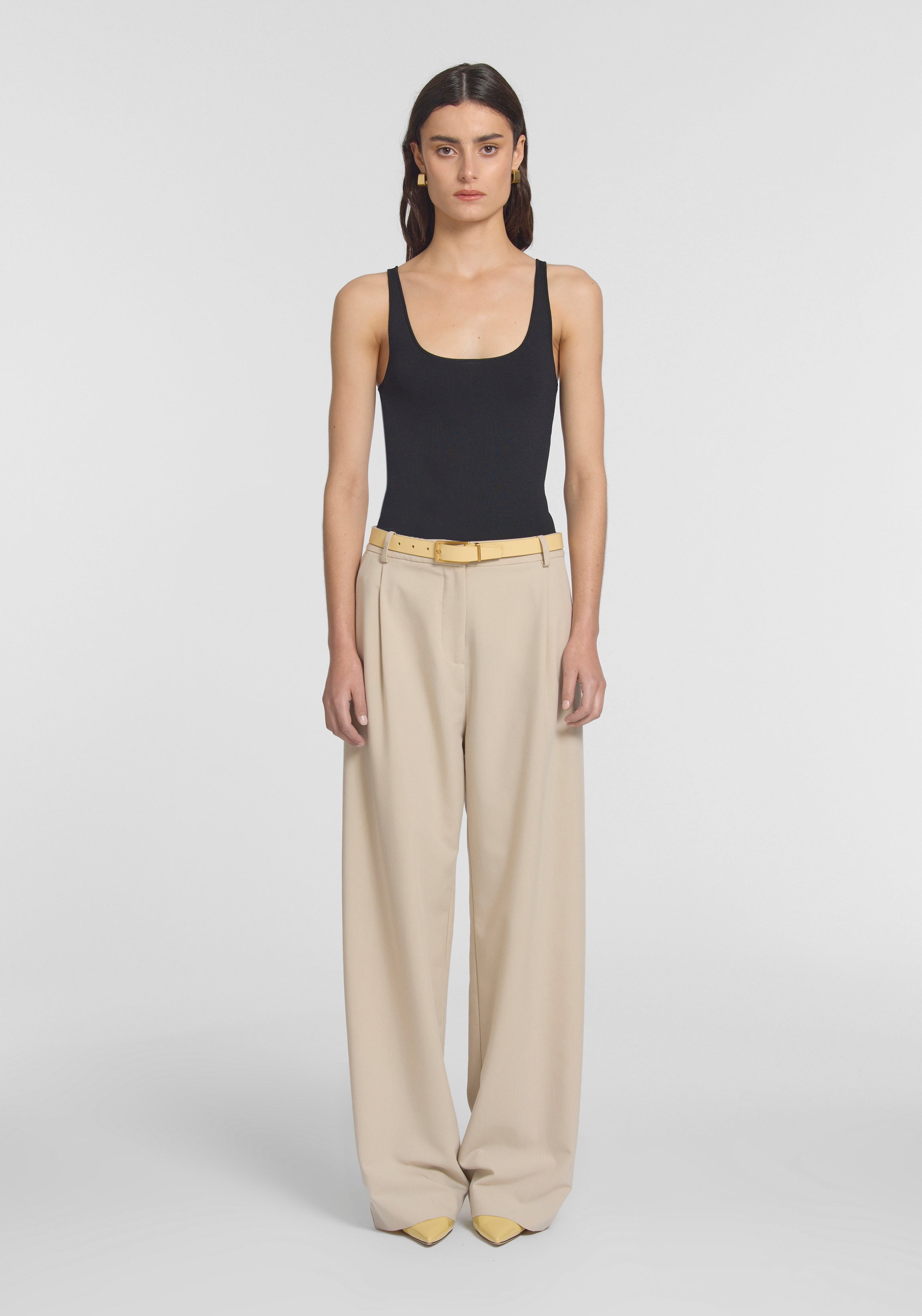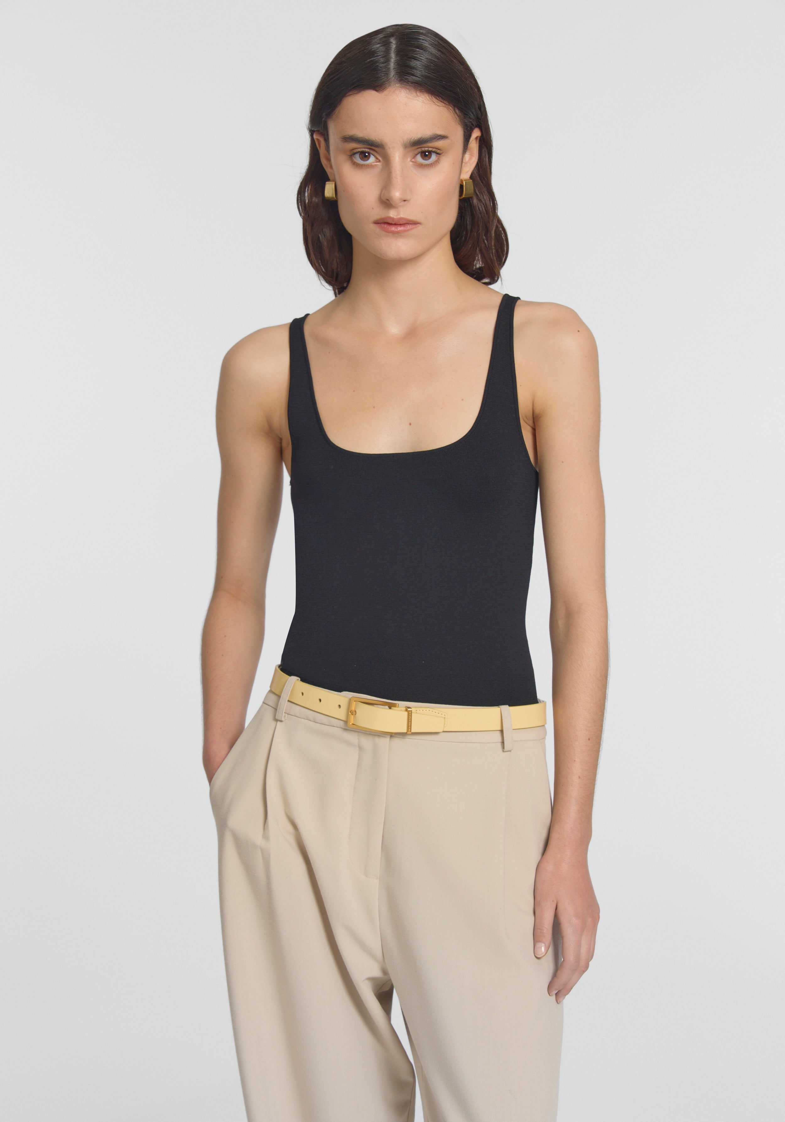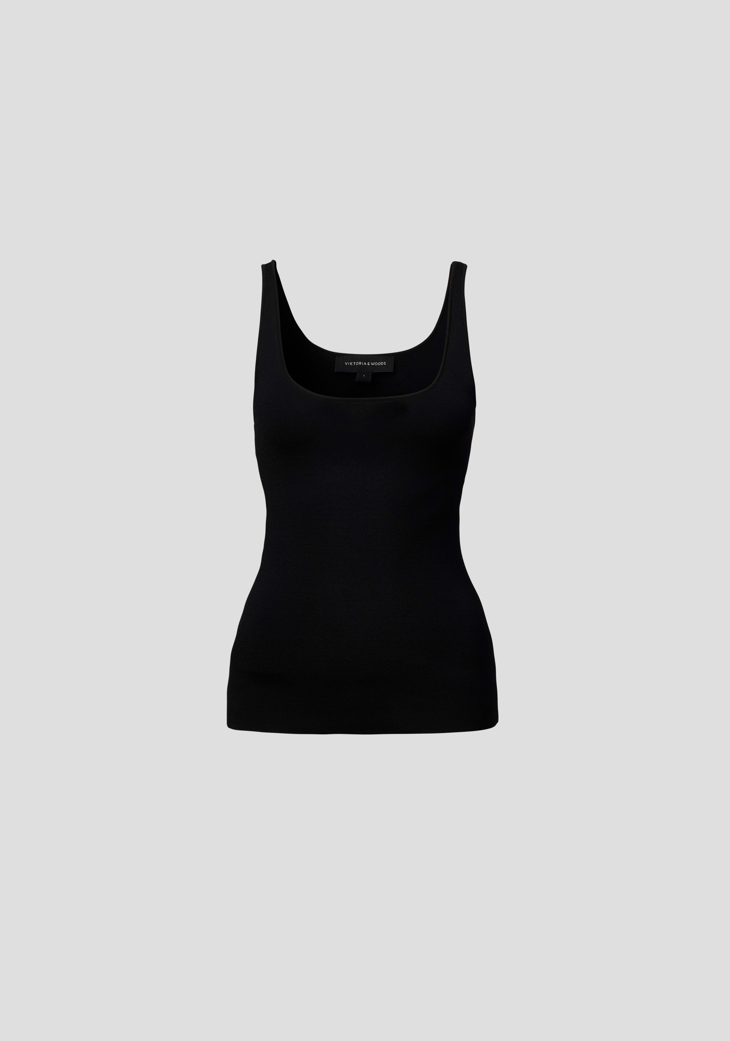 A luxurious essential, the Amity Tank in black is crafted in a mid-weight milano stitch for a form fitting finish. Showcasing a scooped neckline and a V&W metal plate at the back, it can be styled with the branding at the front or back. A layering staple, it adds effortless sophistication to your everyday rotation.