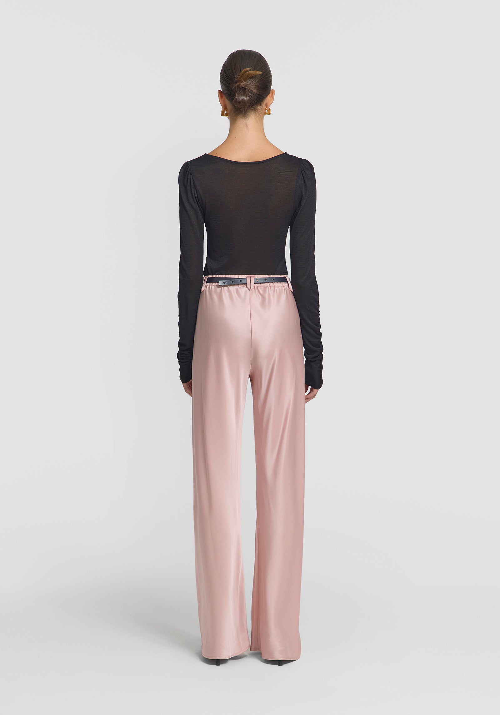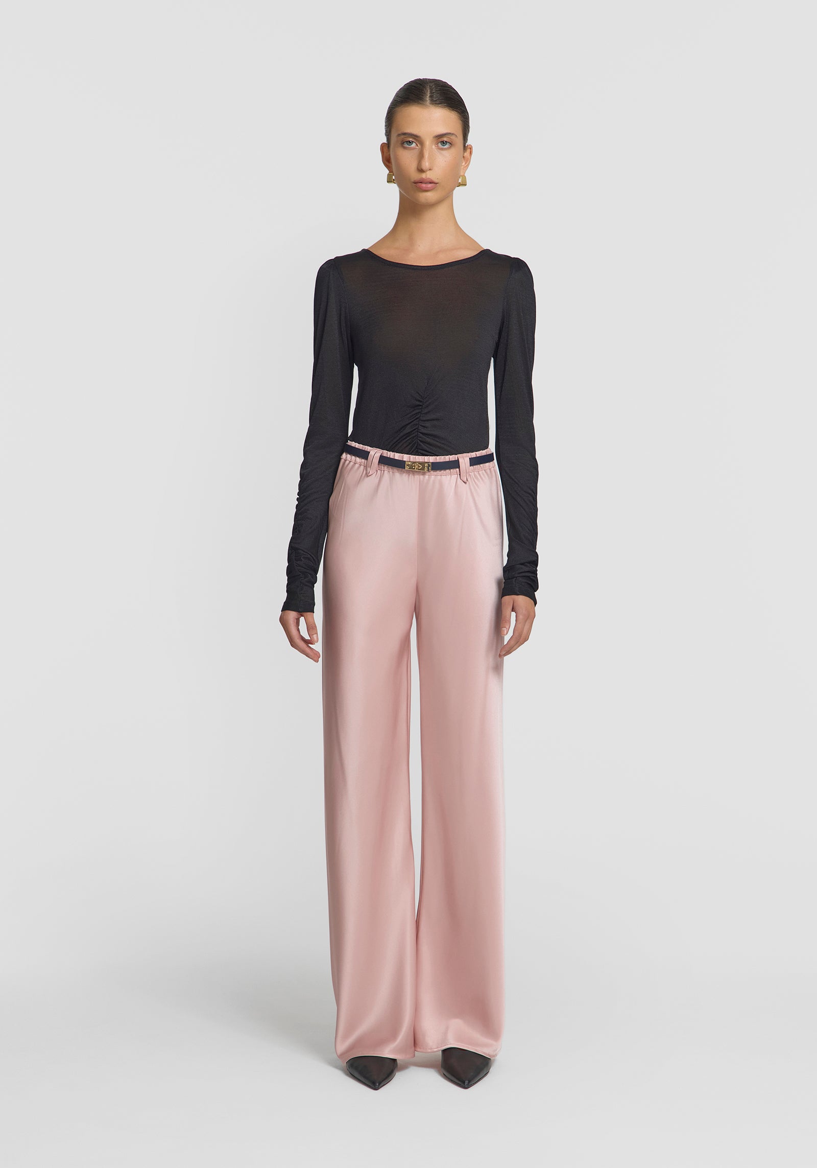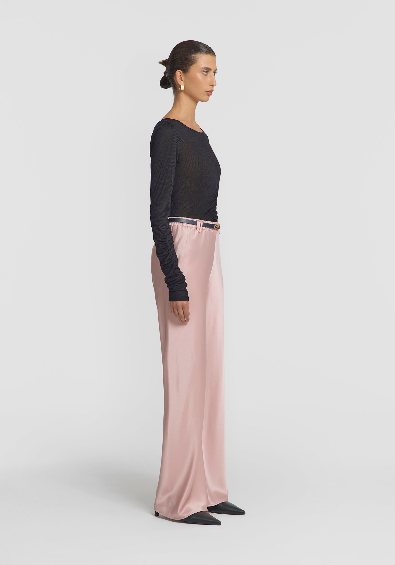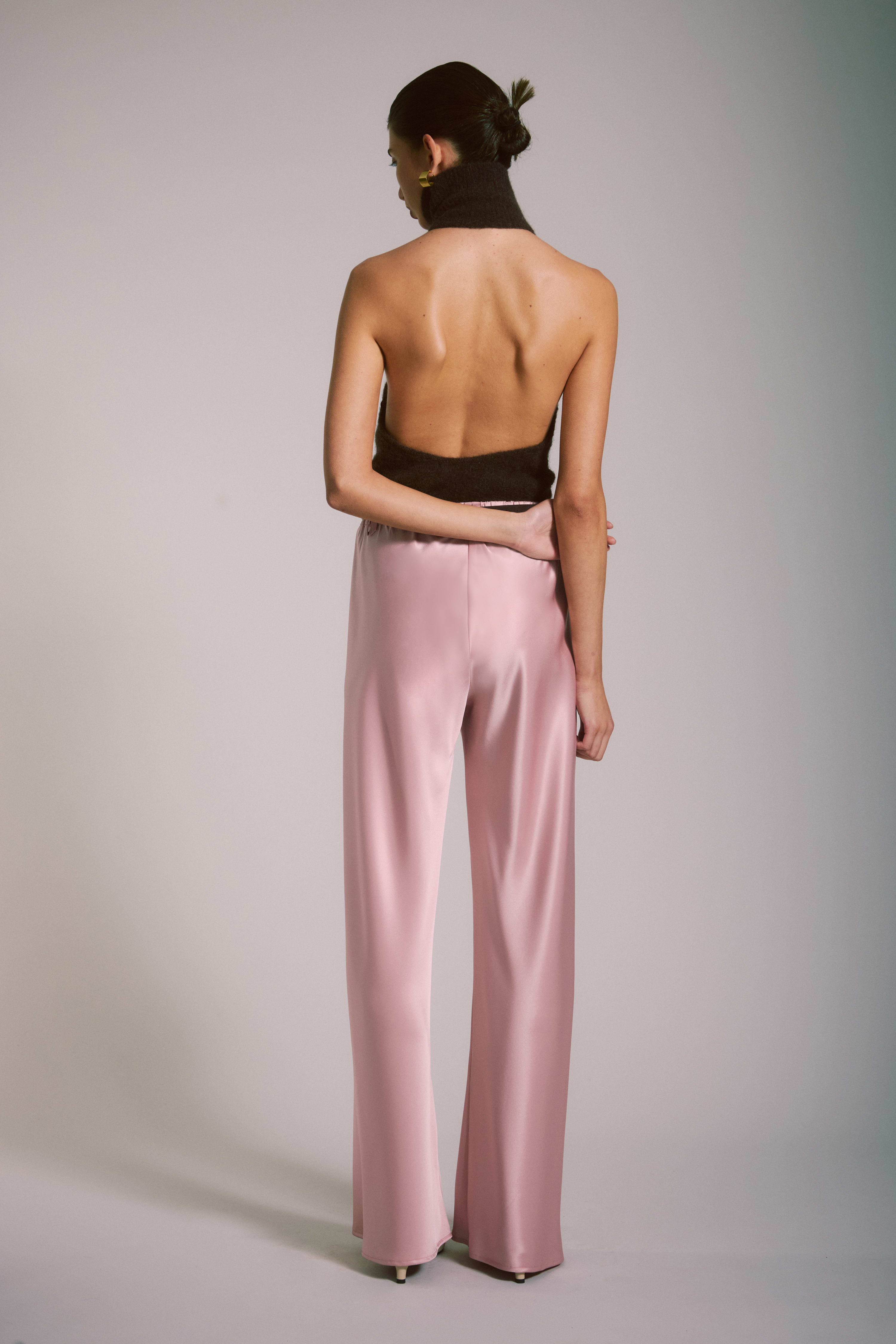 Embrace sophisticated ease in the Arcadia Pant, crafted in a smokey rose pink. With a mid-rise fit, straight-leg silhouette, encased elastic waistband, belt loops, and a bias cut, this pant drapes effortlessly. Pair with the Solstice Shirt for a silky, effortless set, or combine with this season’s rich brown hues for a contrasting look.