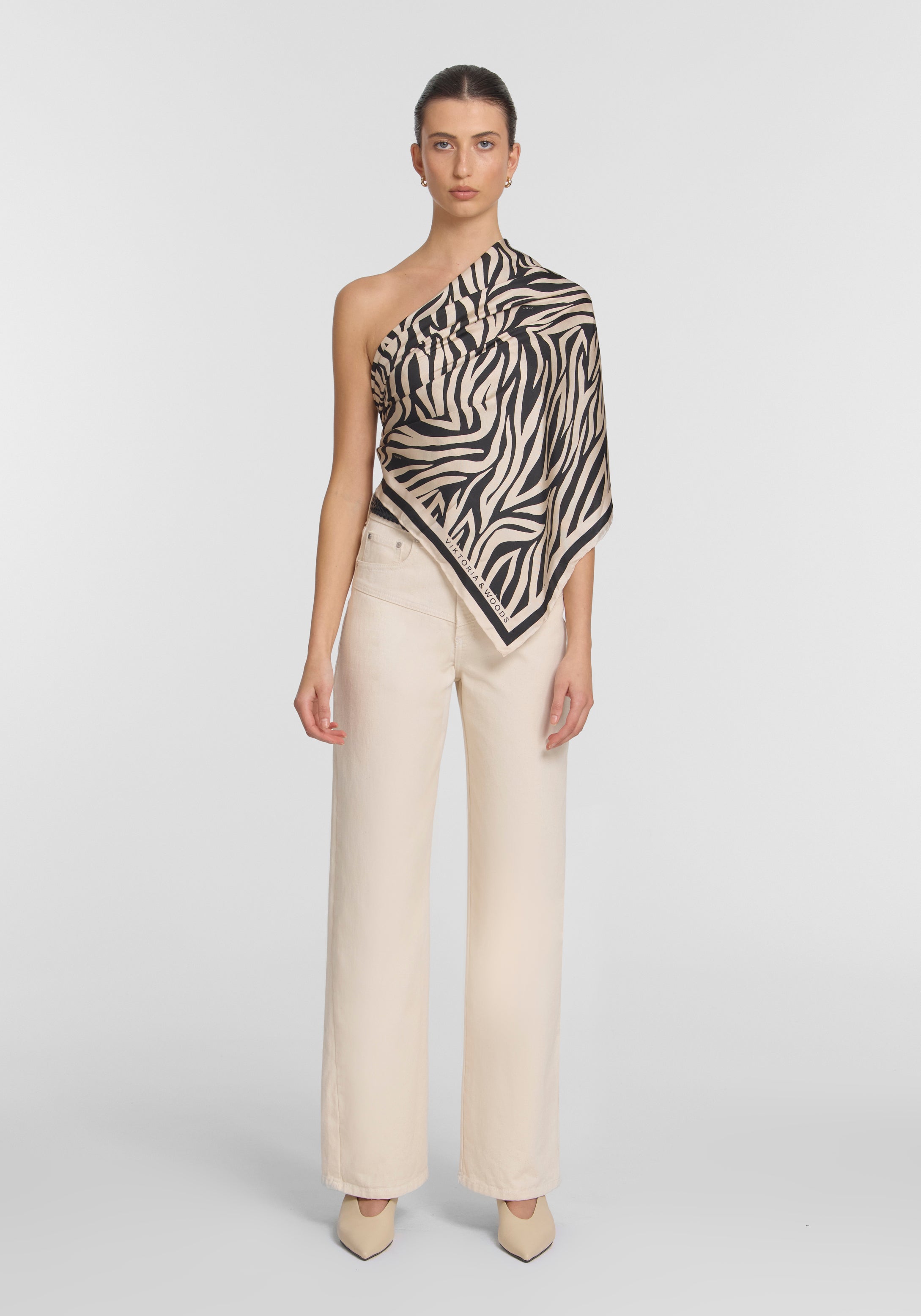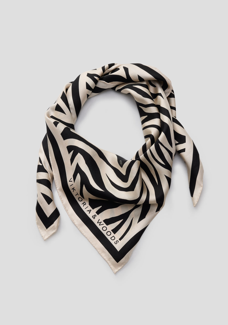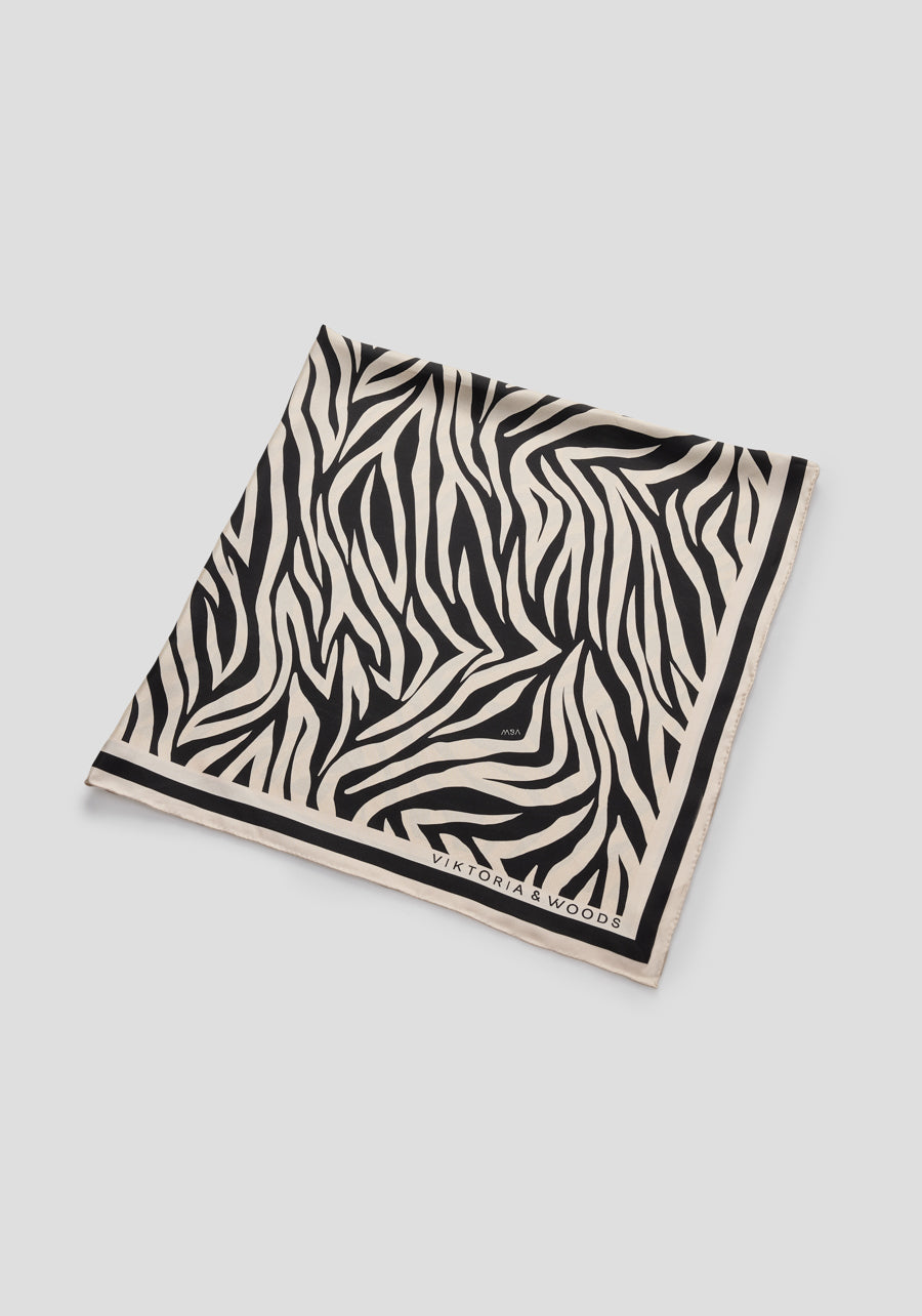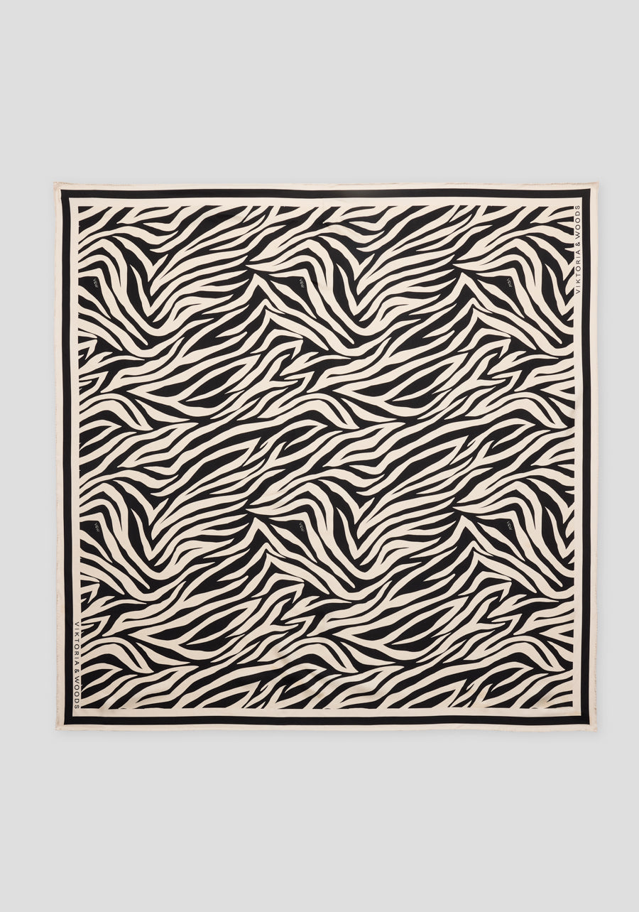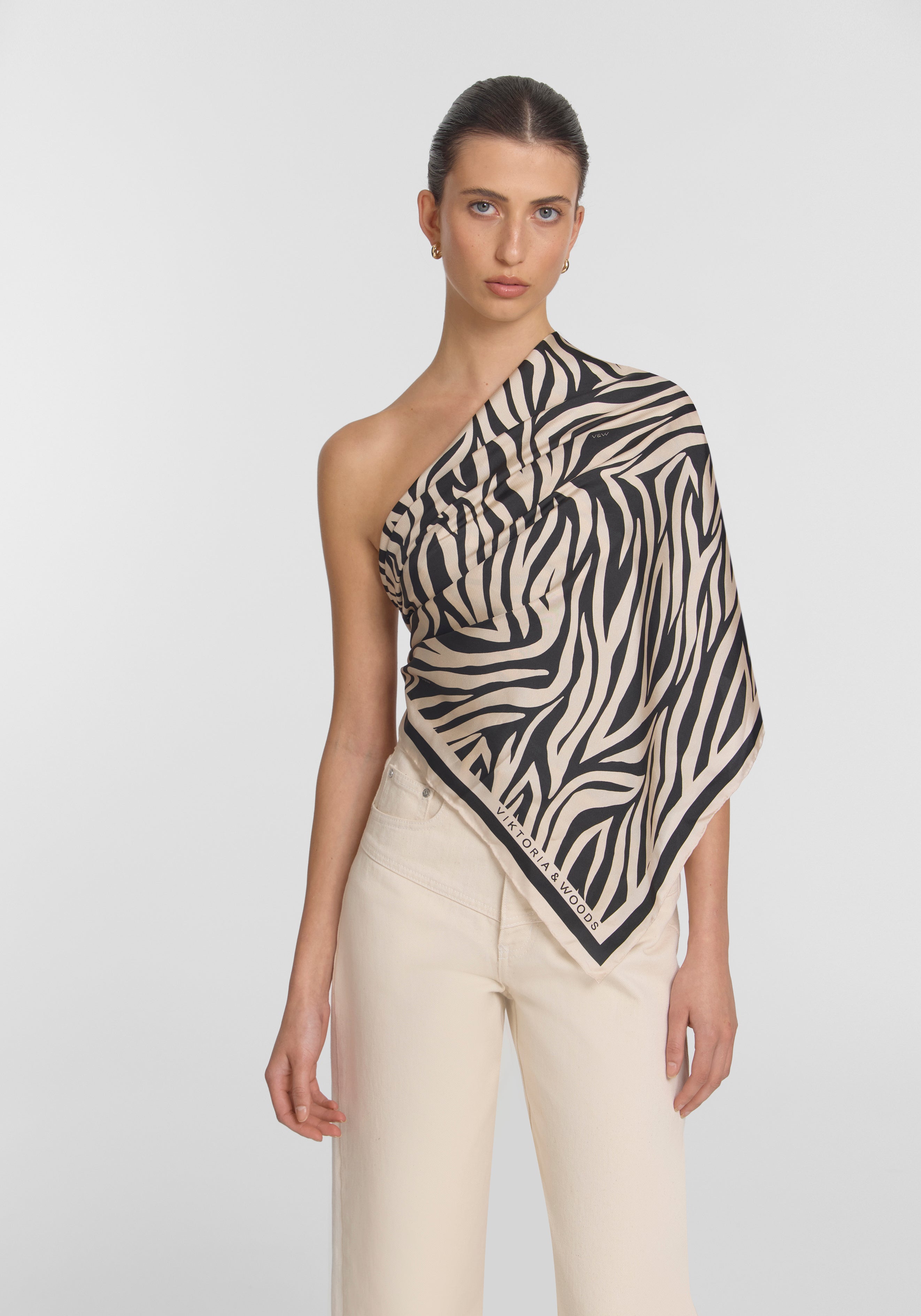 An endlessly wearable, bold statement, the Ari Scarf is crafted from luxurious silk and adorned with a chic zebra print. Featuring fine double-turned edges and a generous size, this versatile piece allows for creative styling - wear it as a headscarf, top, around the neck, or tied to a handbag.