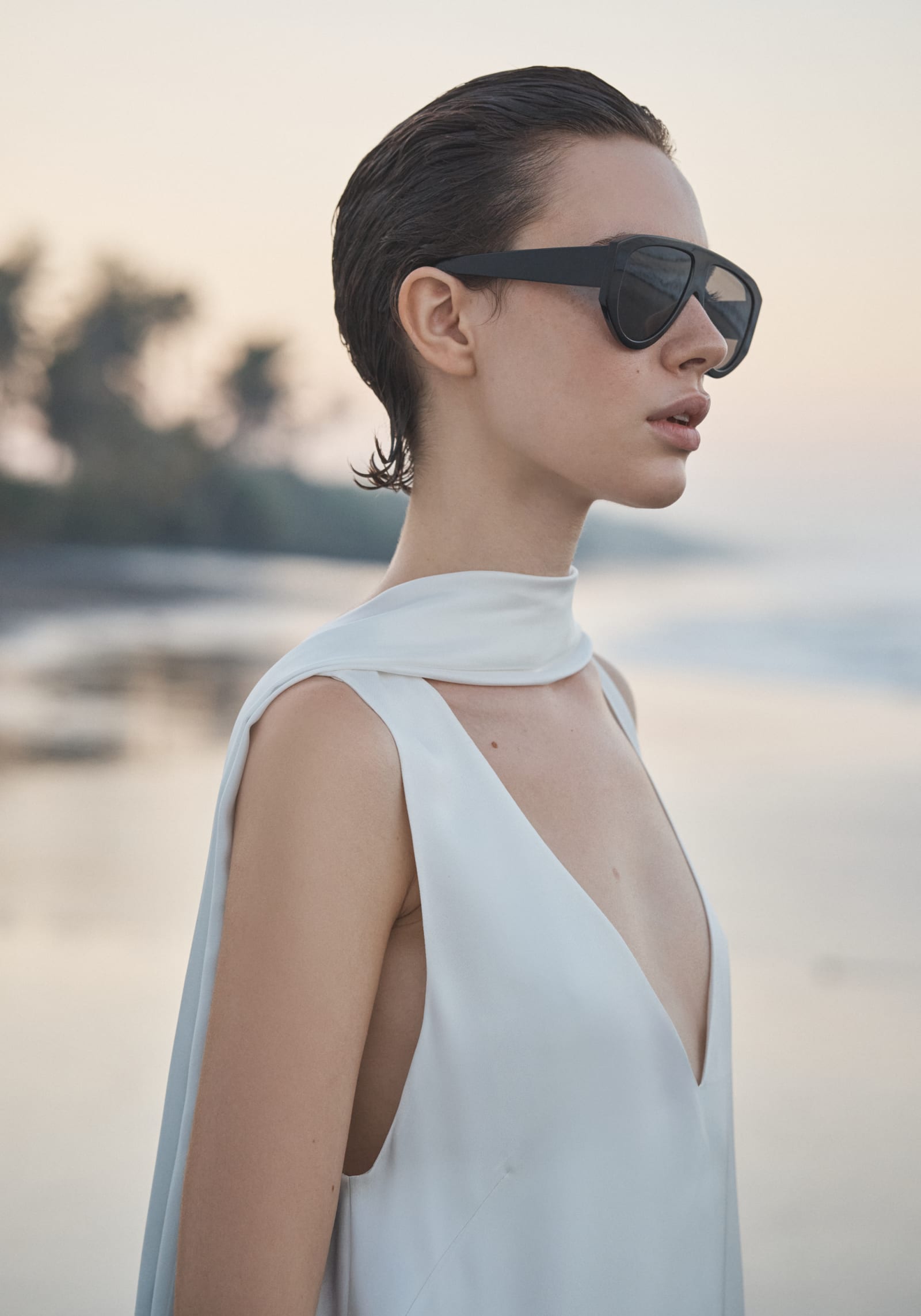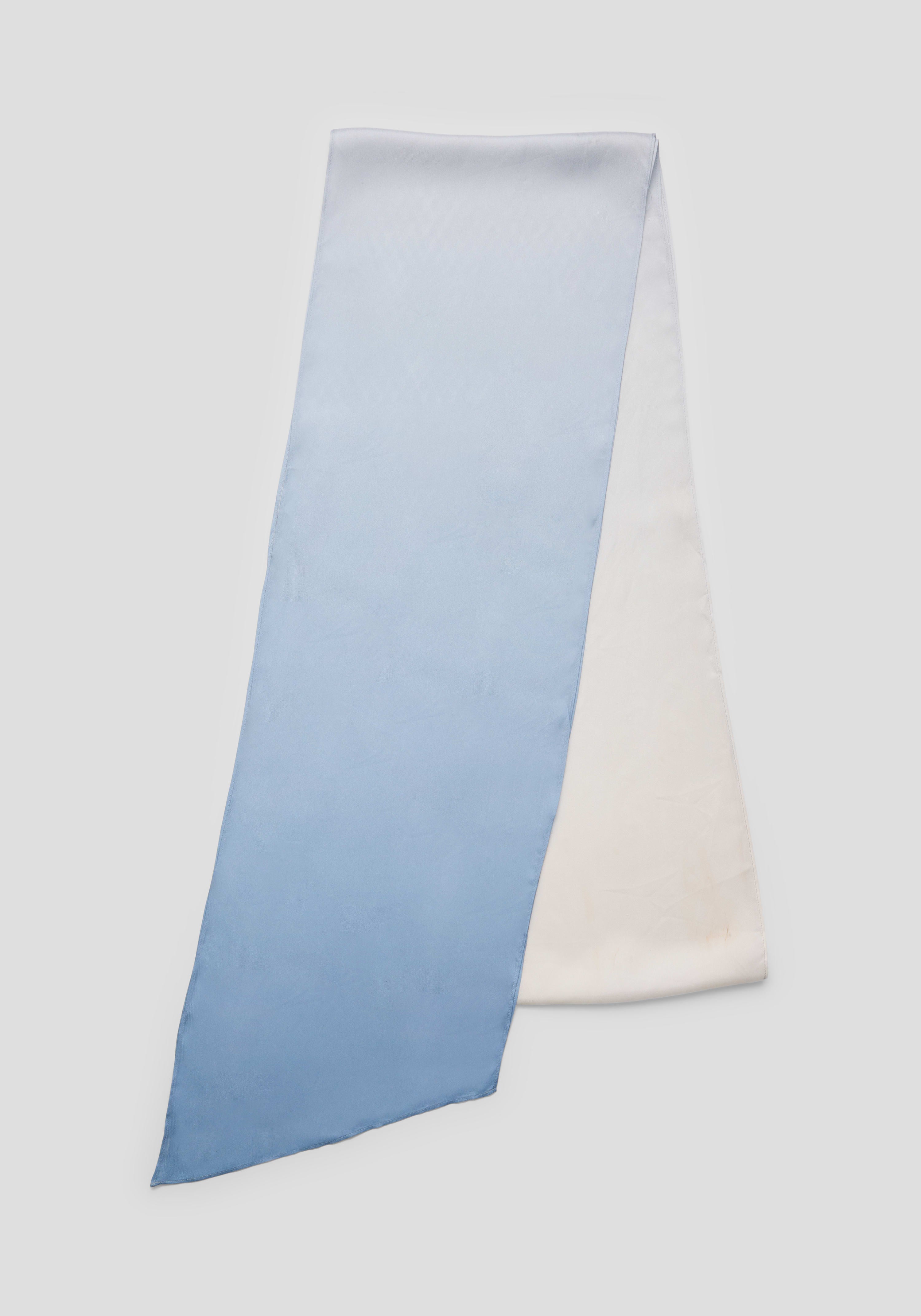 A modern accessory, the Asta Headscarf is crafted from soft blue silk ombre, echoing the waves of the sea. With captivating, fluid motion, this versatile piece can be styled as a headscarf, top, neck piece, hair accessory, or handbag tie, infusing spirited individuality into any outfit. Pair with the Dreamland Dress for elegant occasion dressing or high resort-season styling.