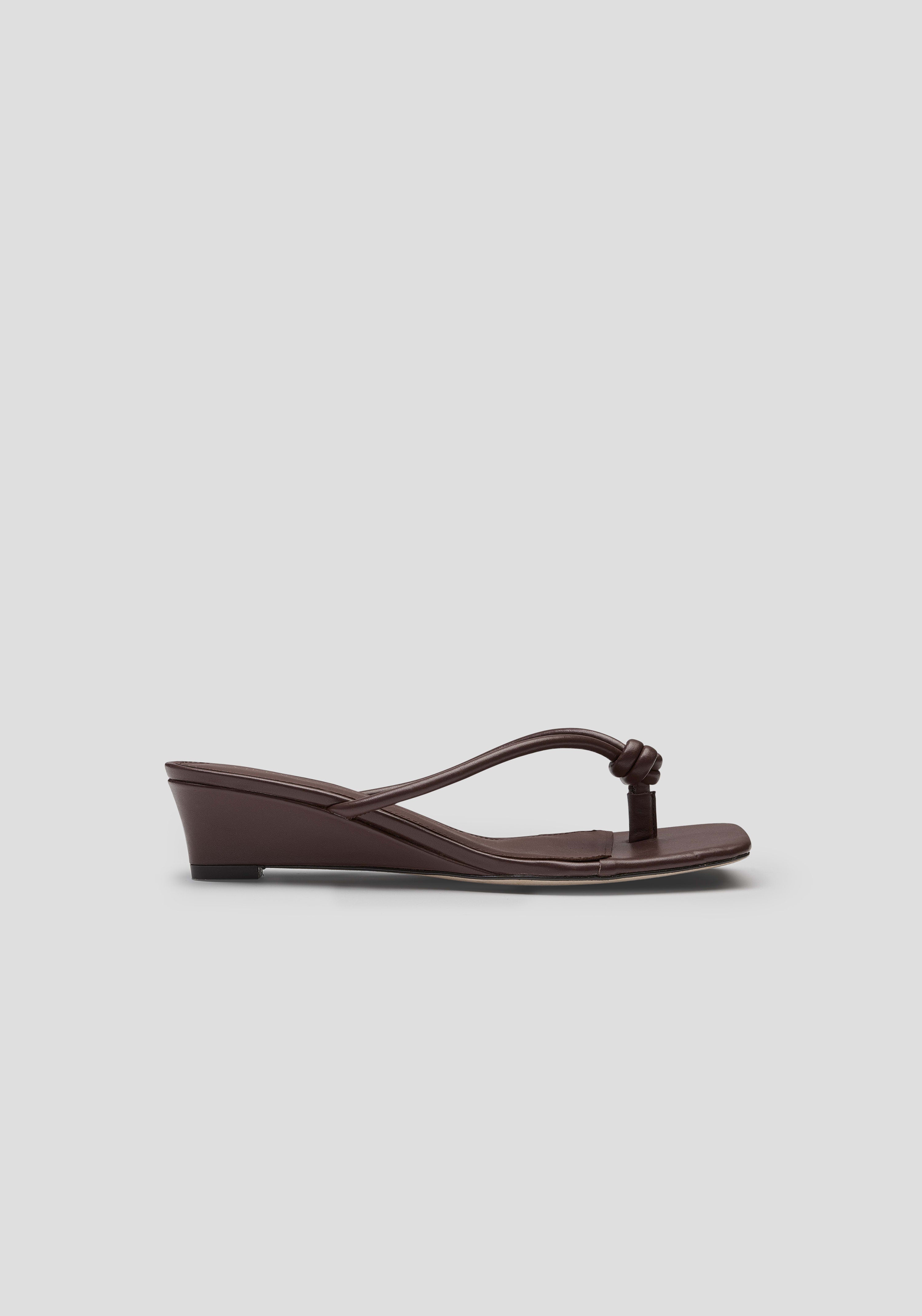 The Athens Wedge, a must-have this season, is crafted in luxurious chestnut brown Nappa leather. Featuring a 4cm wedge heel and knotted toe detail, this staple shoe is an elevated finishing touch for every occasion.