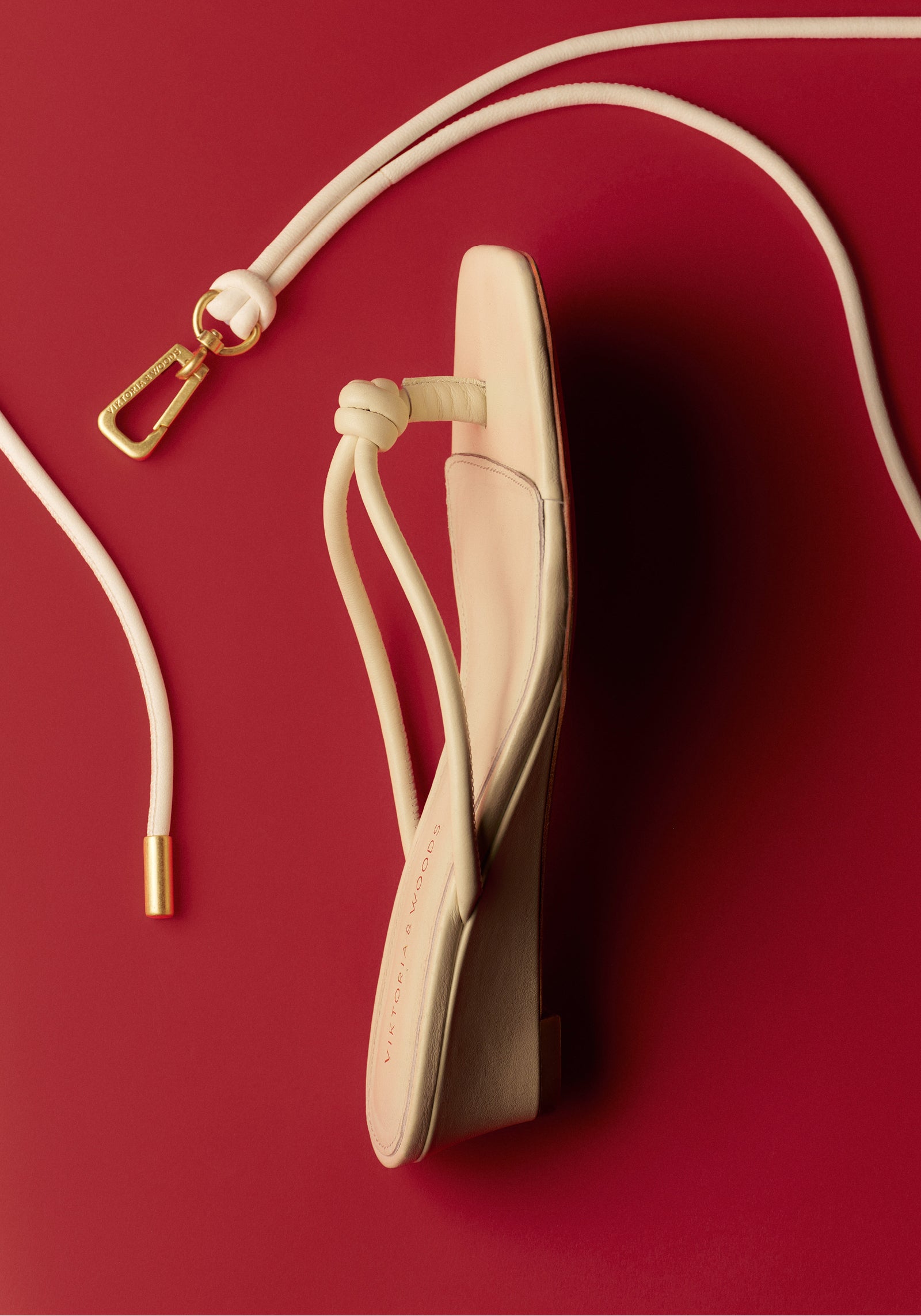 The Athens Wedge, a must-have this season, is crafted in luxurious ivory Nappa leather. Featuring a 4cm wedge heel and knotted toe detail, this staple shoe is an elevated finishing touch for every occasion.