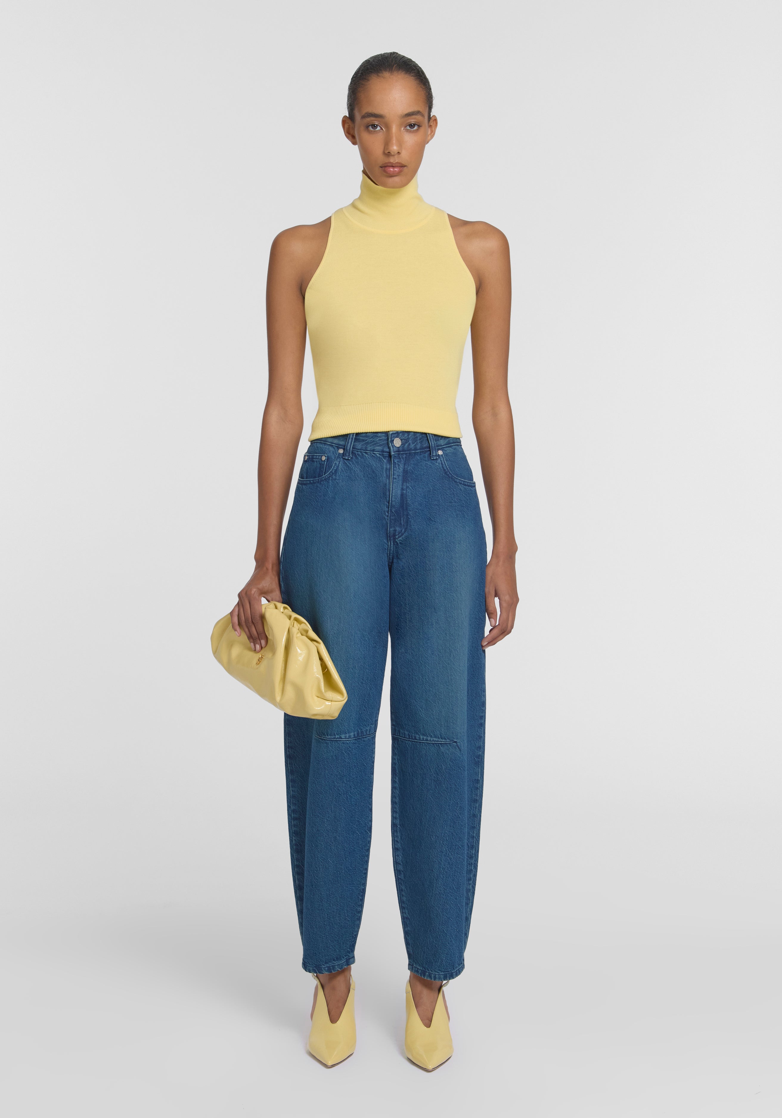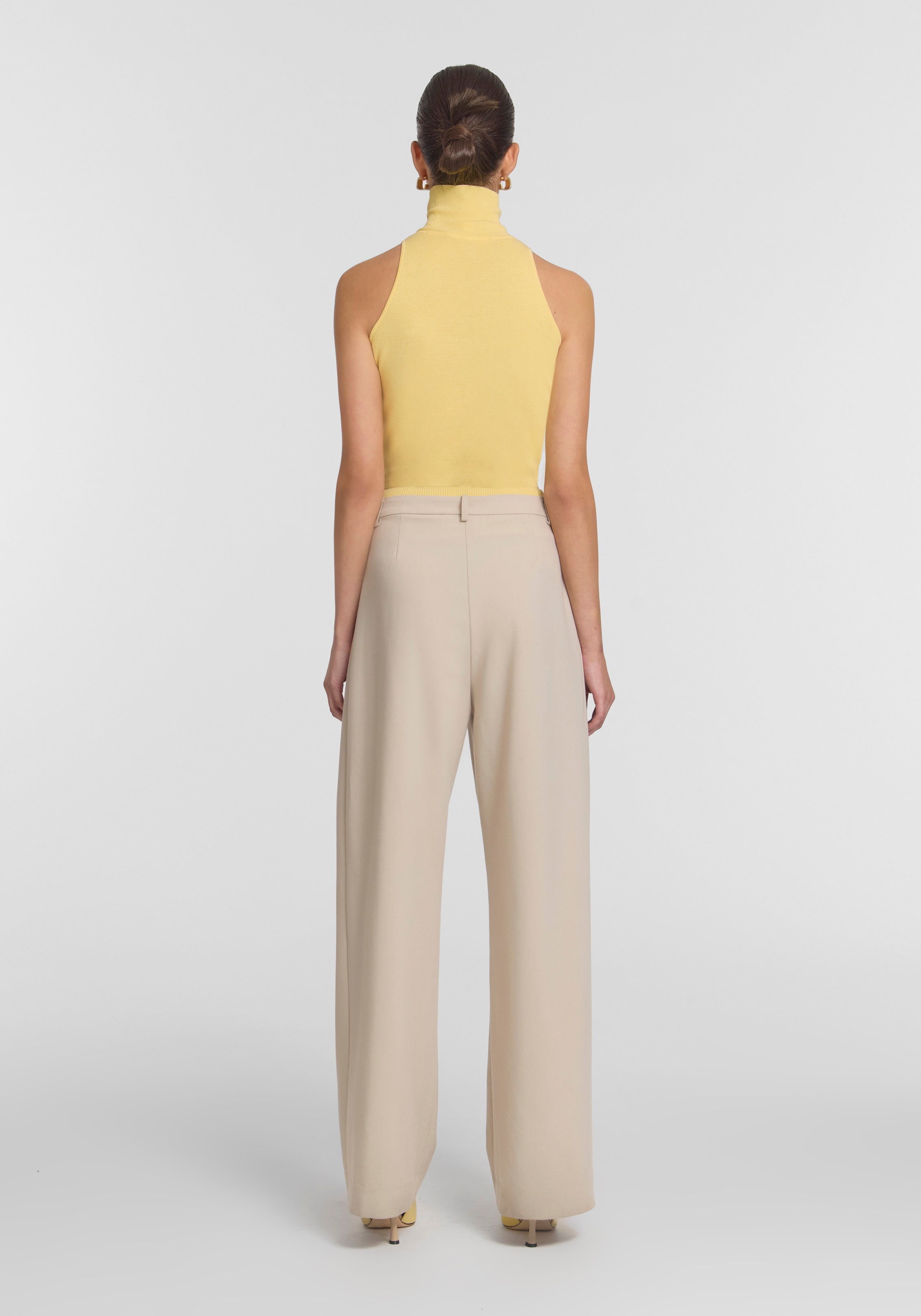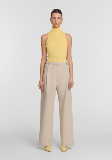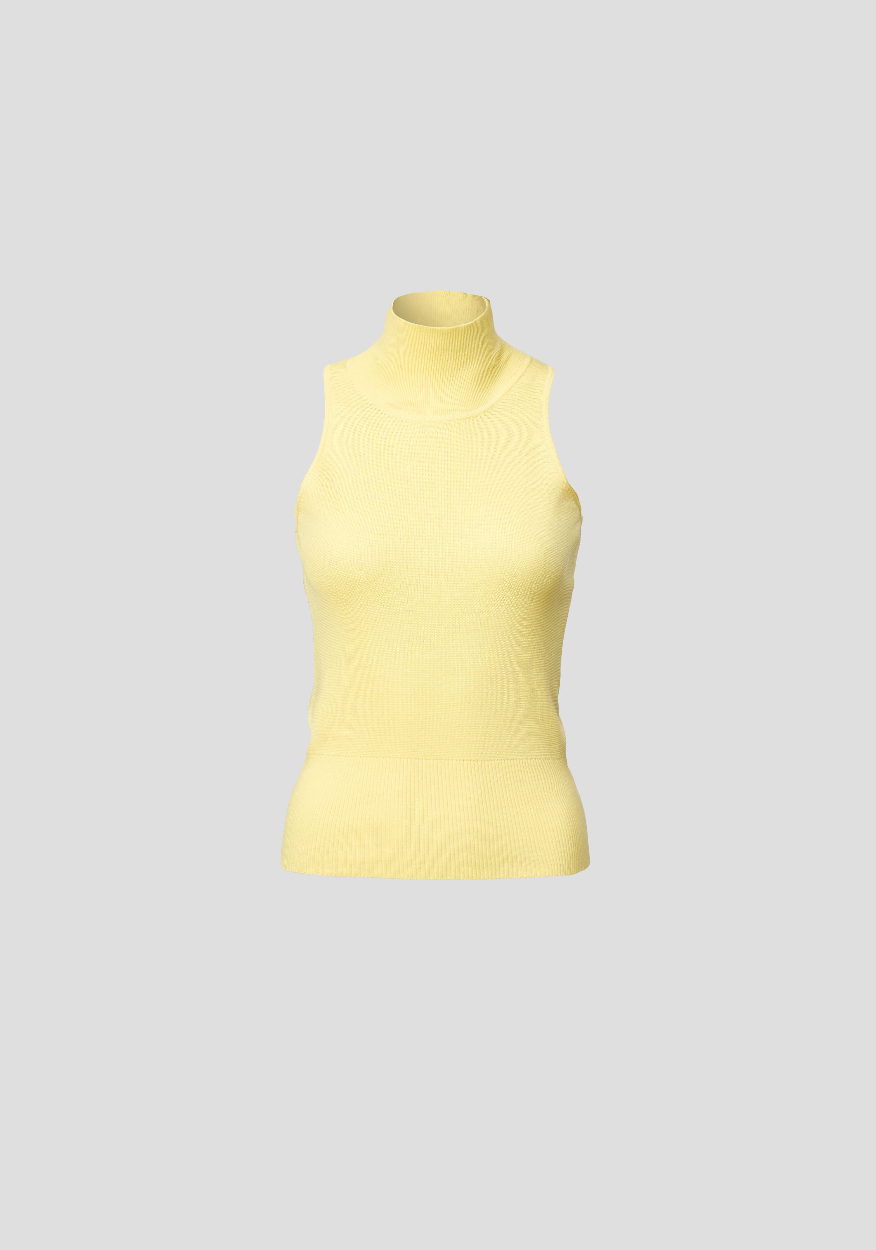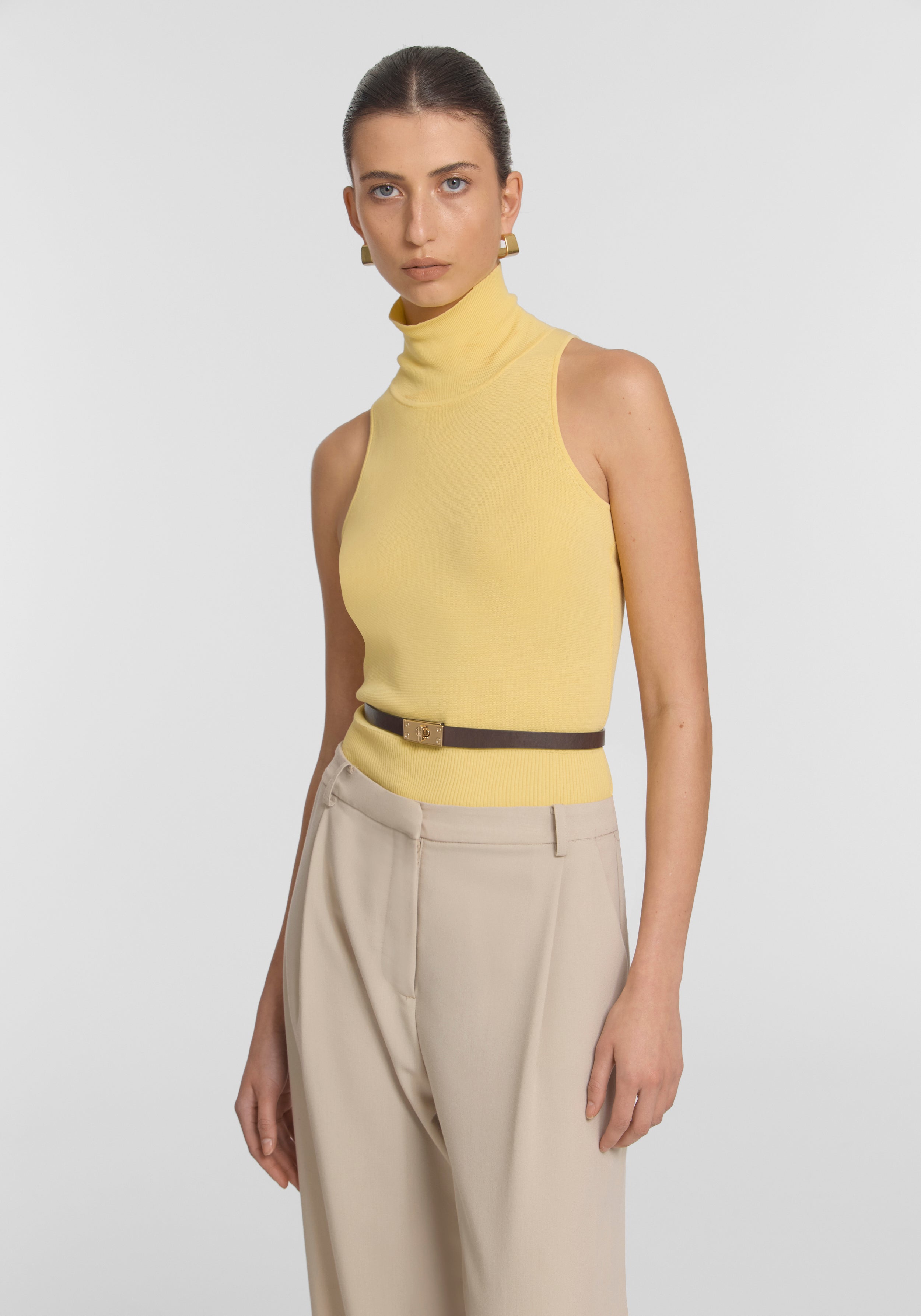 A statement in citrus yellow, the Awestruck Knit Top is crafted from a cotton-silk blend and finished in a mid-weight milano stitch. Showcasing a sleeveless, fitted design, it’s complete with a high neckline and ribbed trims. Style with the Seneca Short or Atlantis Pant for a chic interplay of yellow hues and fabrications.