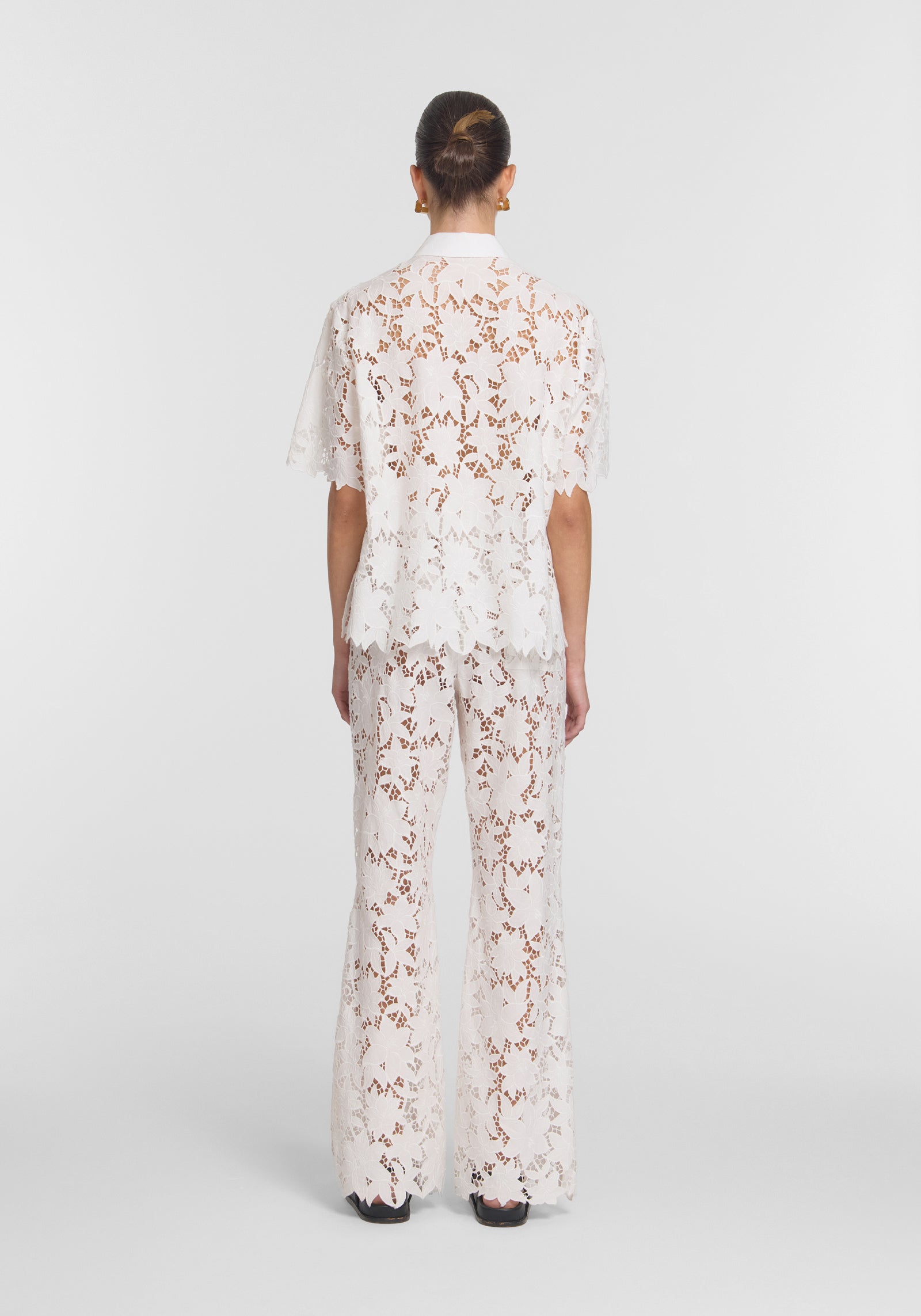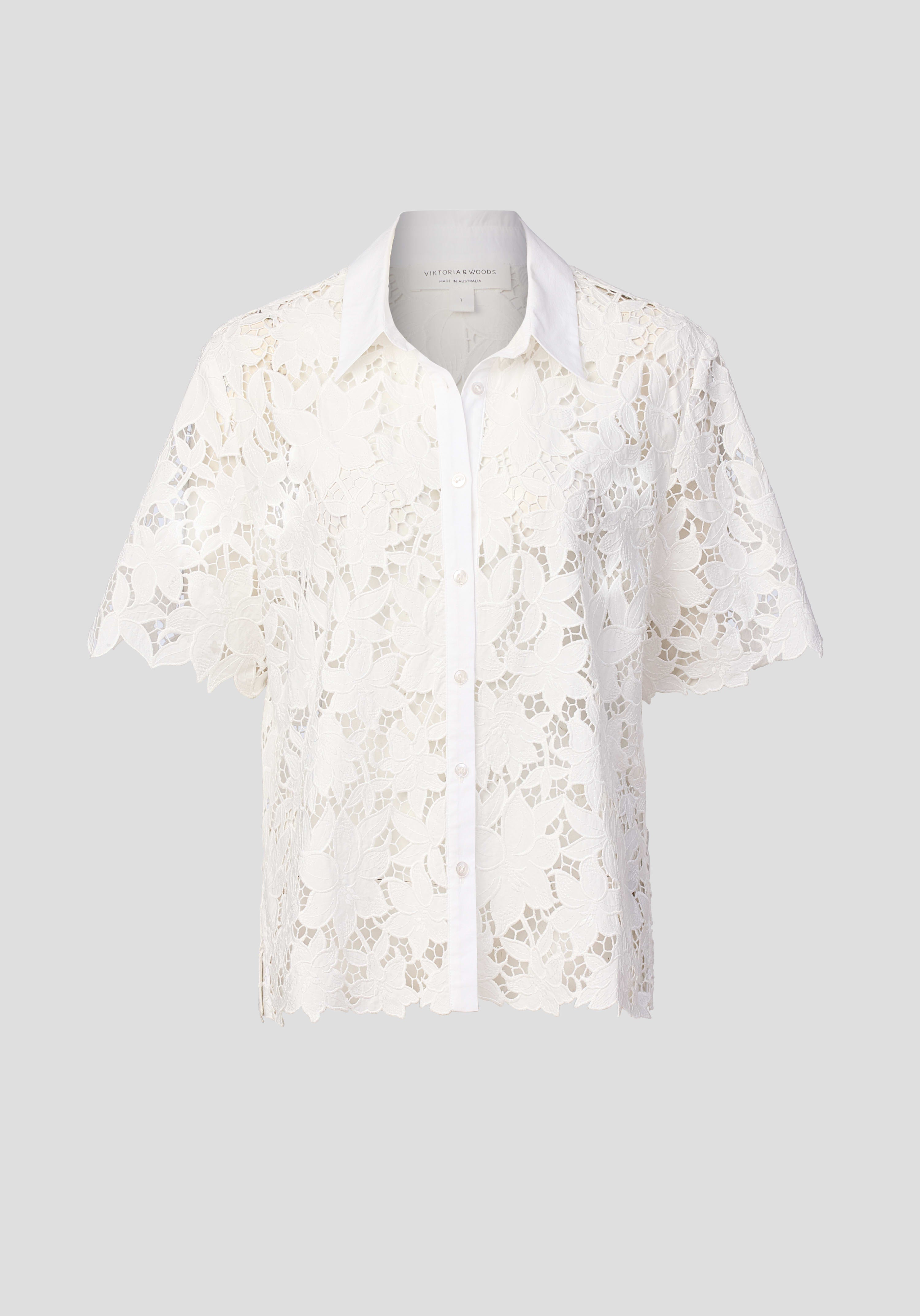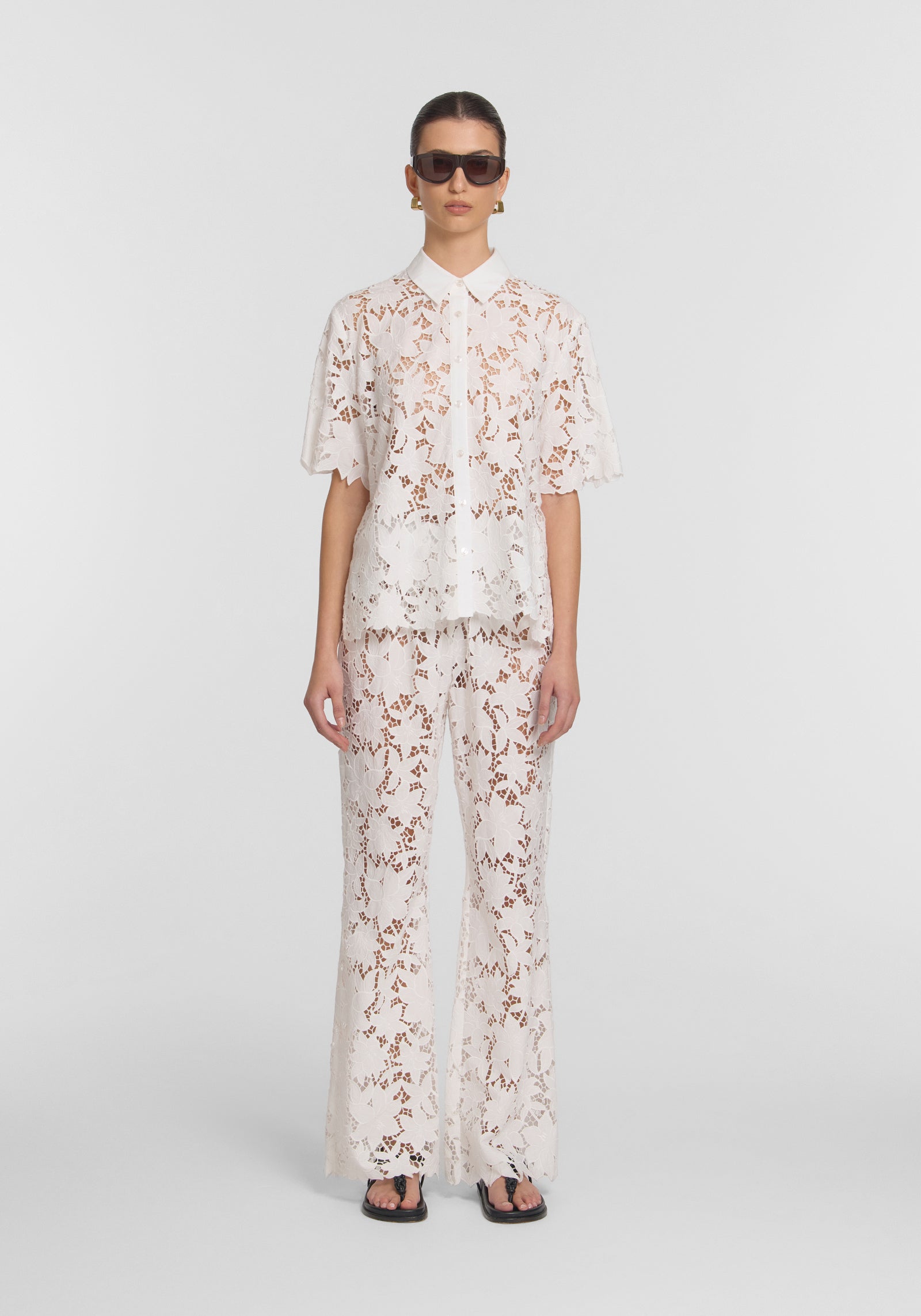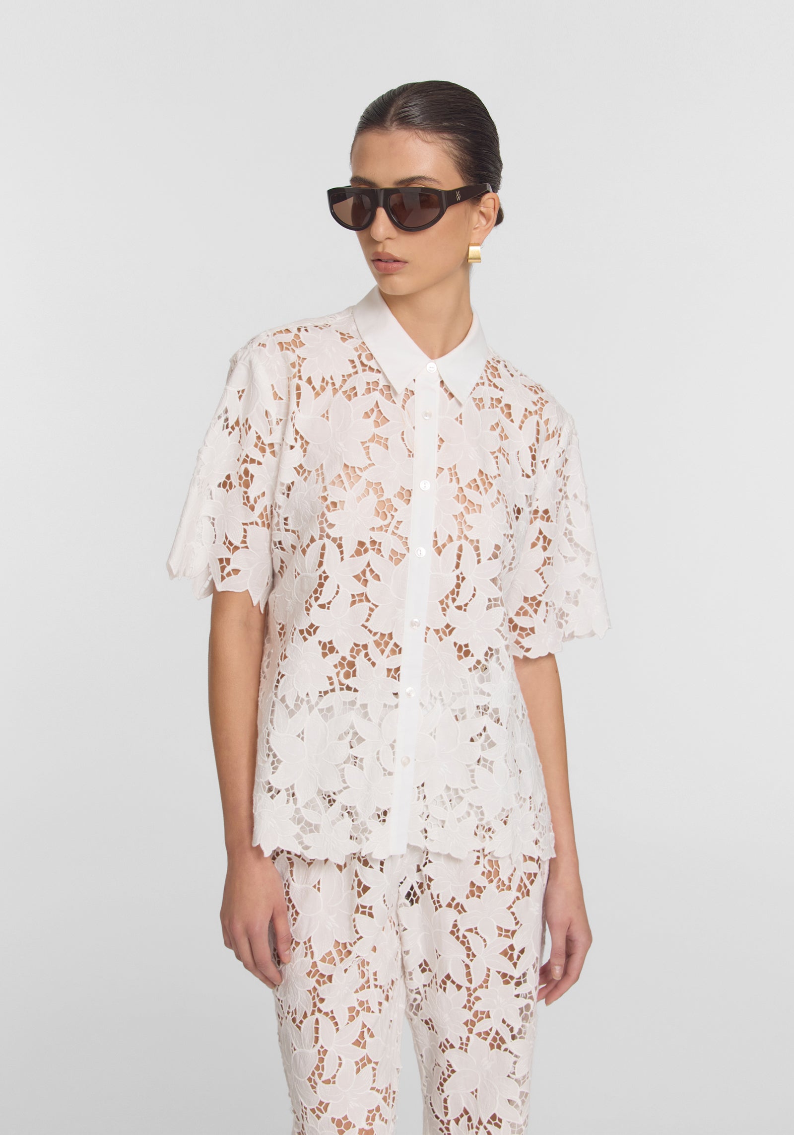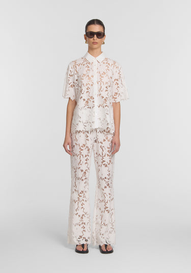 Inject your holiday wardrobe with the elevated Banks Shirt, crafted in a chic sheer ivory fabric. Featuring scalloped edge finishing and subtle side seam splits, it exudes effortless elegance. Pair with the Jones Pant for a refined all white look, the perfect summer set.