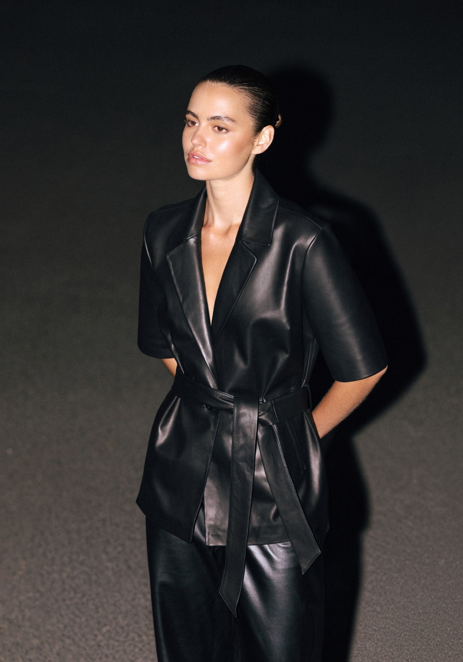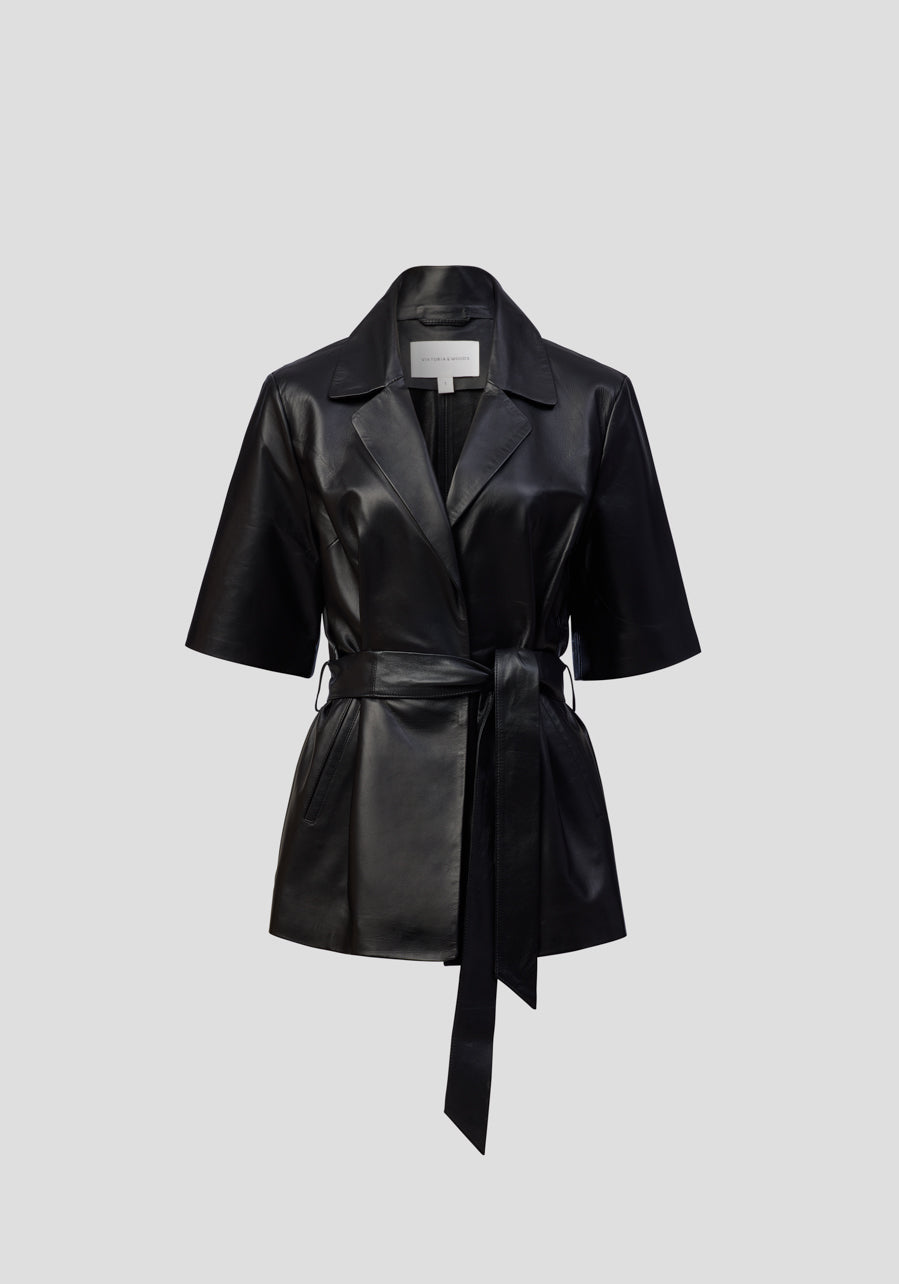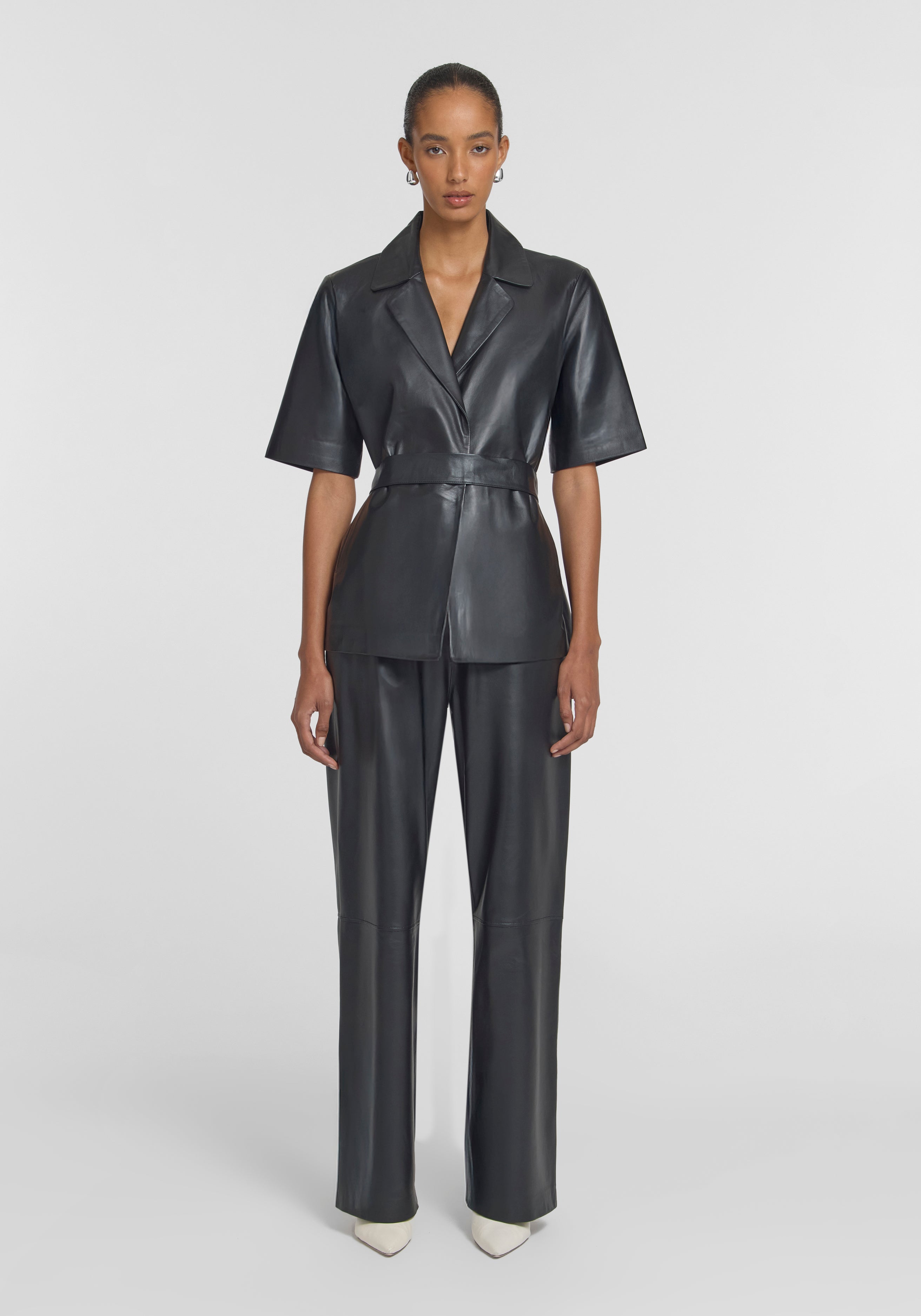 An evolution of our most-loved icon, the Chorus Leather Shirt reinvents the Chorus Shirt in luxurious, soft black nappa leather. Showcasing a collar and lapel, set-in sleeves, front pockets, and a belt that offers versatile styling, it delivers bold structure and permanent style. Pair with the Pilot Leather Pant to create a commanding uniform of enduring confidence.