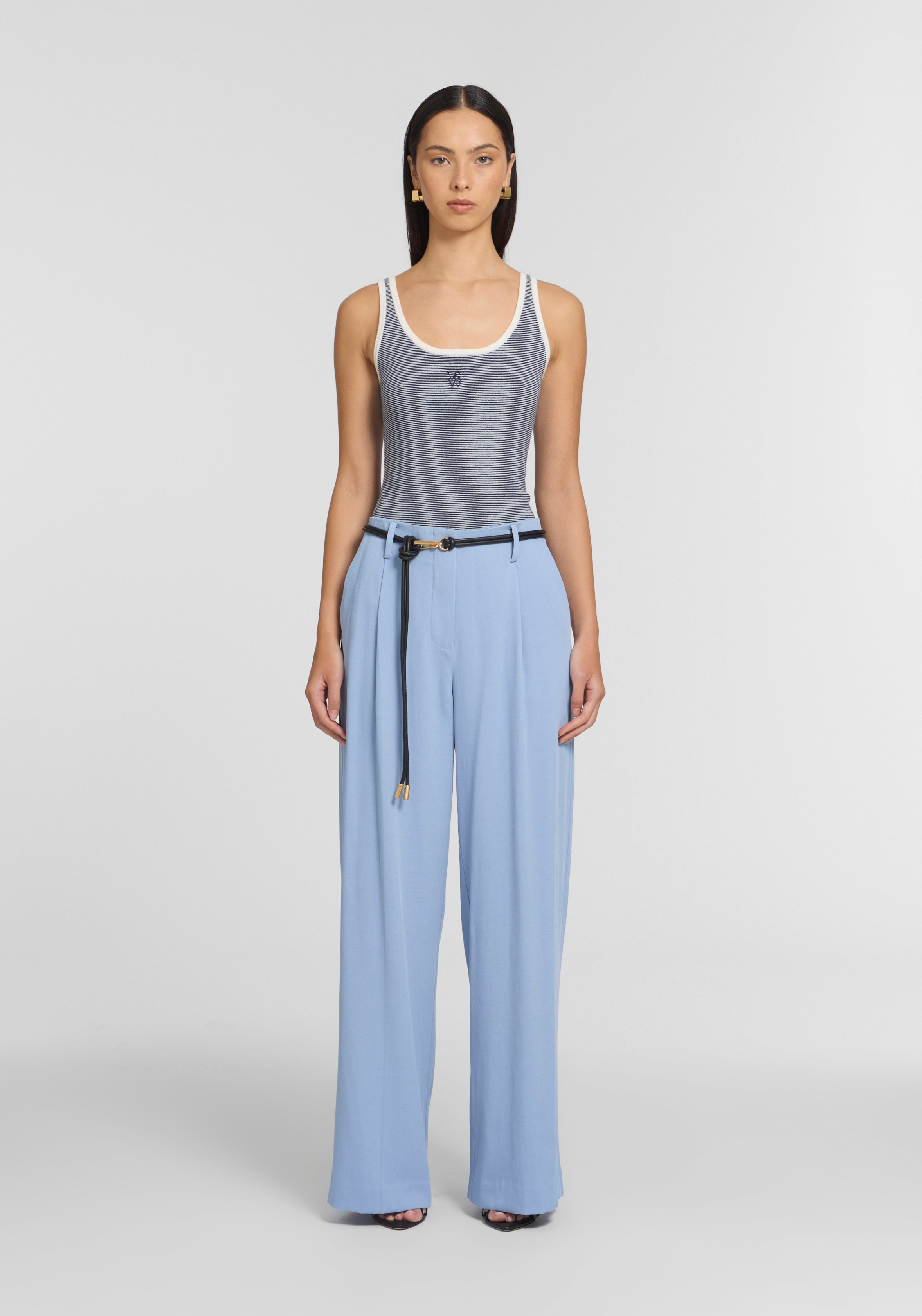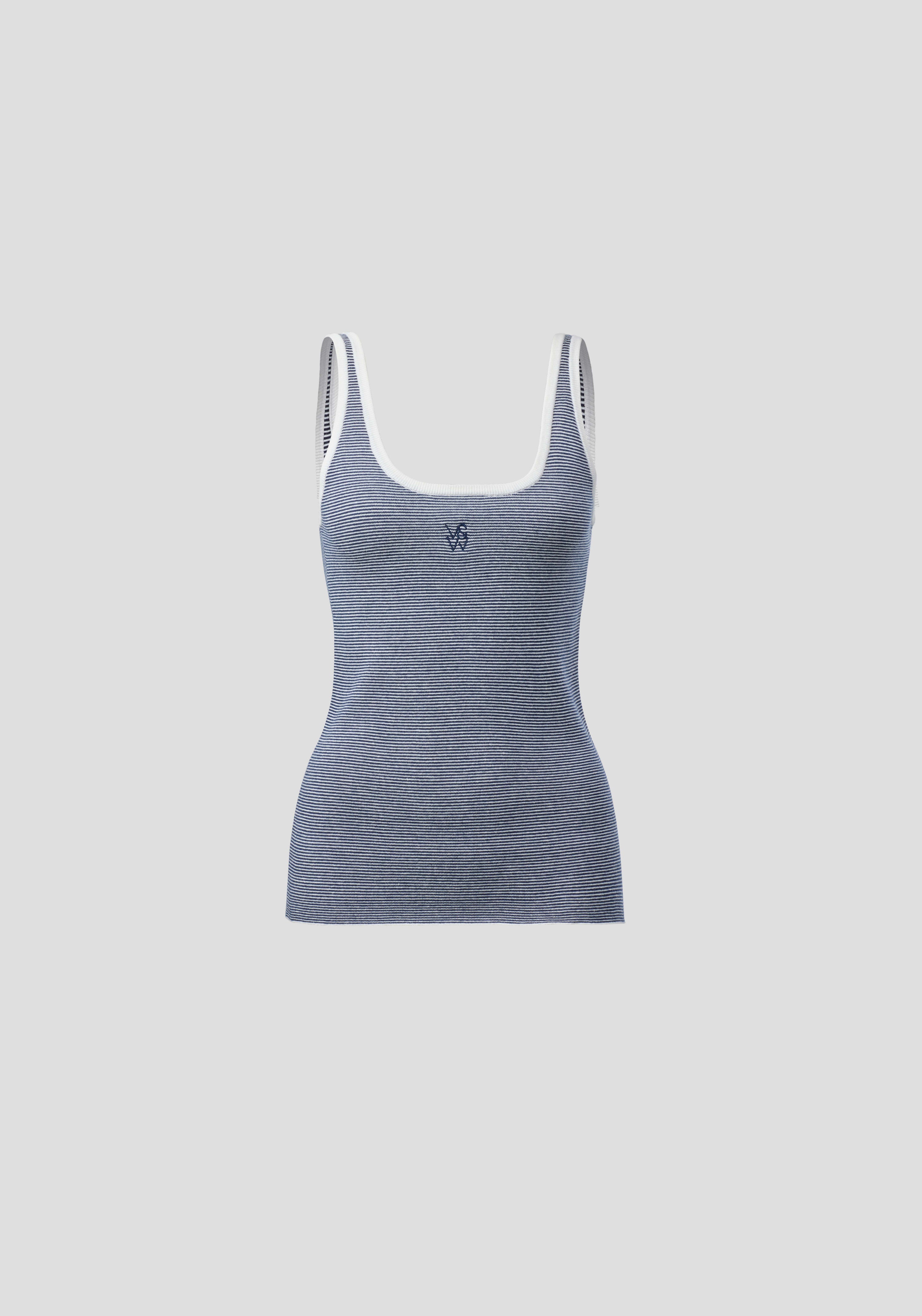 Introducing the Chronicle Tank, the new archetype of the essential tank. Crafted from cotton in a navy and white stripe, this fitted silhouette features a scooped neckline, contrast white trims and complete with signature V&W insignia. An effortless starting point for any look, it strikes the perfect balance between sporty ease and elevated simplicity.