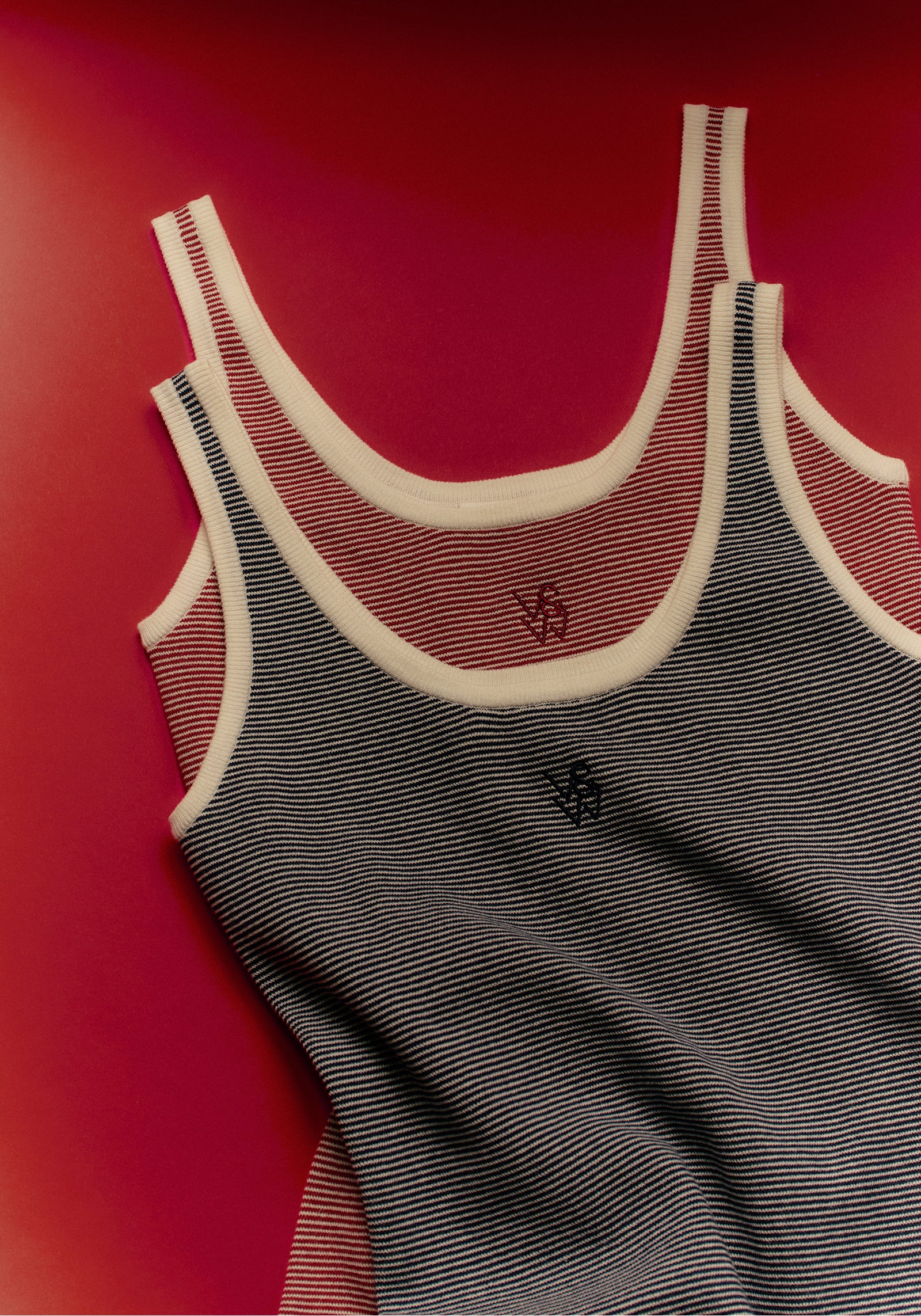 Introducing the Chronicle Tank, the new archetype of the essential tank. Crafted from cotton in a red and white stripe, this fitted silhouette features a scooped neckline, contrast white trims and complete with signature V&W insignia. An effortless starting point for any look, it strikes the perfect balance between sporty ease and elevated simplicity.