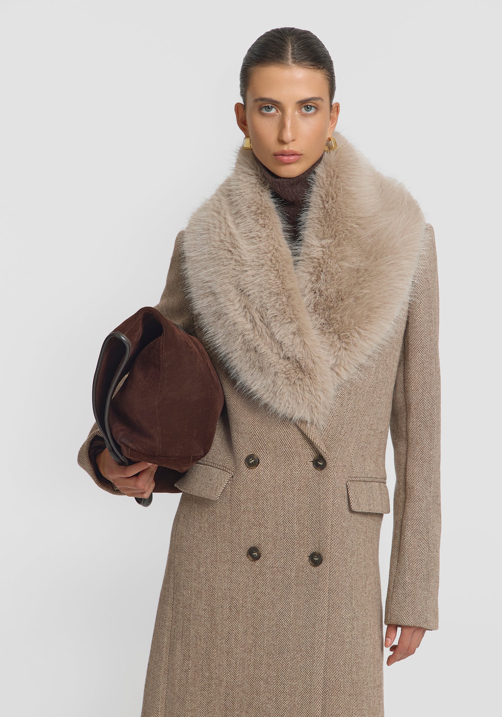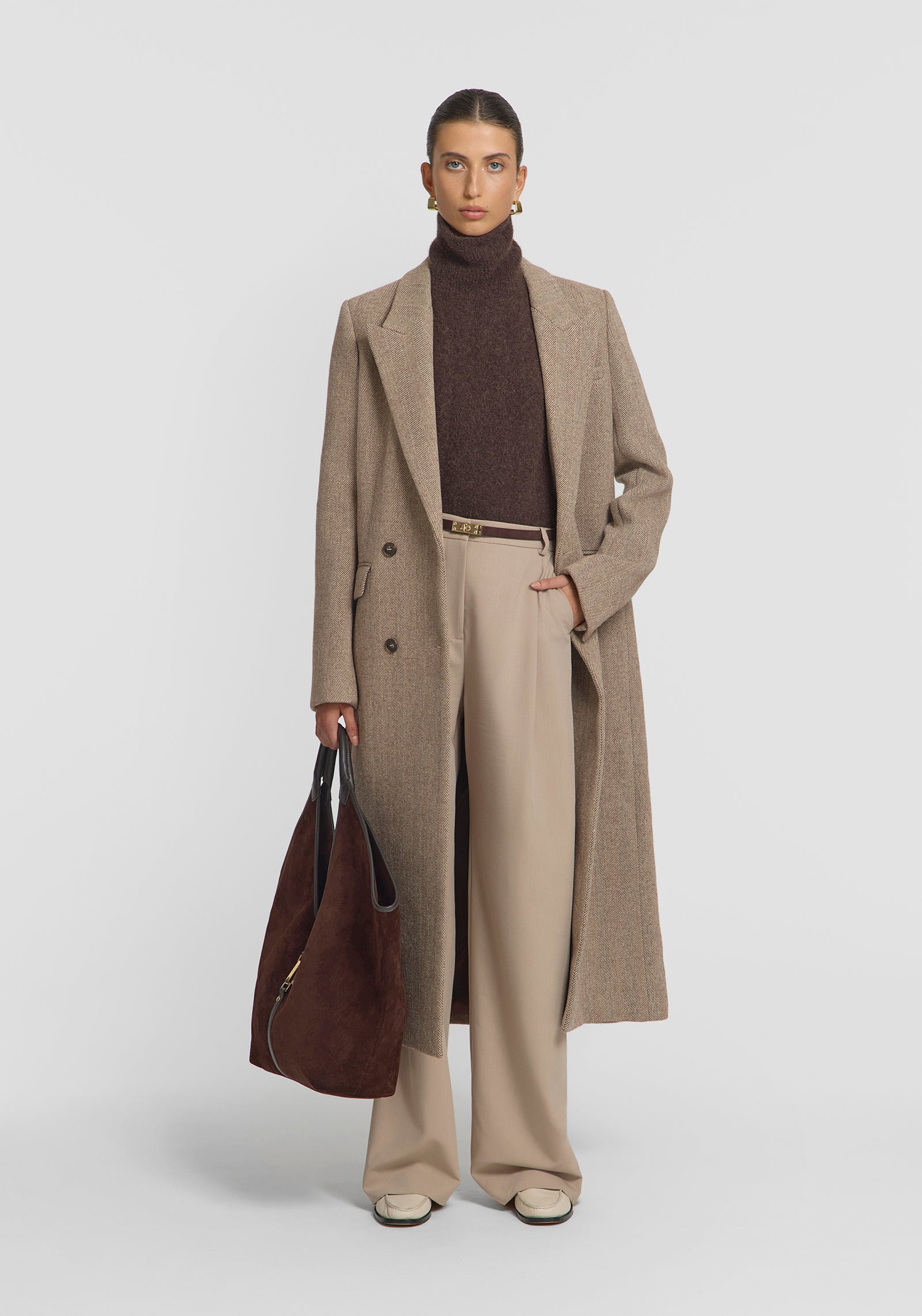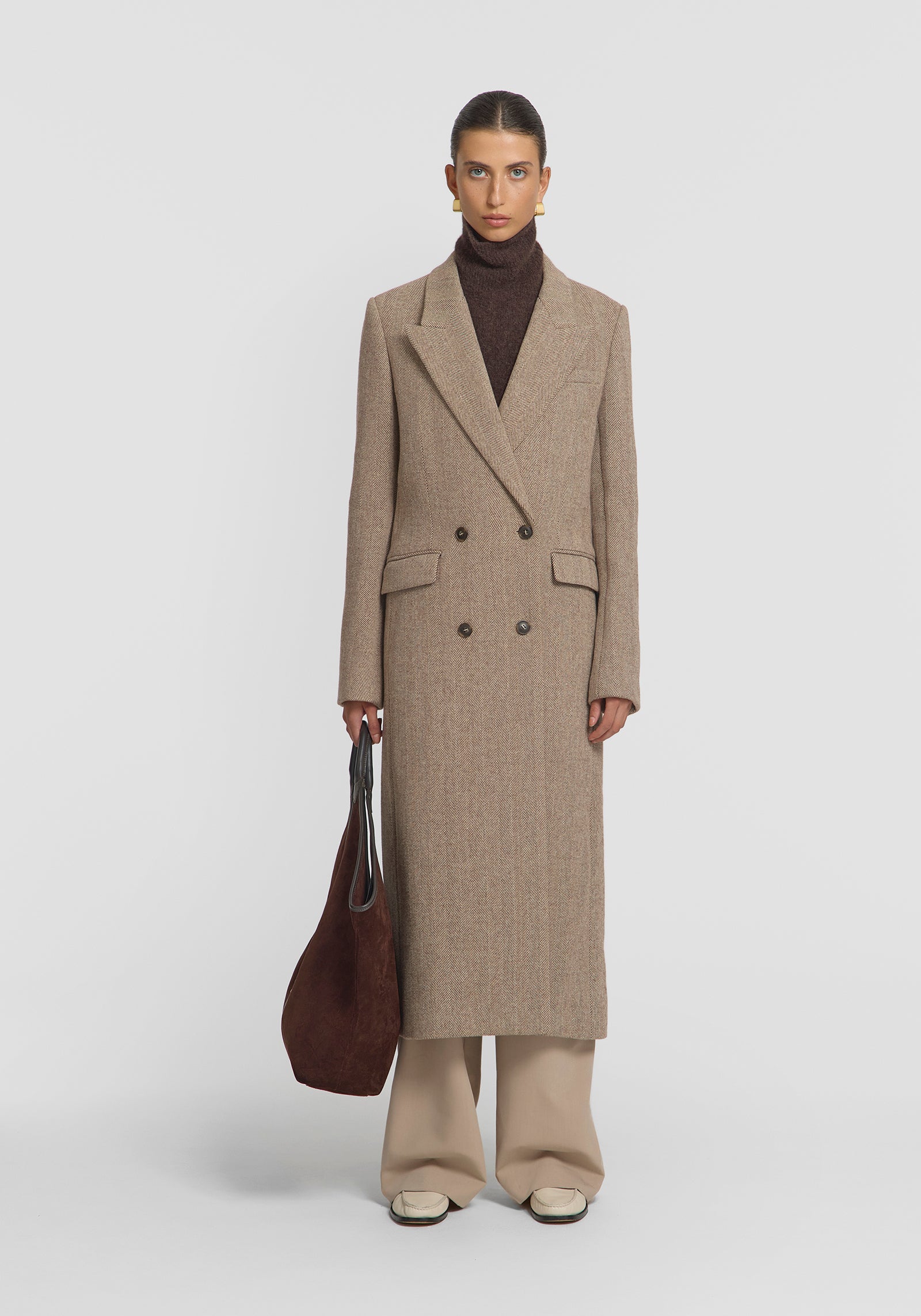 A hero for your winter capsule wardrobe, the Cigarillo Coat is crafted from a luxurious Italian wool blend herringbone fabrication. Inspired by classic menswear tailoring, it features a double-breasted design, straight waistline, peak collar, shoulder pads, and logo buttons. Crafted for life, this standout outerwear piece effortlessly elevates your everyday essentials.
