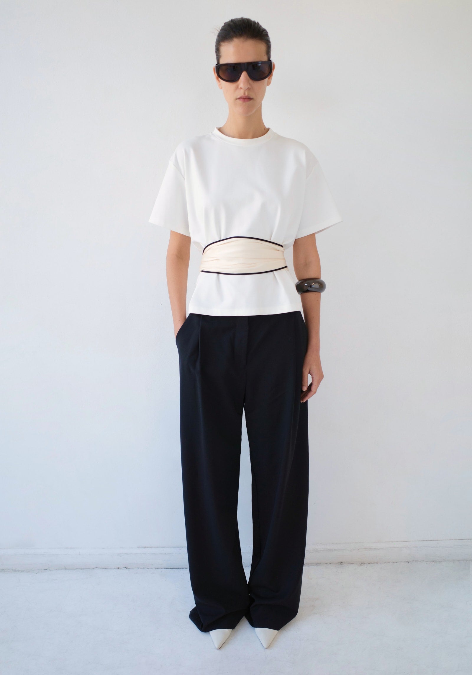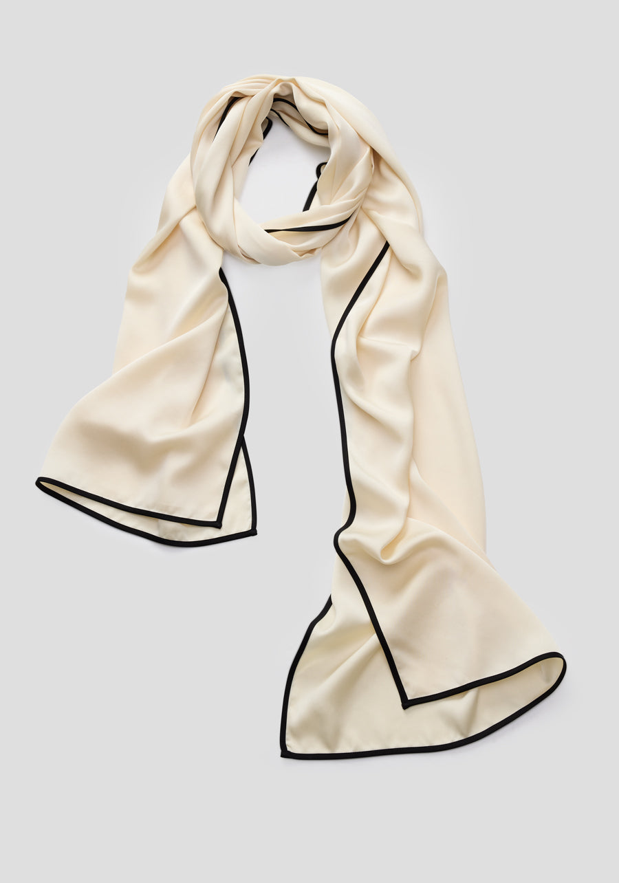 A modern must-have, the Cleo Headscarf is crafted from our signature cupro blend in a soft yellow hue, with contrast black binding. This versatile accessory can be styled as a headscarf, top, neck piece, hair accessory, or handbag tie, infusing spirited individuality into any outfit. Pair it with this seasons yellow styles for a complete look.