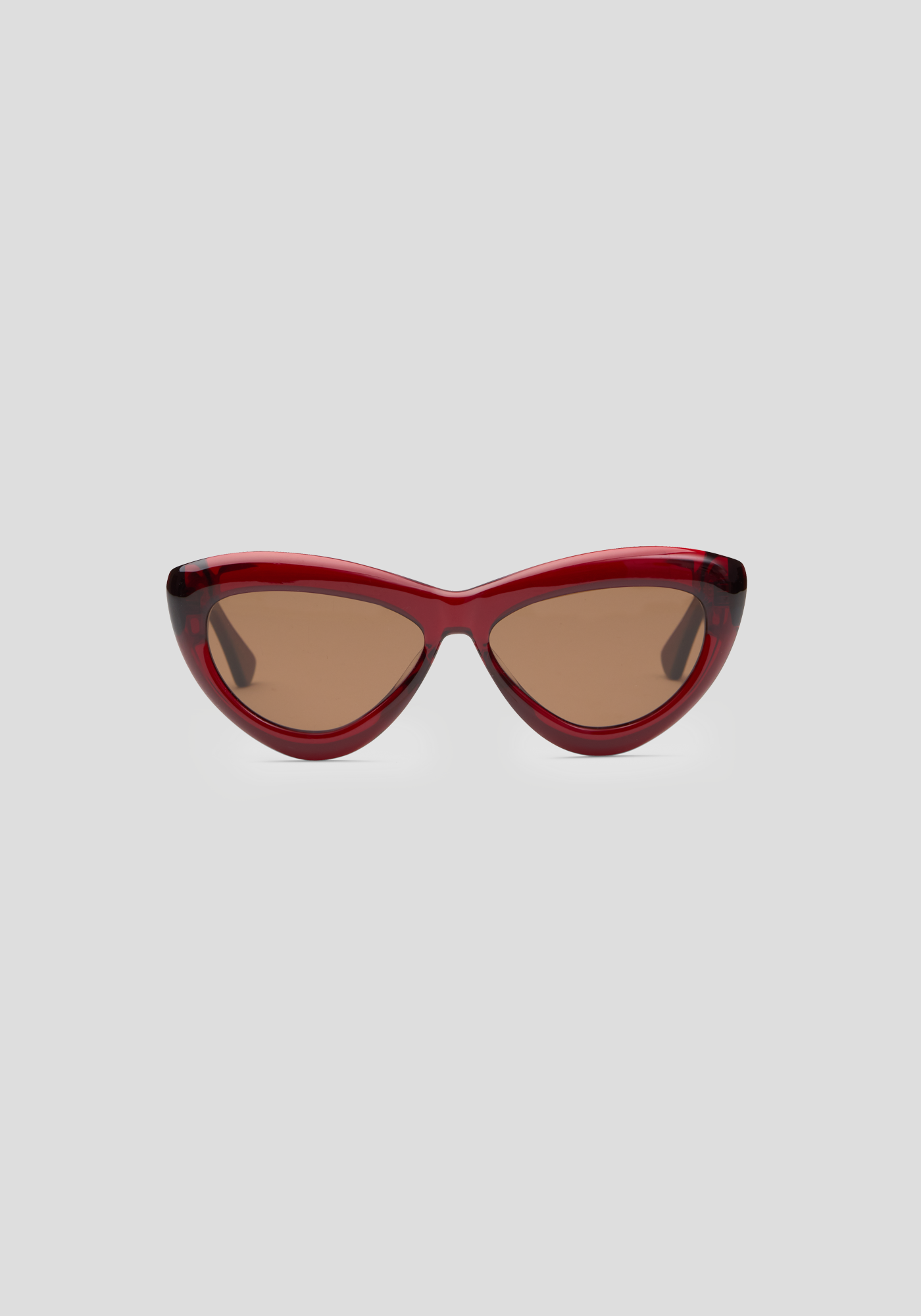 - Translucent dark red frame with matching lenses