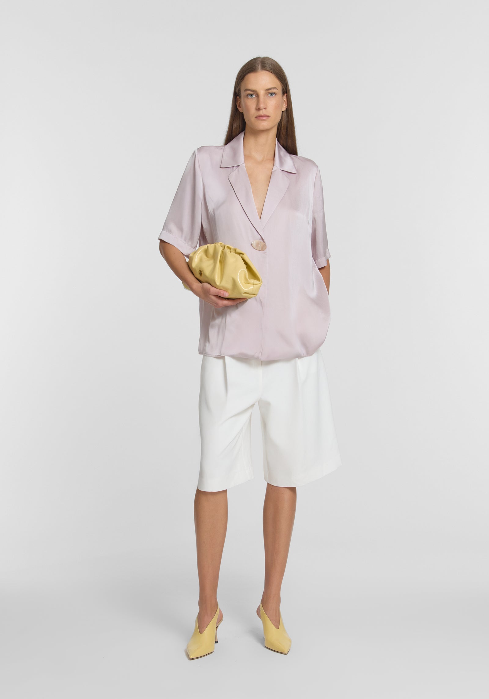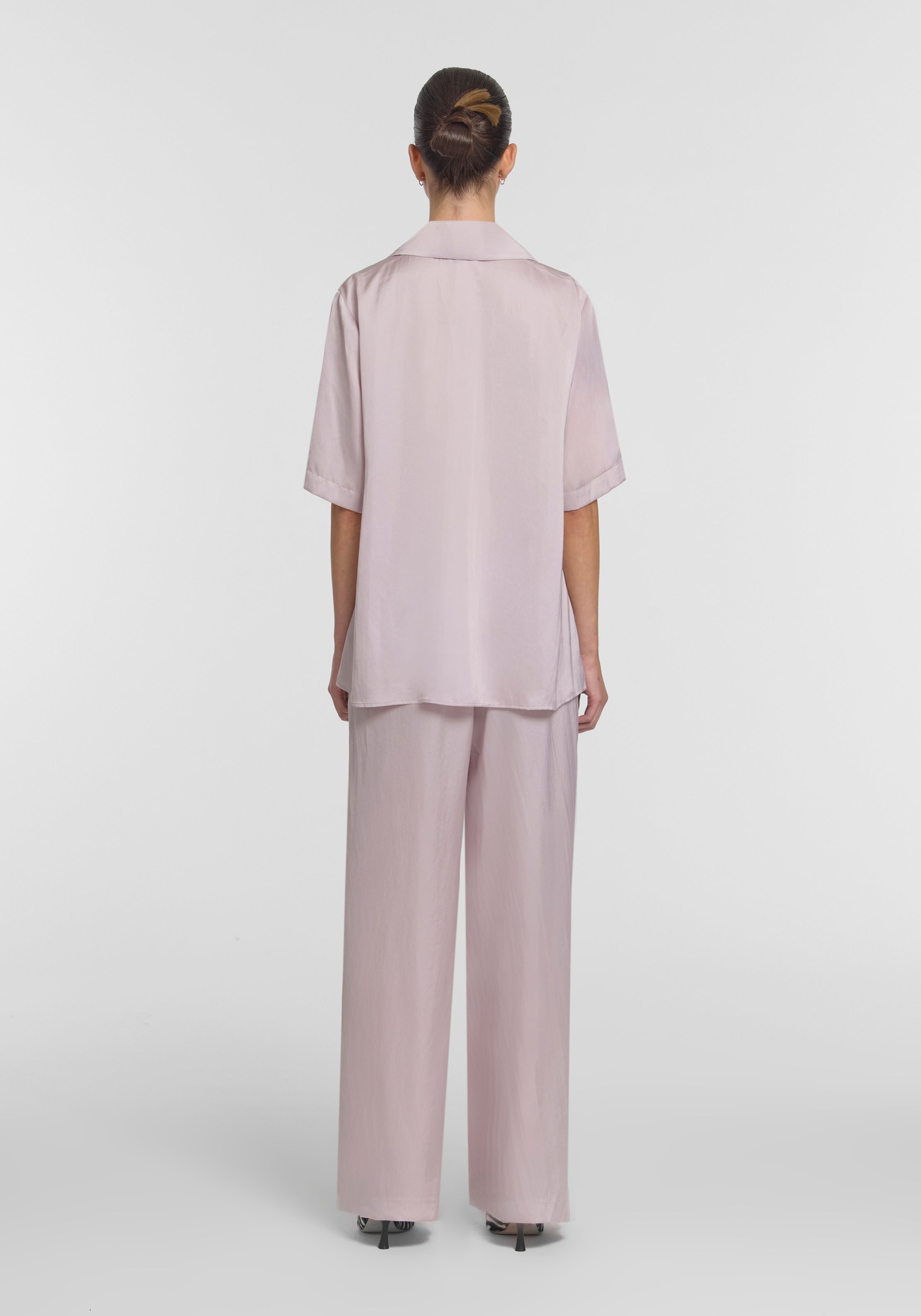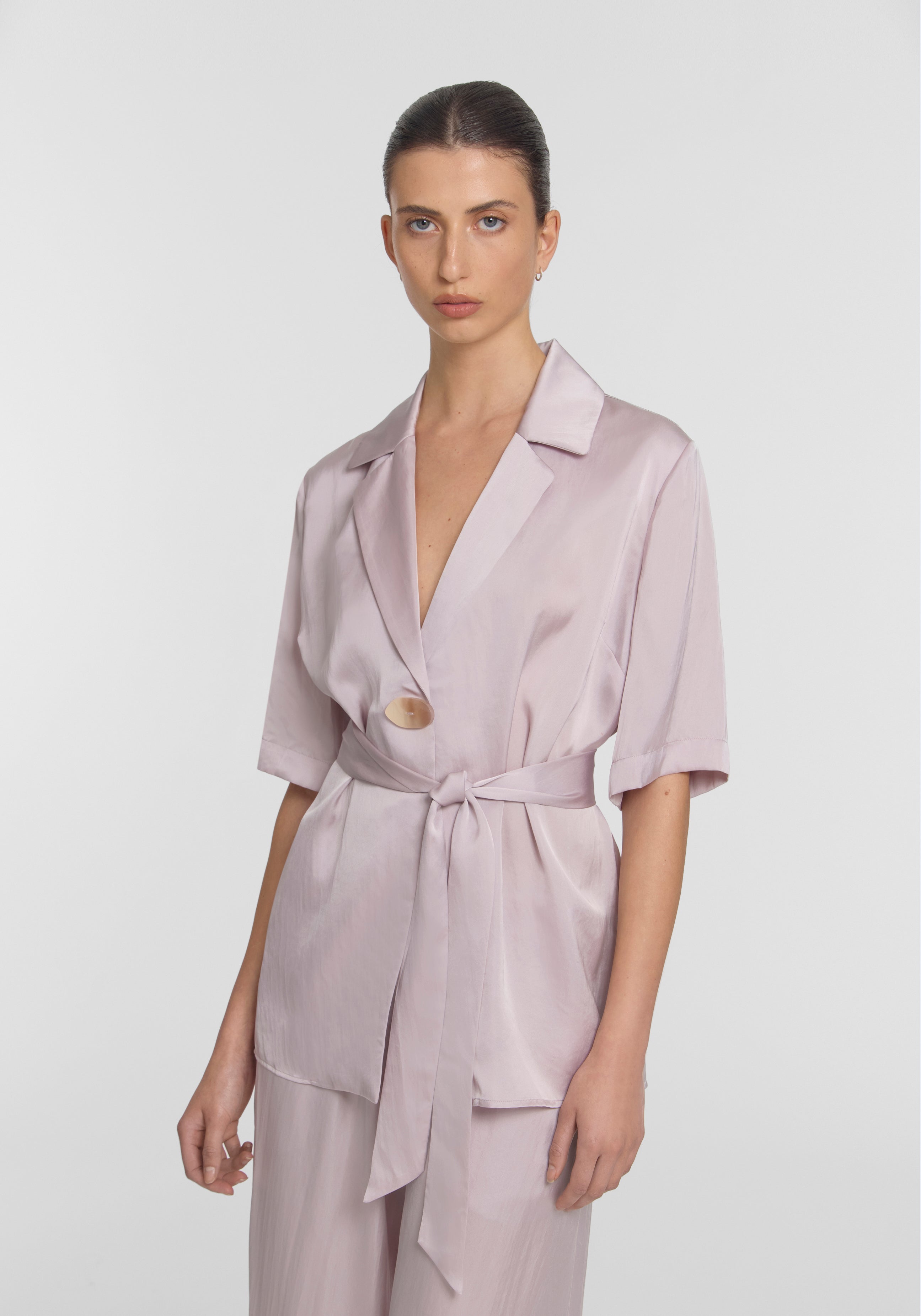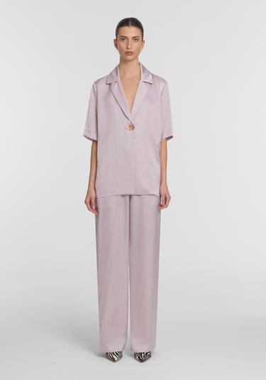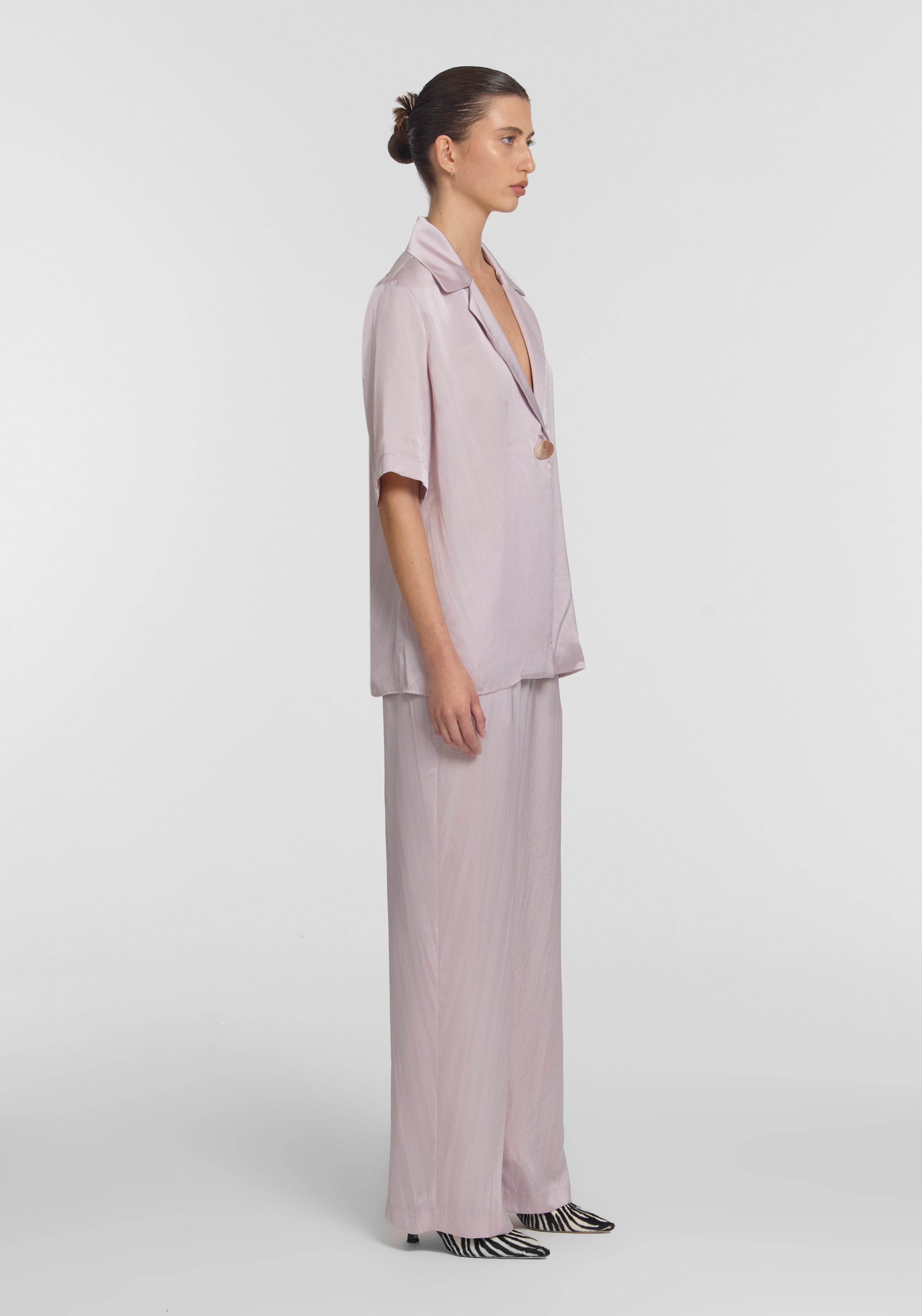 Introducing the Concert Shirt, a reimagined take on our iconic Chorus Shirt, tailored in our signature cupro blend in muted lilac. This iteration is elevated with a refined resin button and subtly sharper collar and lapel points, perfectly complementing its relaxed silhouette. Pair with the Pilot Pant in the matching hue for an air of quiet luxury, or layer it with the Luna Skivvy for a high fashion moment.