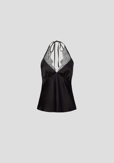 The Culture Top, crafted from our signature cupro blend in classic black, exudes refined femininity. Showcasing a halter neckline with lace detailing, underbust seams, and a softly draped peplum, it’s finished with a self-tie at the back neck. For a modern take on event dressing, pair with the Kingdom Skirt or style back with denim for sophisticated ease.