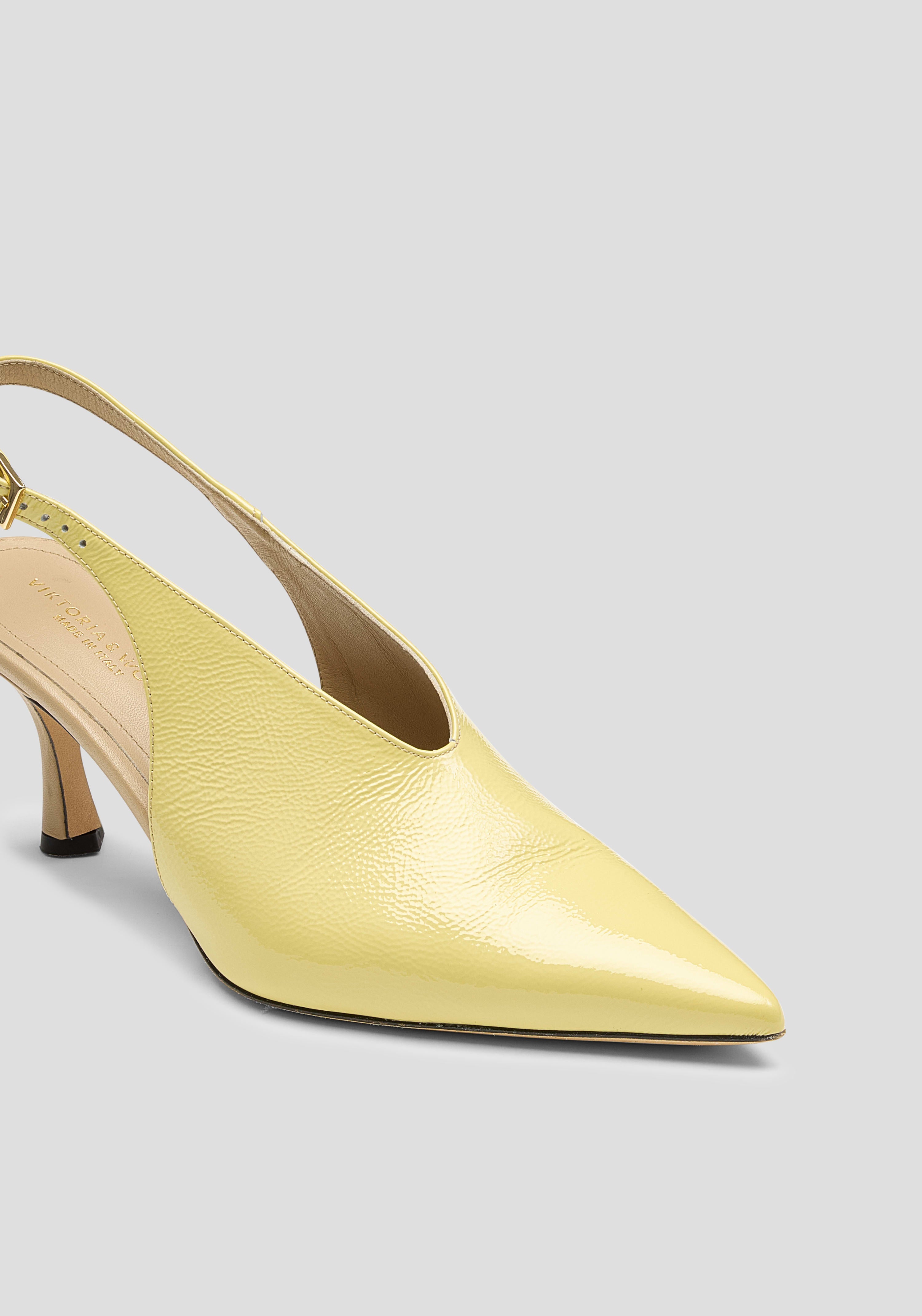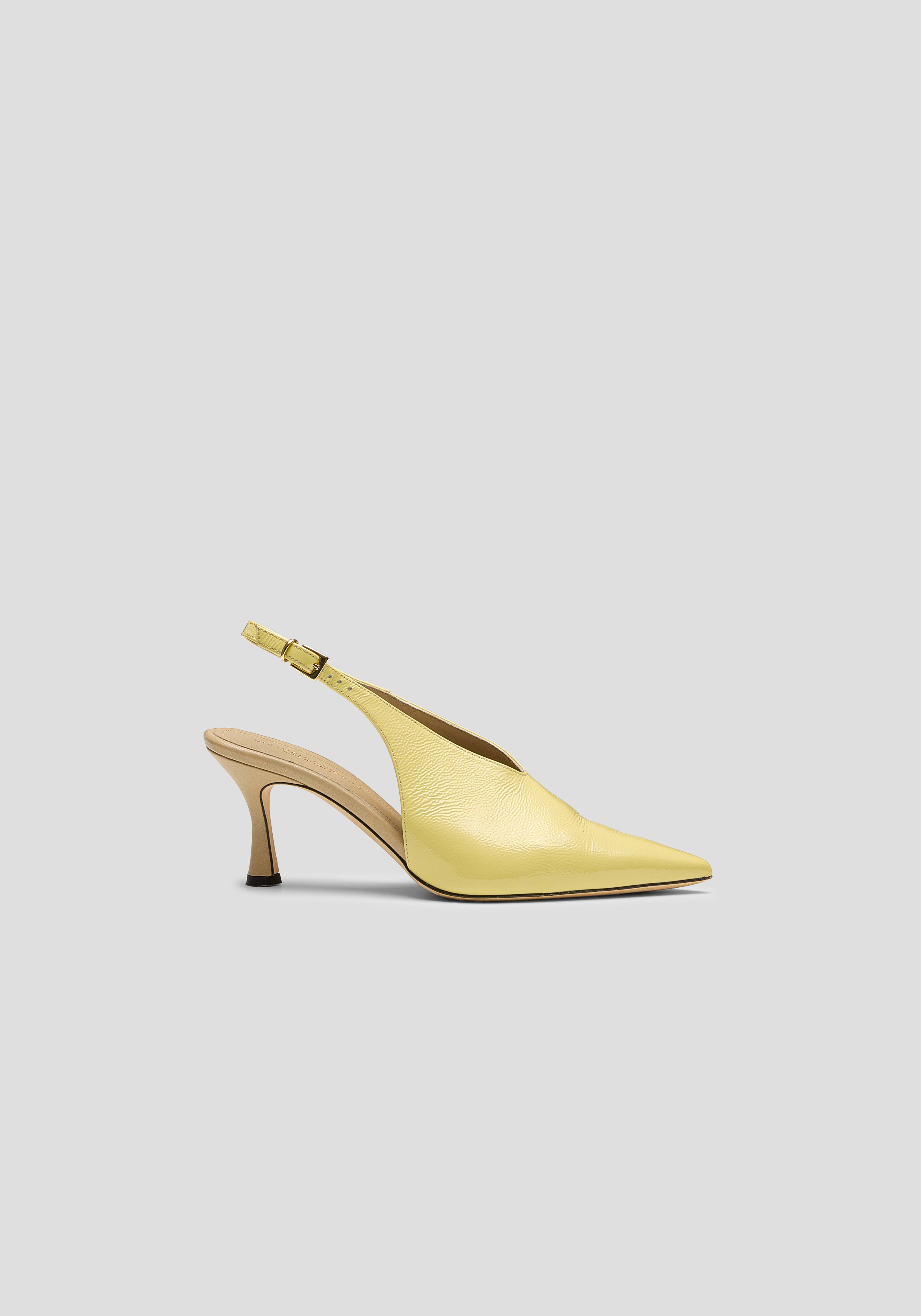 Defined by timeless design and sophisticated form, the Damascus Heel is crafted in yellow nappa leather. Featuring a classic pointed toe, slingback strap, and 7cm heel, it’s elegantly adorned with a gold buckle. Pair with colour for a statement look or transform a simple outfit with a chic pop of colour.