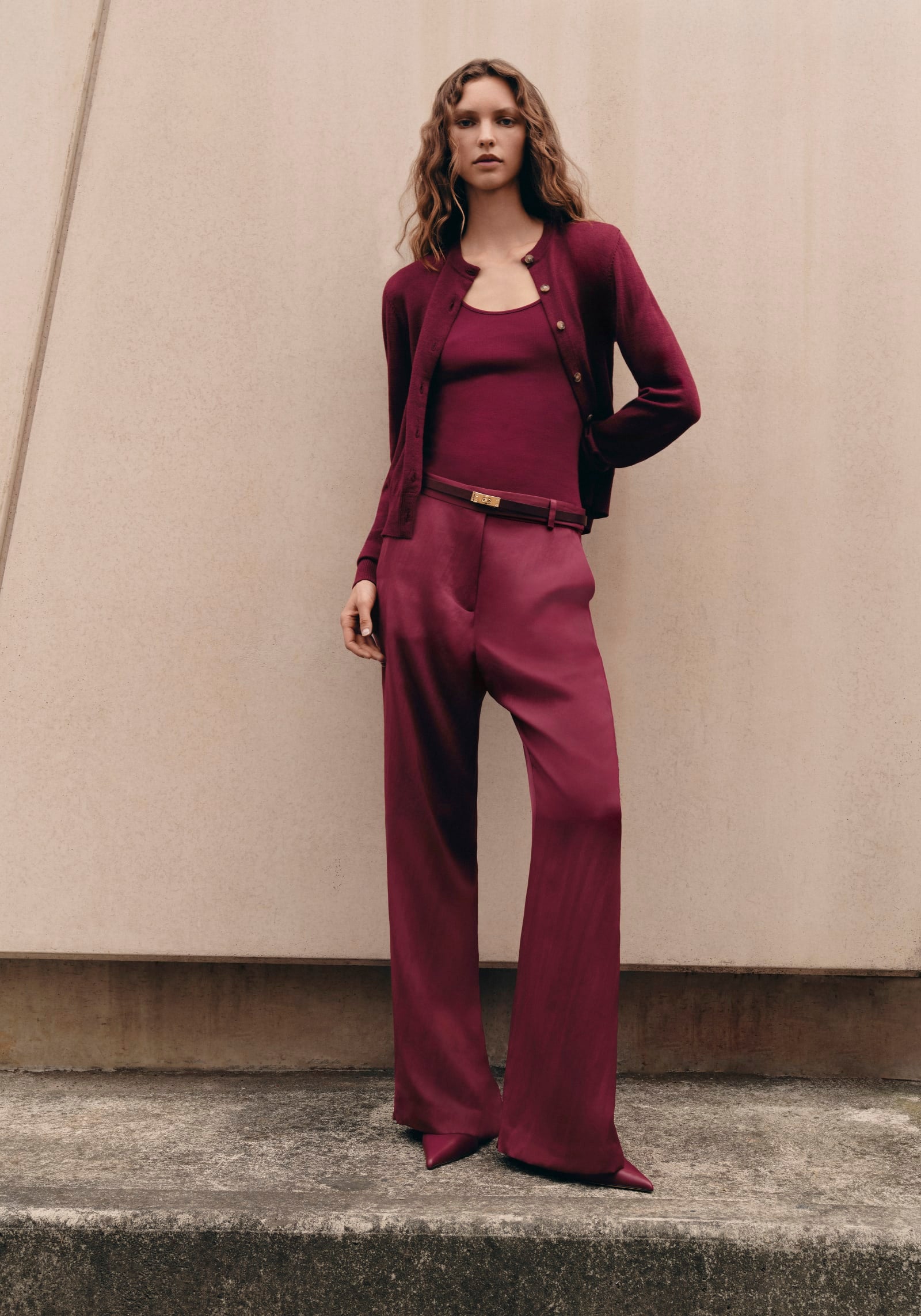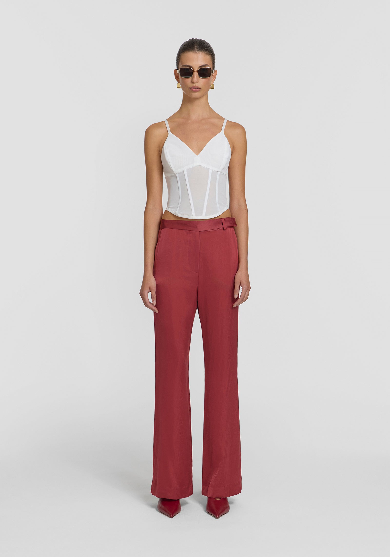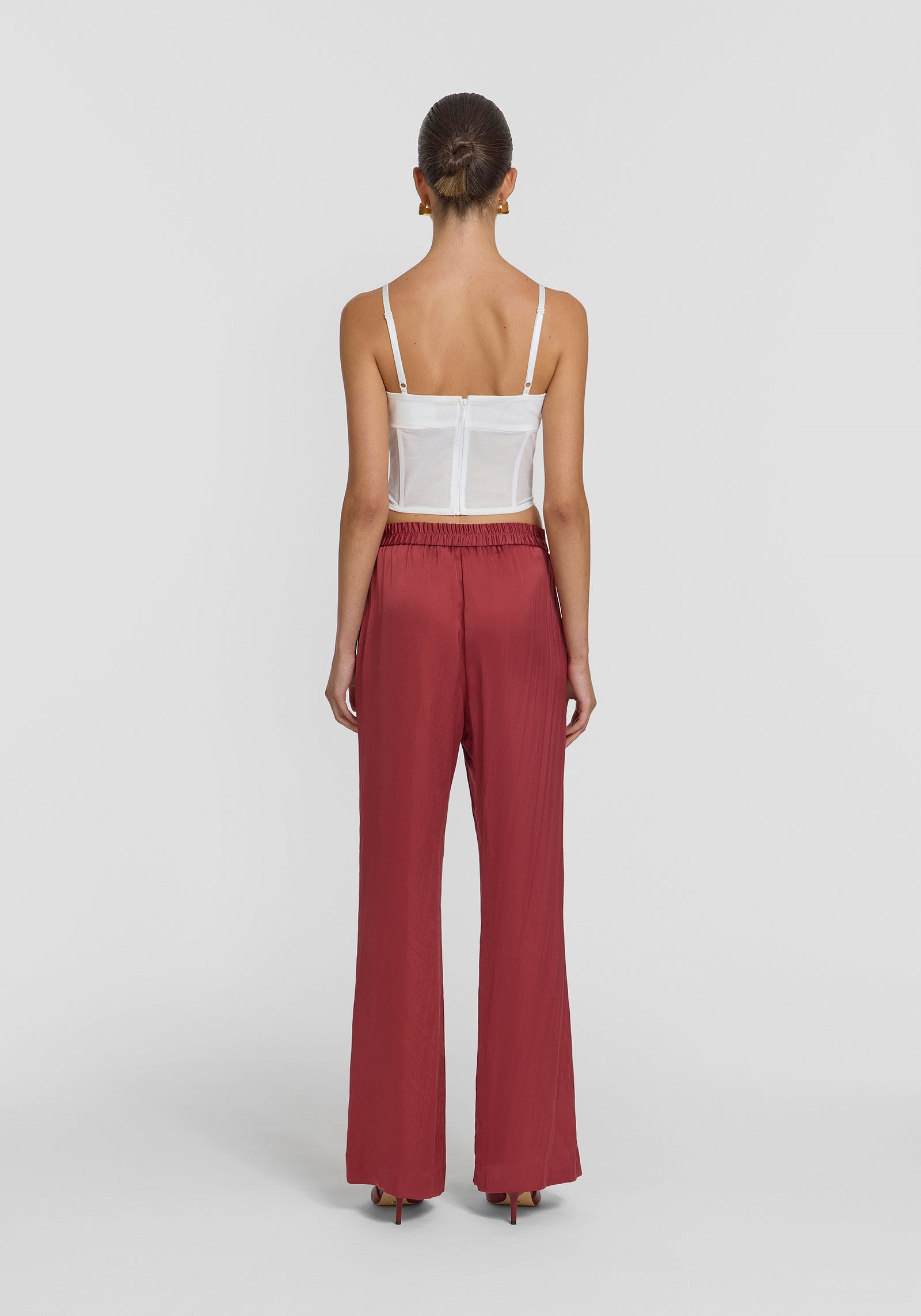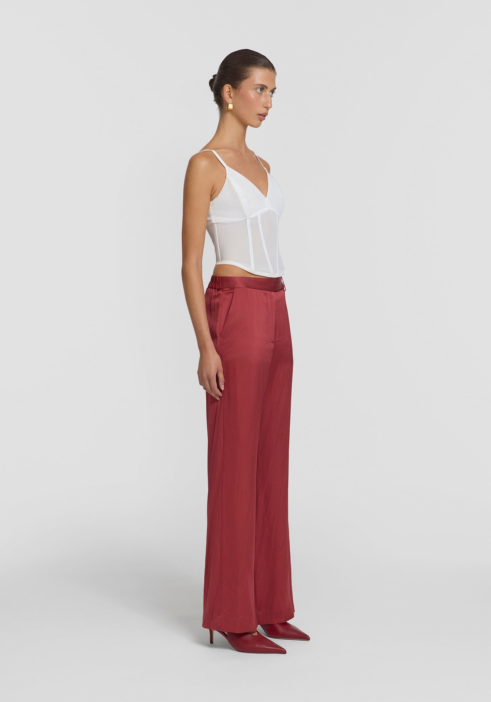 The Deluxe Pant in deep red reimagines the refined essence of our iconic Pilot Pants. Crafted from luxurious lightweight cupro, it features a high-rise silhouette and a straight leg with a soft flare. A tailored front waistband with an extended tab and an elasticated back waistband balance structure and ease. Complete the look with the Concert Shirt in the matching hue for an elevated ensemble, or pair back with essentials for effortless versatility.