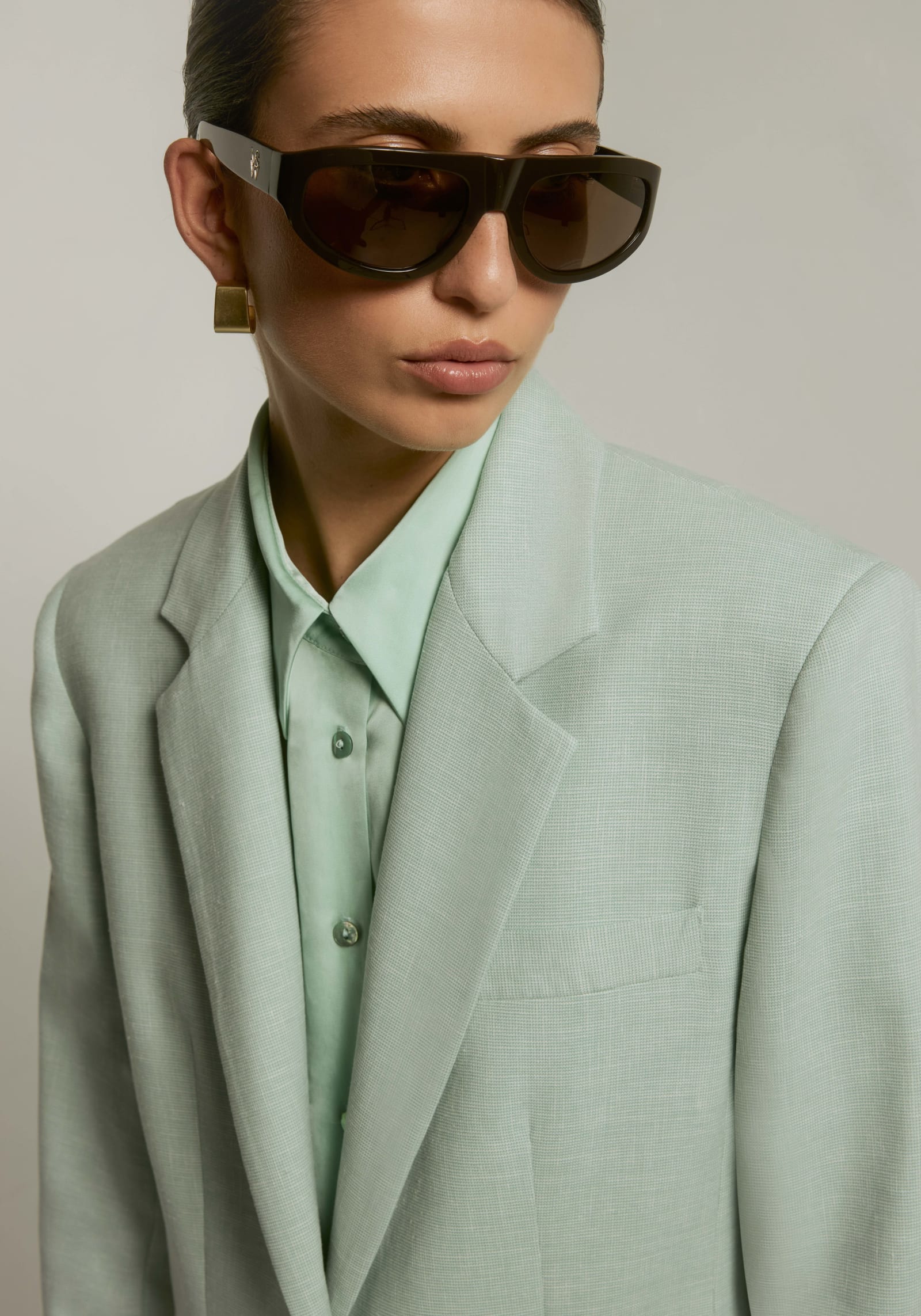 Make a statement in the Driftwood Sunglasses, boasting an oversized rectangular frame crafted from dark brown acetate. With a straight top edge and curved design, they offer UV400 protection and scriptable frames, fusing edgy style with functionality for a standout accessory.