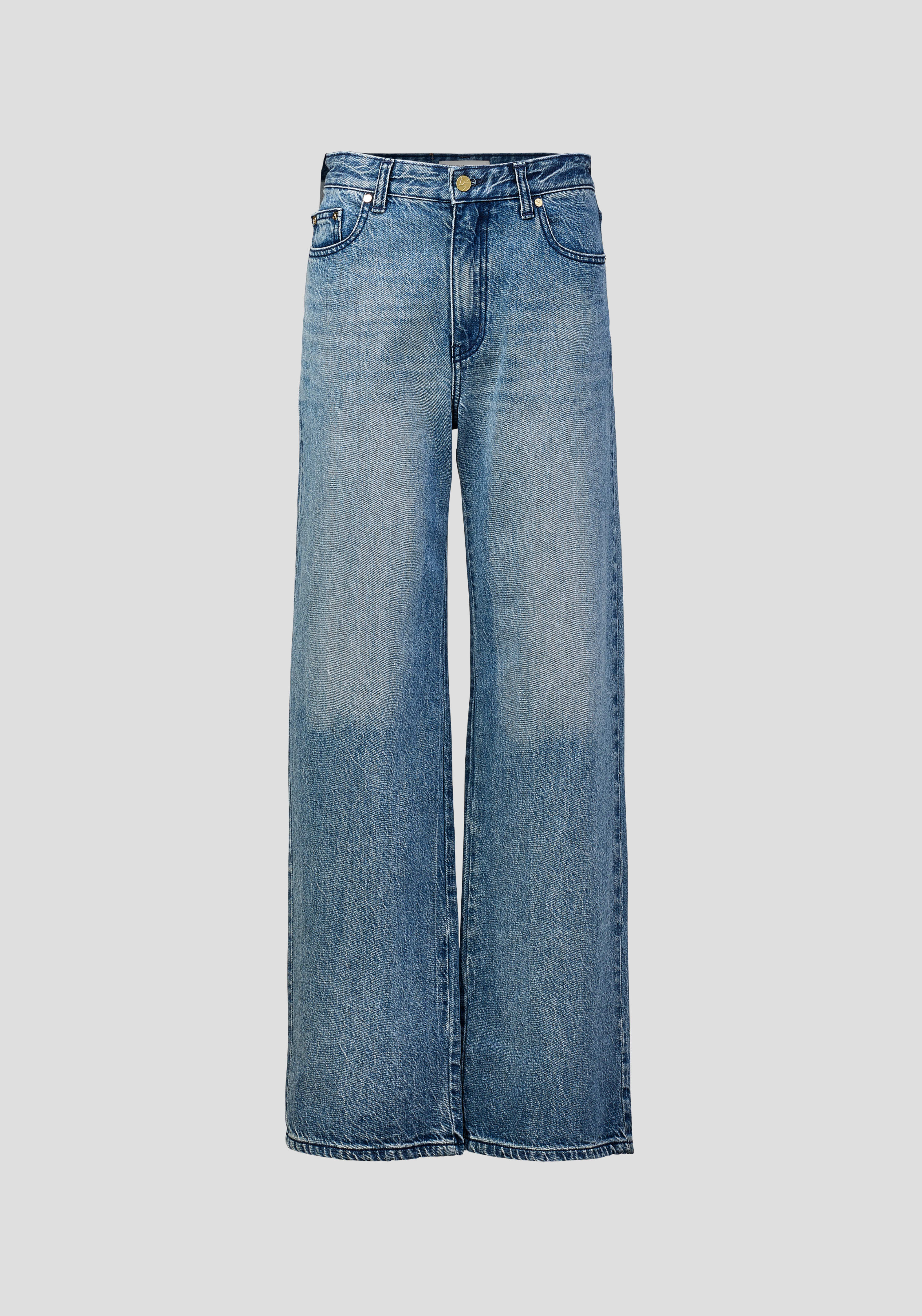 Update your denim collection with the Elvis Jean, a timeless essential crafted from rigid denim in a classic blue wash. Achieving a vintage, pared-back feel through an intricate dying process, they feature a flattering mid-rise and relaxed wide-leg silhouette. Finished with a tan logo leather patch and logo hardware, these jeans deliver enduring style for effortless everyday wear.