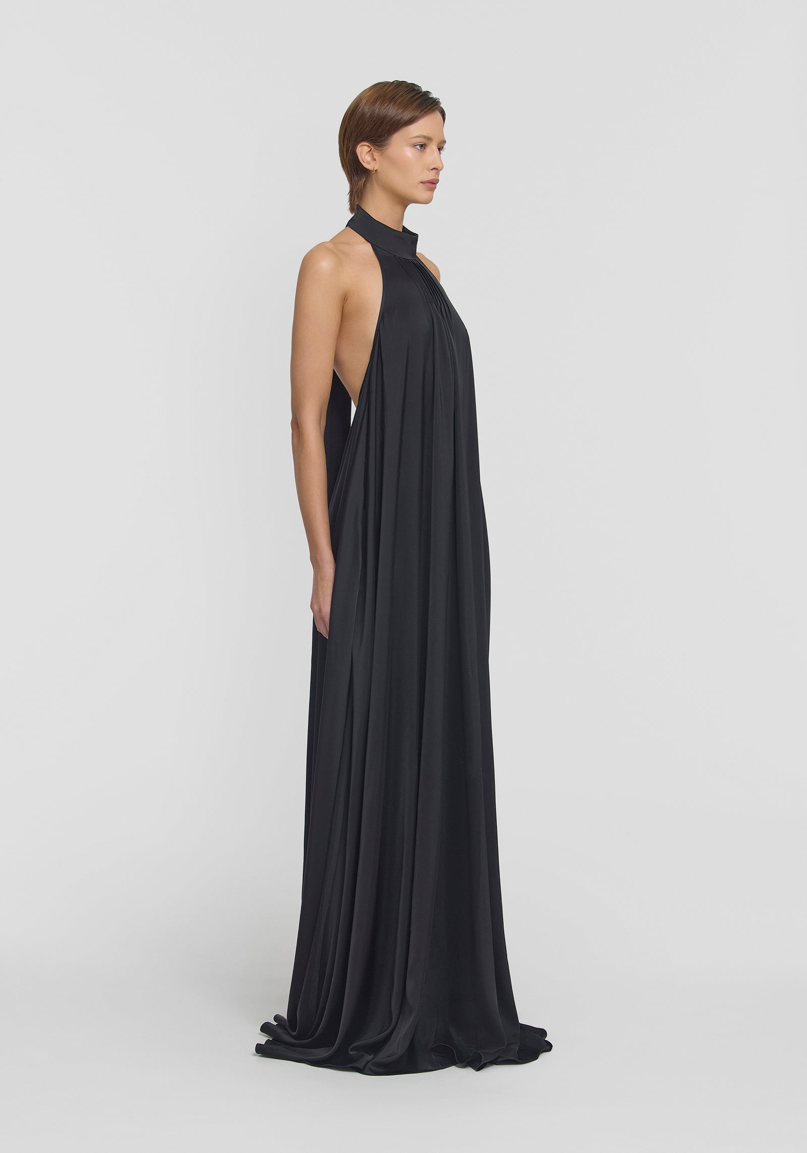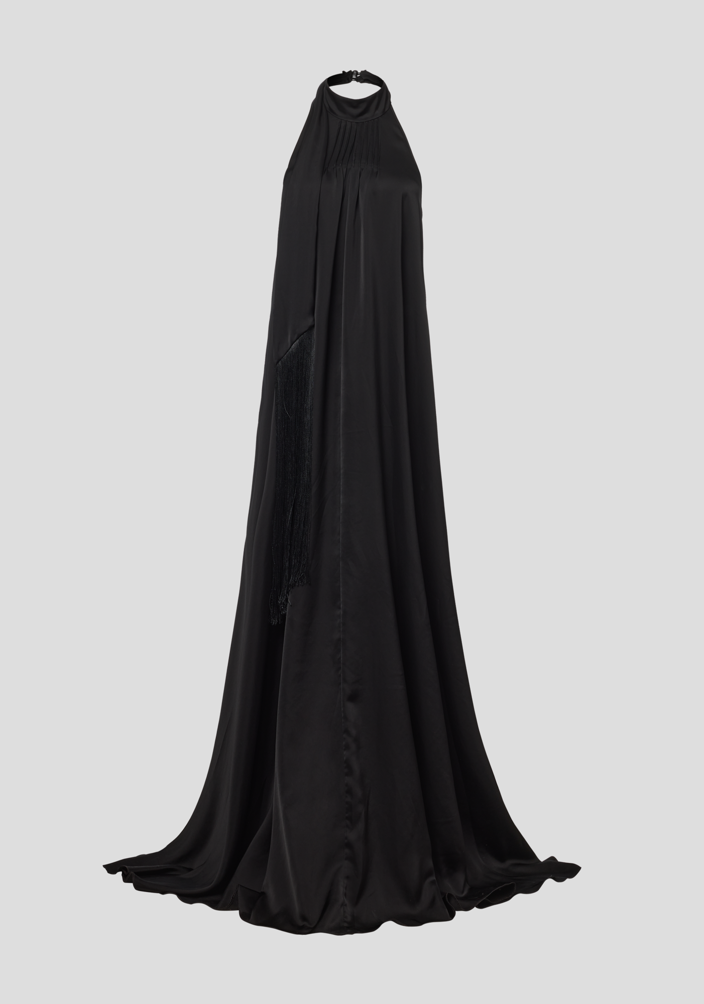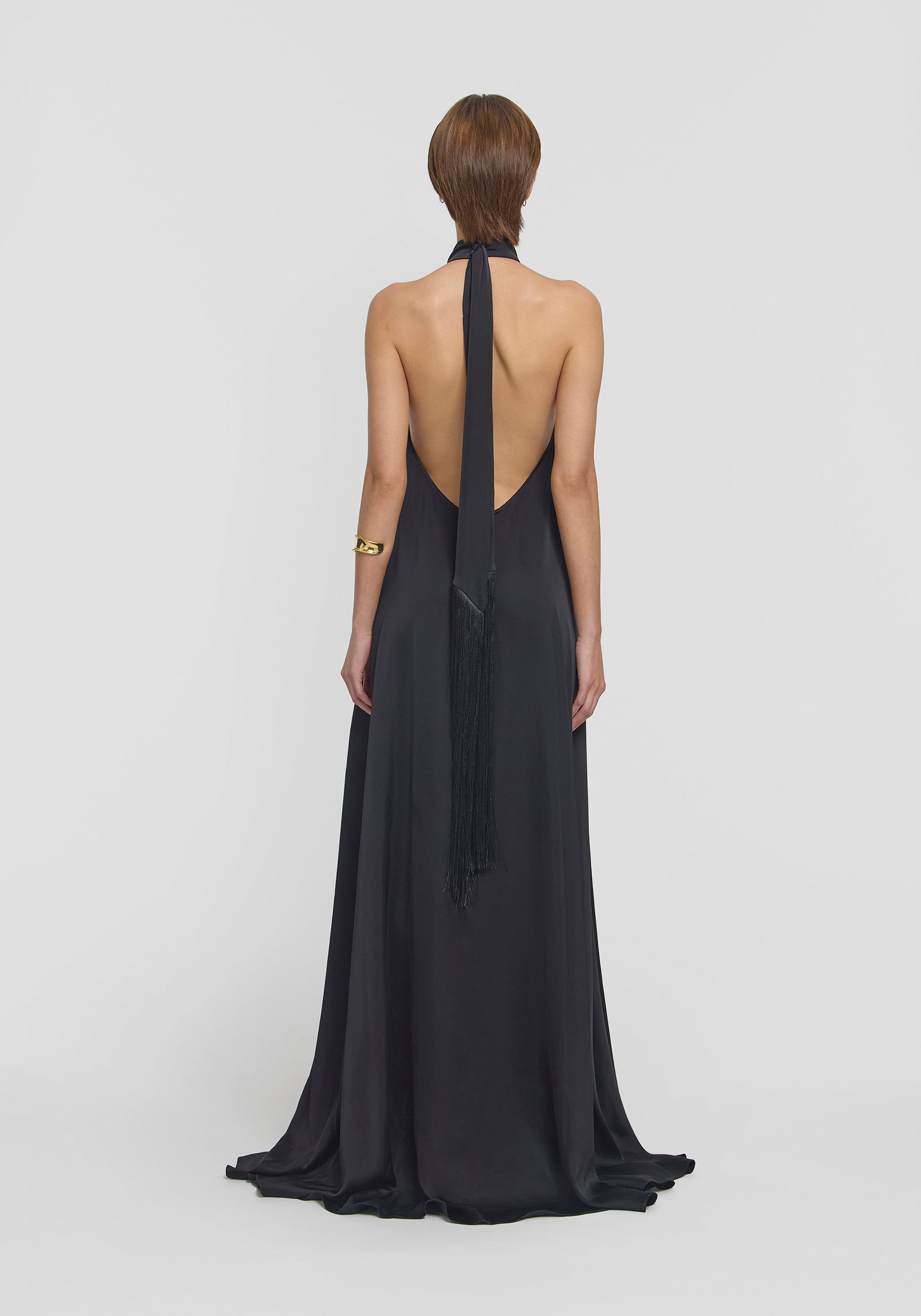 Make a statement with the ethereal Fairytale Dress, a show-stopping design crafted from luxurious black cupro. With a halter neck, low back, and delicate pintuck detailing along the neckline, it’s beautifully finished with a detachable back neck tie adorned with fringing. The flowing volume and timeless silhouette make this dress the embodiment of refined elegance.