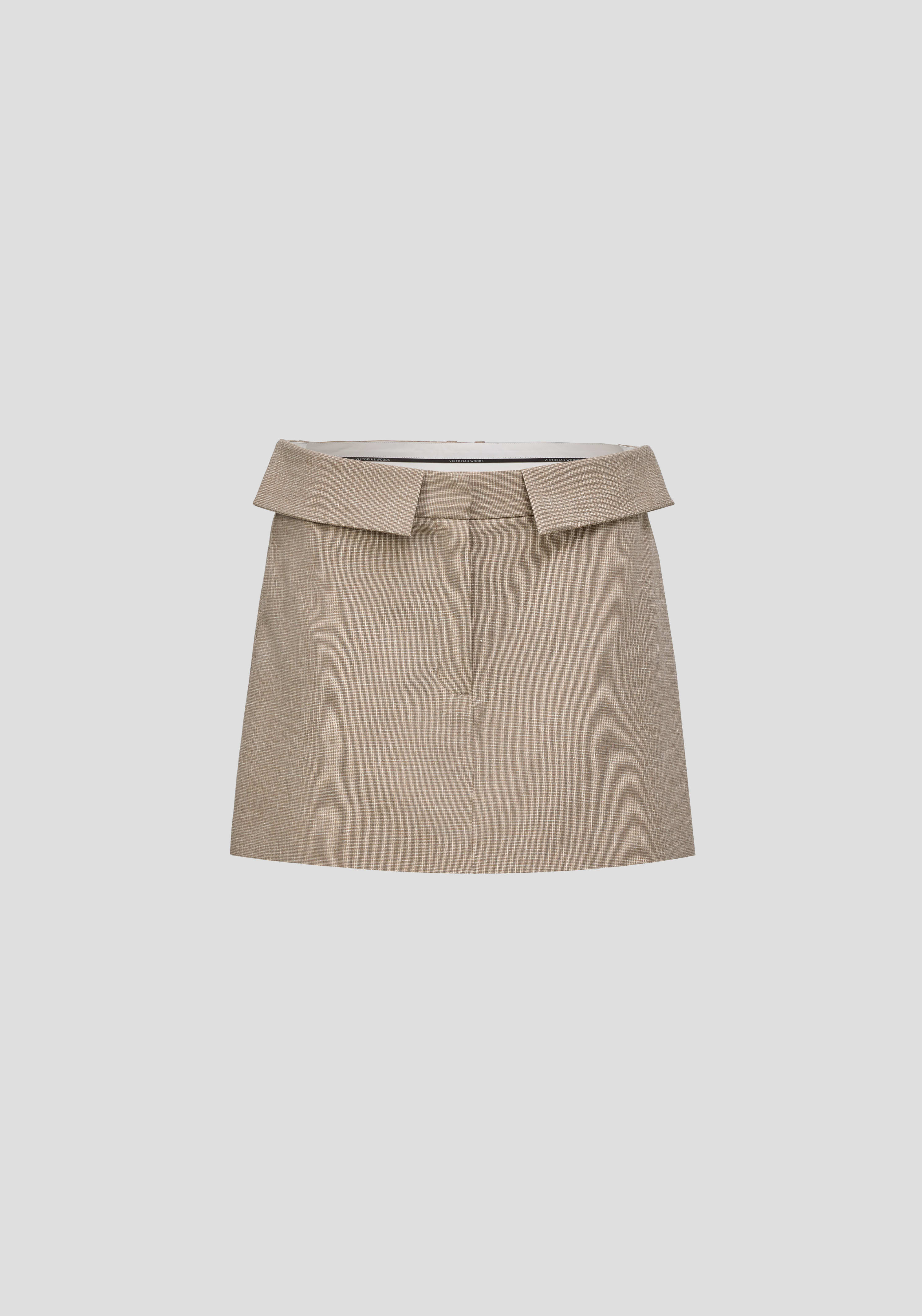 The Finesse Skirt balances architectural structure with quiet confidence, crafted in textured linen in a latte brown hue. Cut in a mid-rise mini length, it features a tailored waistband with flap detailing, pockets, and centre back belt loops. Pair with the Optimistic Vest for polished simplicity that speaks to intentional dressing, or style back with separates for effortless versatility.