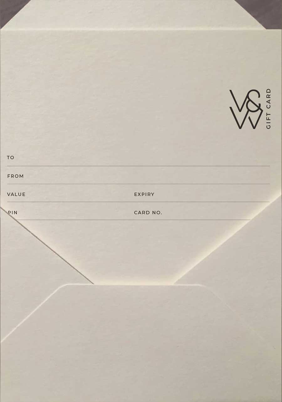 Gift cards can be redeemed online at the checkout or in any of our V&W boutiques.