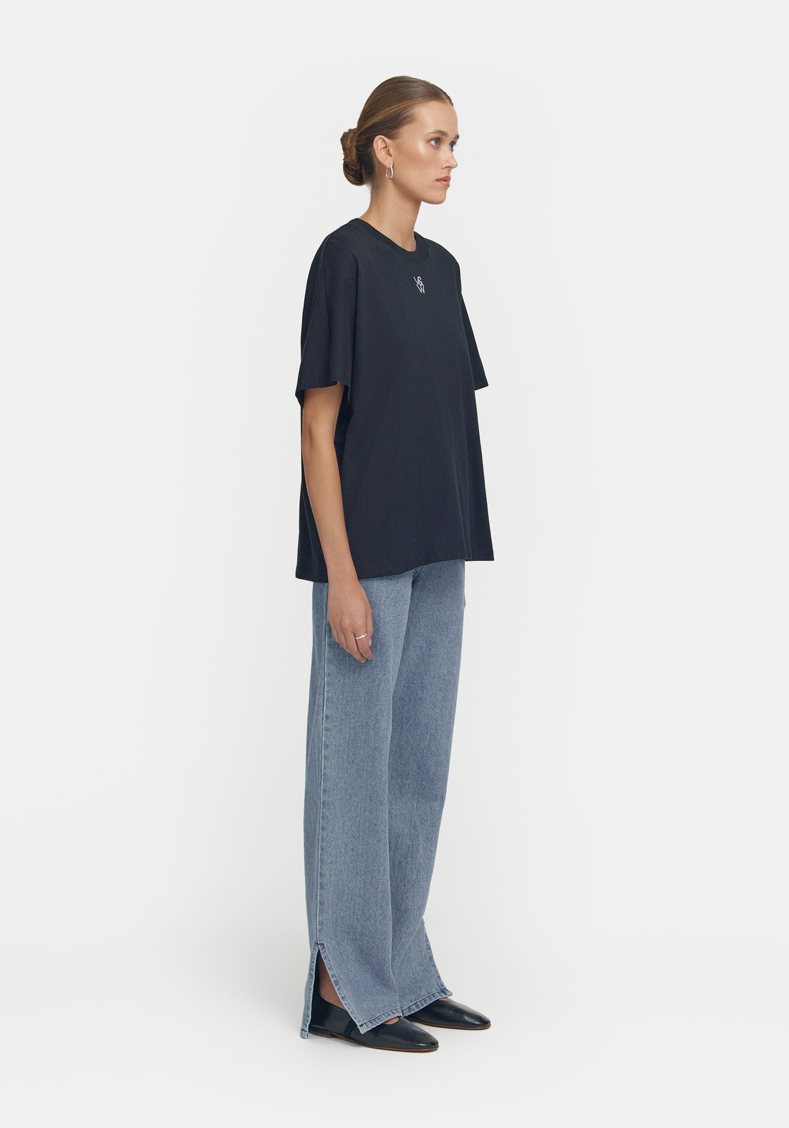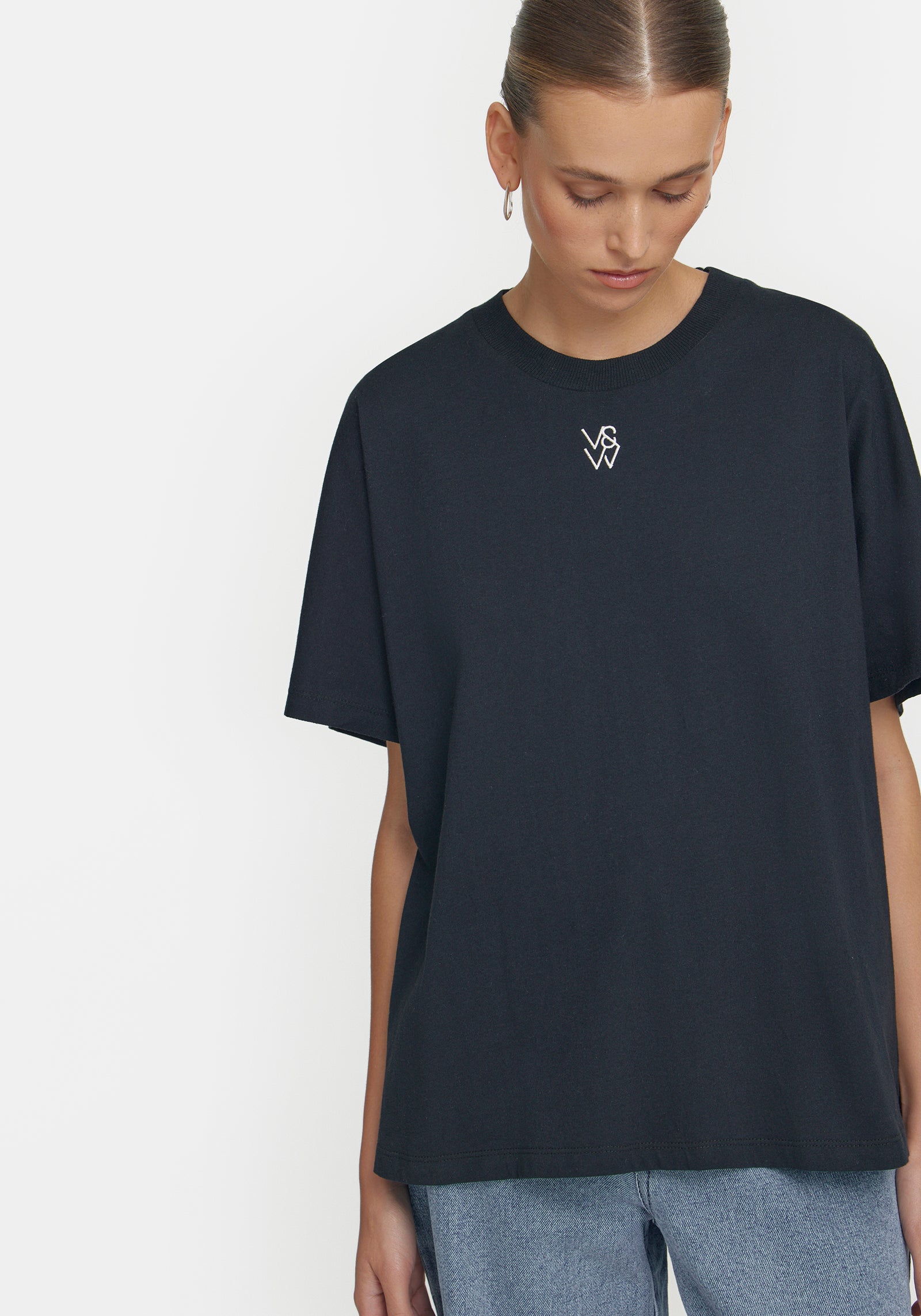 The Halifax Tee in classic black is crafted from 100% cotton. This oversized t-shirt features ribbed detailing at the neck and is finished with V&W embroidery at the front. This style acts as an effortless wardrobe basic, perfect for layering or wearing on its own with V&W denim.