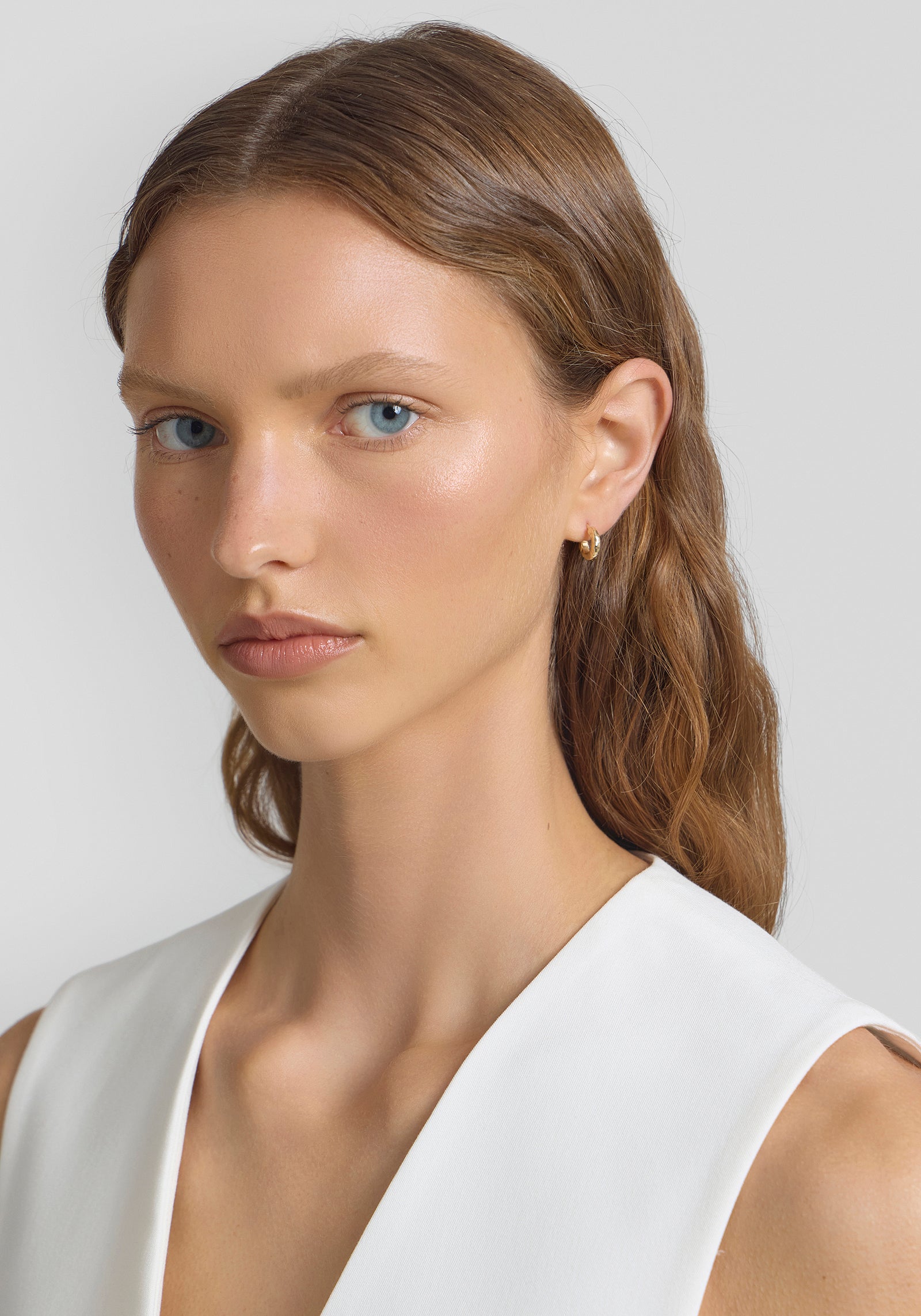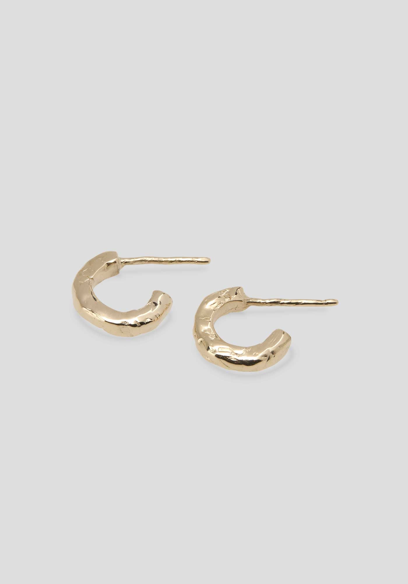 The Hammered Huggies are crafted in sterling silver with 18k gold plating offer a modern twist on a classic design. Featuring a subtle hammered texture, these earrings bring understated elegance to your everyday.