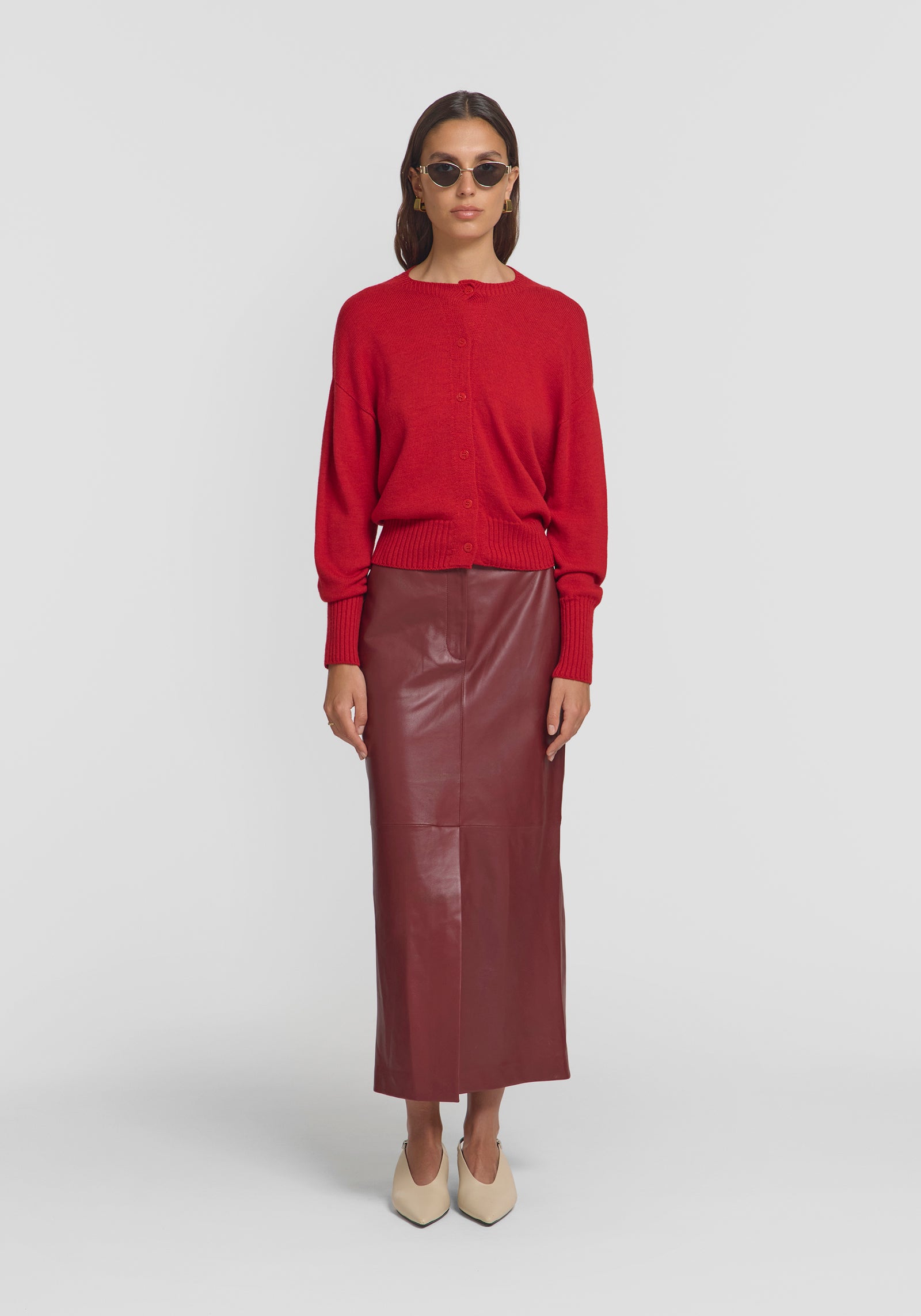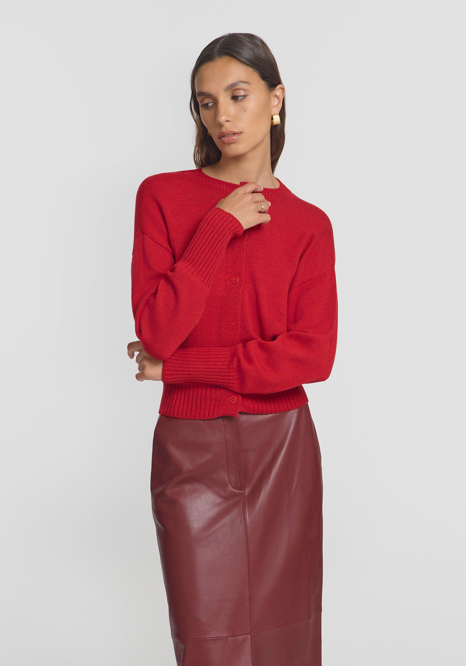 Knitted in Melbourne, the Hart Cardigan is an iconic V&W staple, crafted from our signature merino wool. Designed for a relaxed fit with drop shoulders, it’s finished with tortoiseshell logo buttons and ribbed trims. The slightly cropped silhouette falls just below the hip, perfect for pairing with this season’s red hues or casually with denim. Drape it over the shoulders for a striking infusion of red to elevate any look.