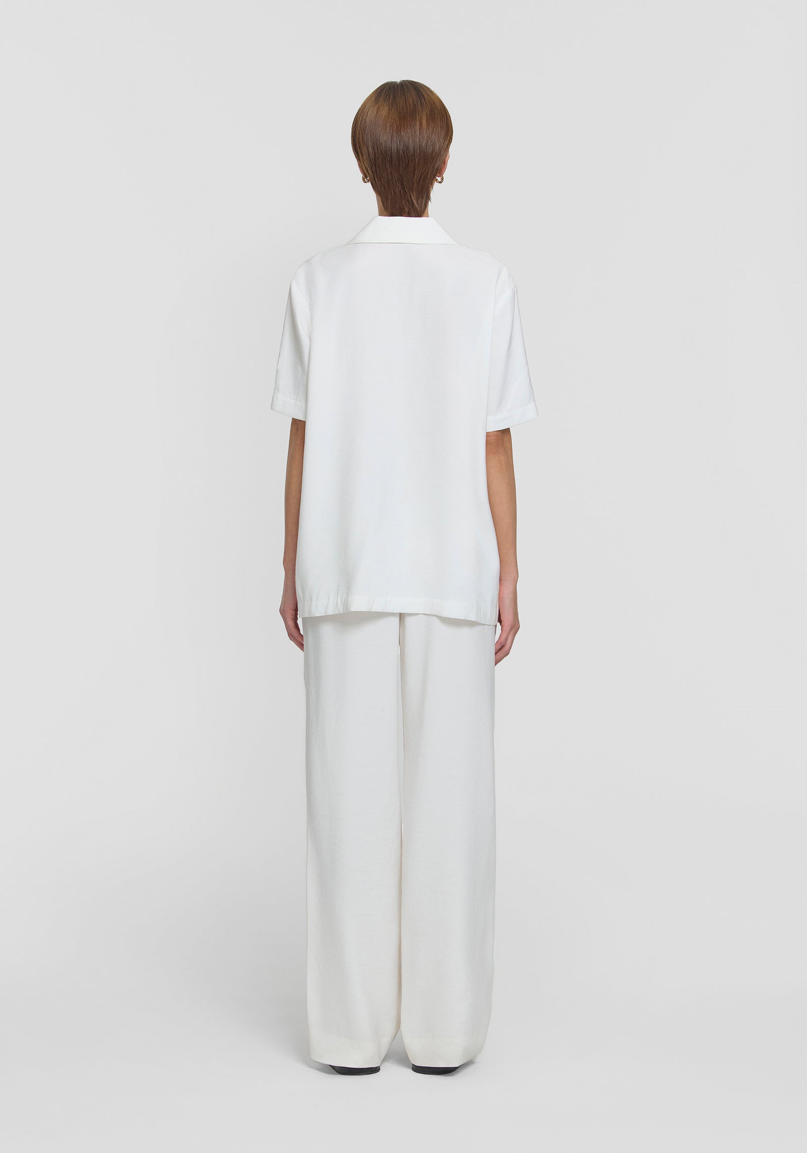 Introducing the Hepburn Shirt, a refined take on our iconic Chorus Shirt, tailored in a luxurious ivory bamboo blend. With its double-breasted front and relaxed fit, this piece offers timeless versatility. Effortlessly pair it with the Ivanhoe Pant for a chic set, or style with denim for a classic, polished look.