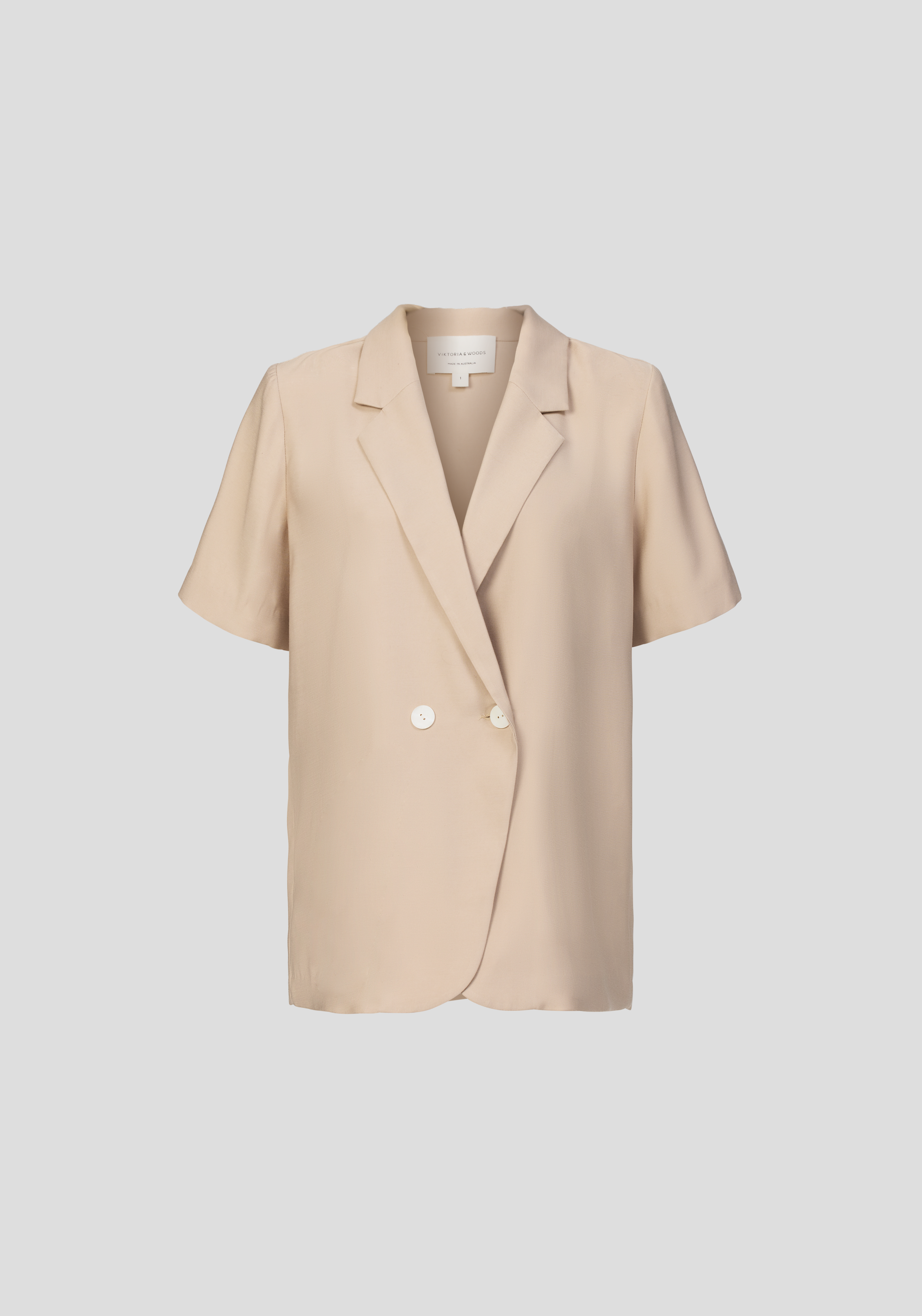 Introducing the Hepburn Shirt, a refined take on our iconic Chorus Shirt, tailored in a luxurious sand bamboo blend. With its double-breasted front and relaxed fit, this piece offers timeless versatility. Effortlessly pair it with the Ivanhoe Pant for a chic set, or style with denim for a classic, polished look.