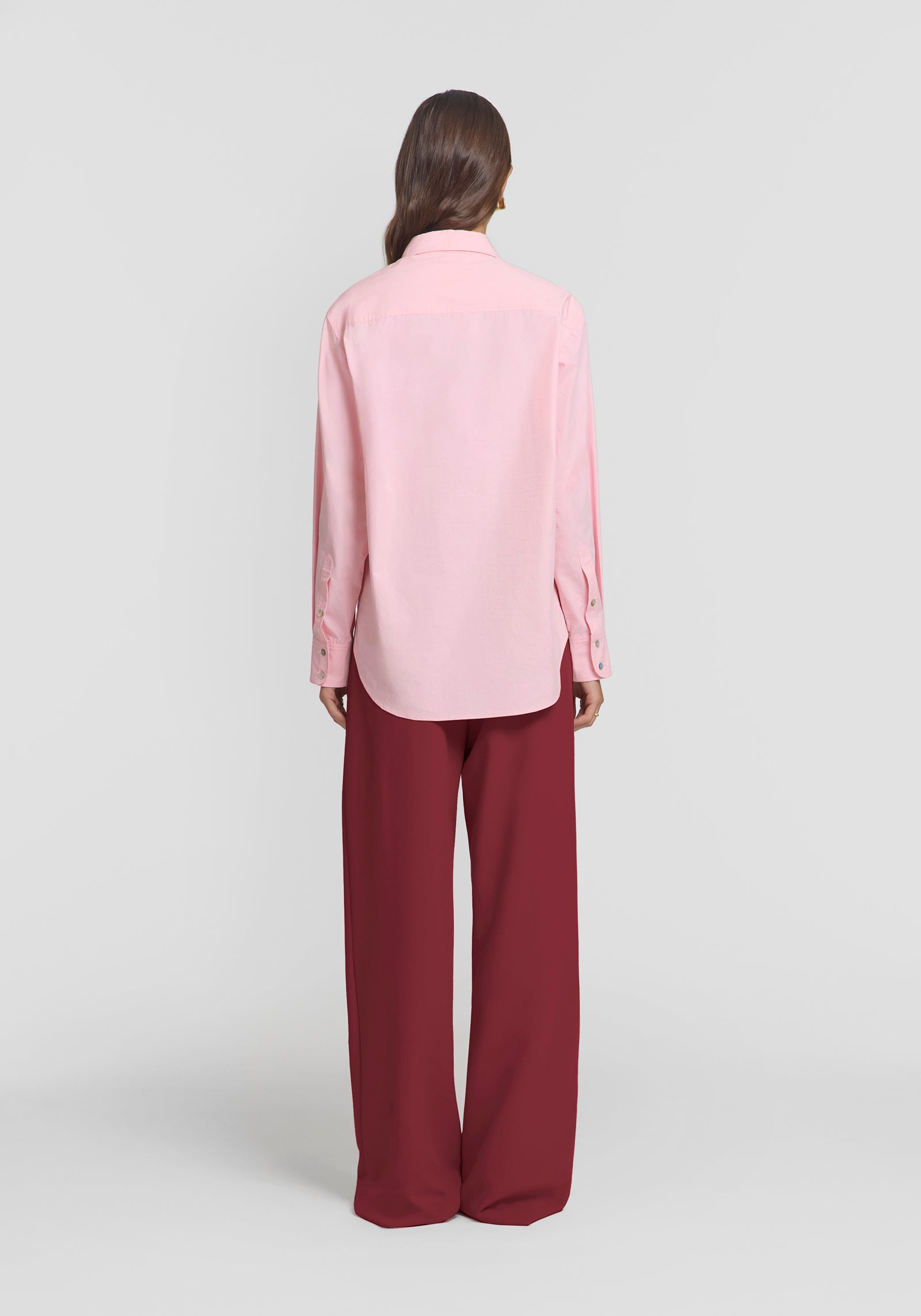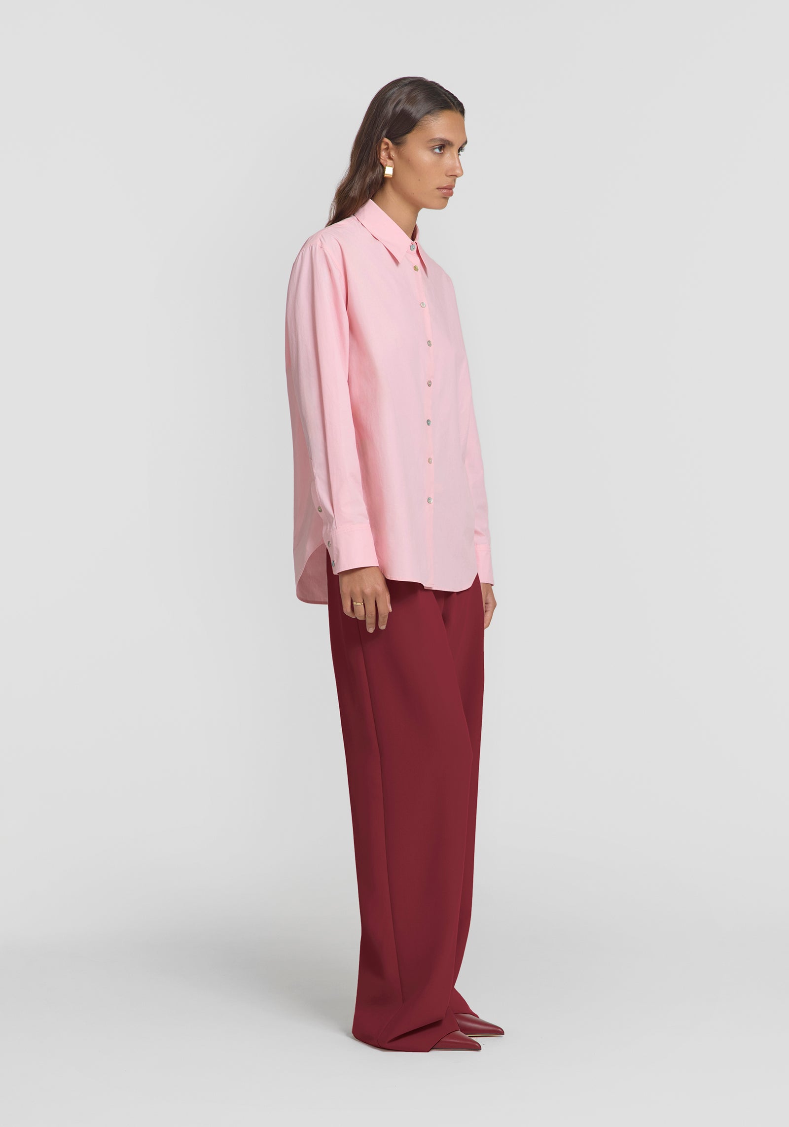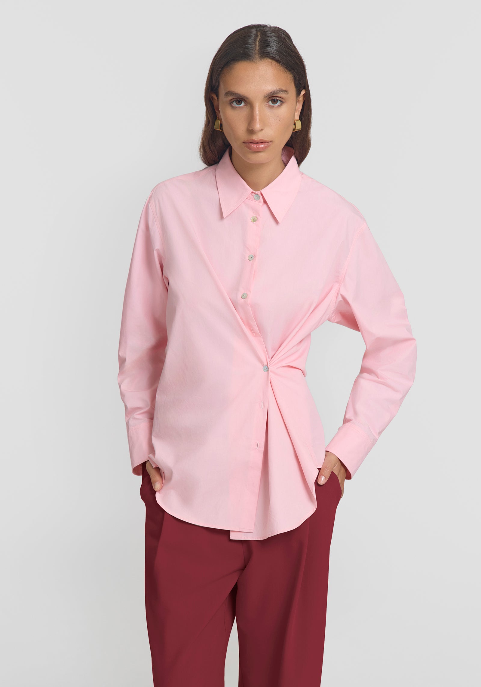A considered design, the Hope Shirt is a transeasonal staple crafted from cotton in a feminine pink hue. Featuring a traditional collar, shell buttons, and an optional wrap detail, it offers elevated versatility with ease. Pair with this season’s red hues for a sophisticated pairing that makes a statement.