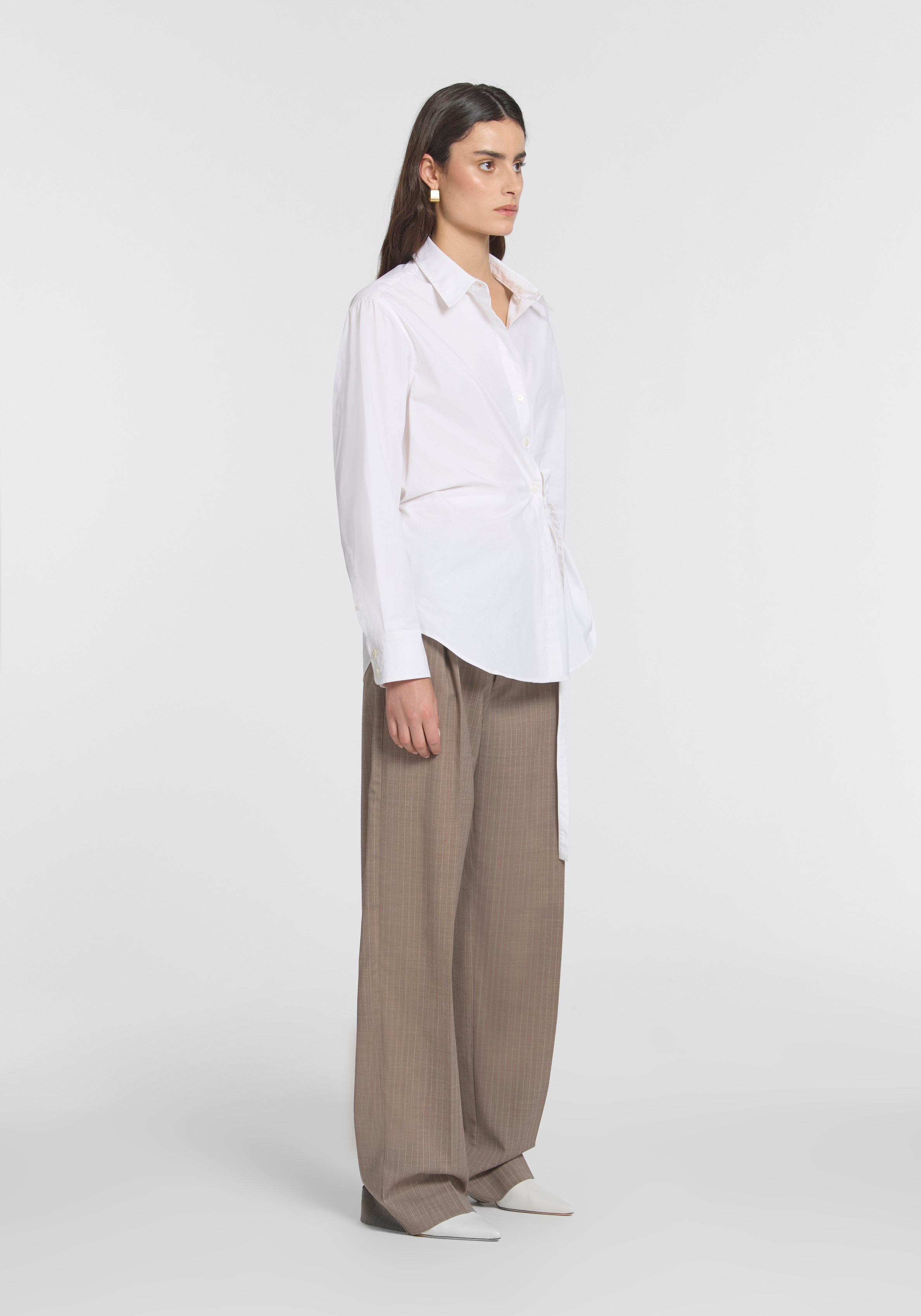 A considered design, the Hope Shirt is a transeasonal staple crafted from cotton in classic ivory. Featuring a traditional collar, shell buttons, and an optional wrap detail, it offers elevated versatility with ease. Make it the centre of your outfit or pair back with everyday essentials for effortless styling.