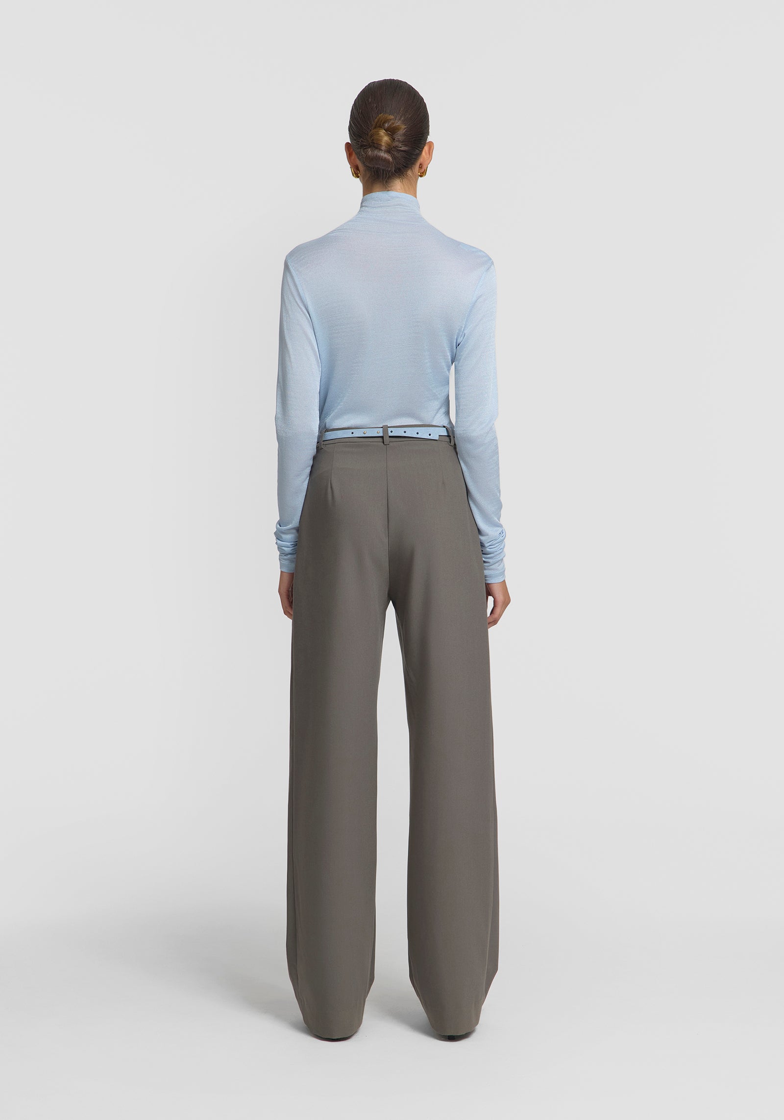 An elevated classic, the Idol Pant is crafted in a soft rayon blend fabrication in a dusty olive hue. Falling to a full-length, wide-leg silhouette, this style features front tucks and functional angled side pockets. Femininely complemented with this season's light blue hues, pair with your everyday essentials for a tailored yet effortlessly refined finish.