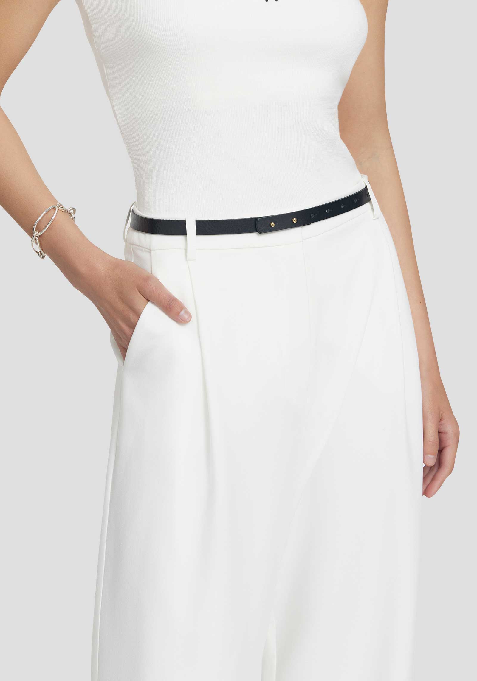 An elevated classic, the Idol Pant is crafted in a soft rayon blend fabrication in elegant ivory. Falling to a full length and wide leg silhouette, this style features front tucks and functional angled side pockets, pairing perfectly with V&W basics and shirting for effortless styling.