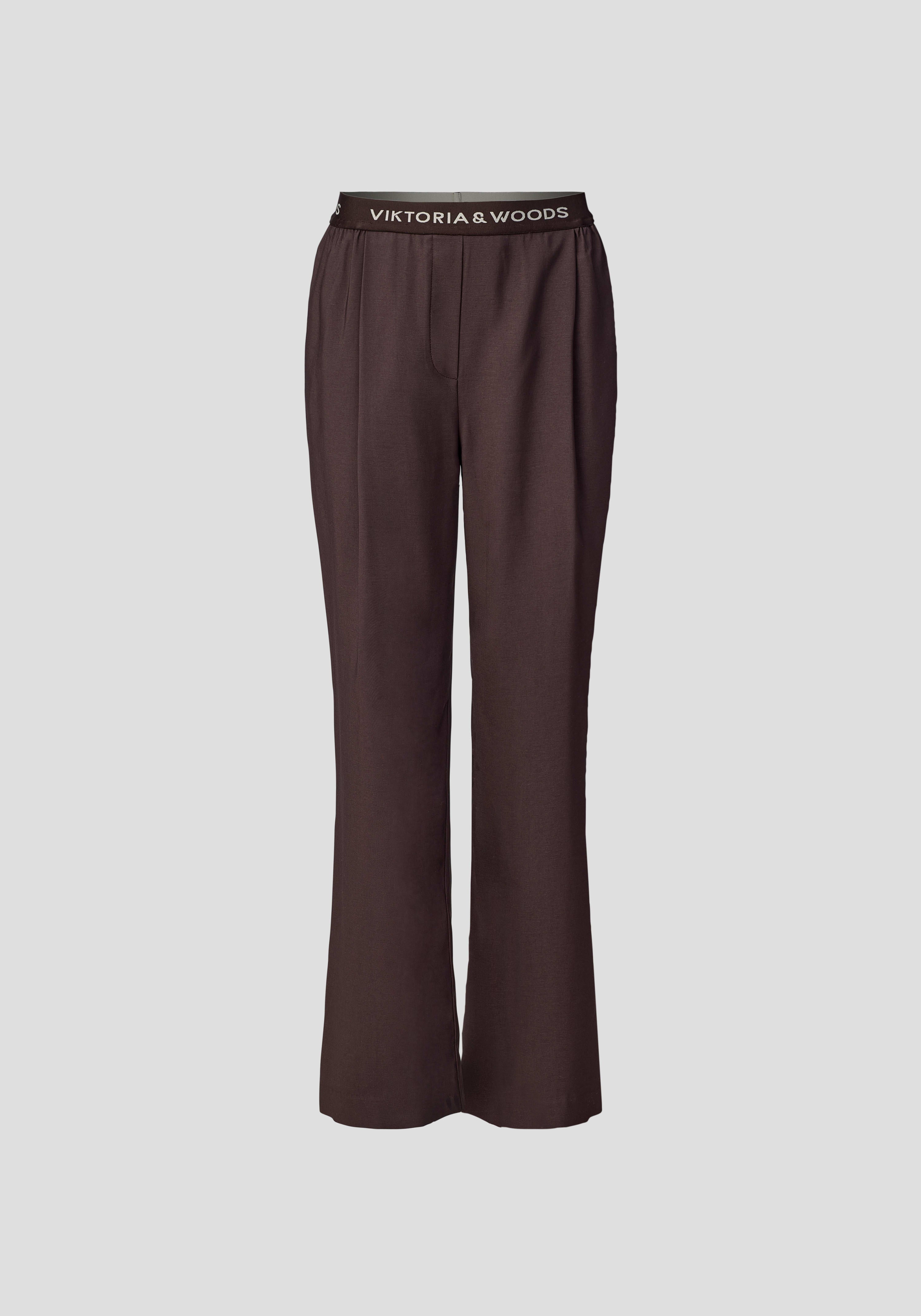 The Ivanhoe Pant returns in a rich chocolate hue, crafted from our signature bamboo blend. With a straight-leg cut and elastic logo waistband for a subtle sporty edge, these pants offer elevated comfort. Style with the Hepburn Shirt, or pair back with V&W basics for refined ease.