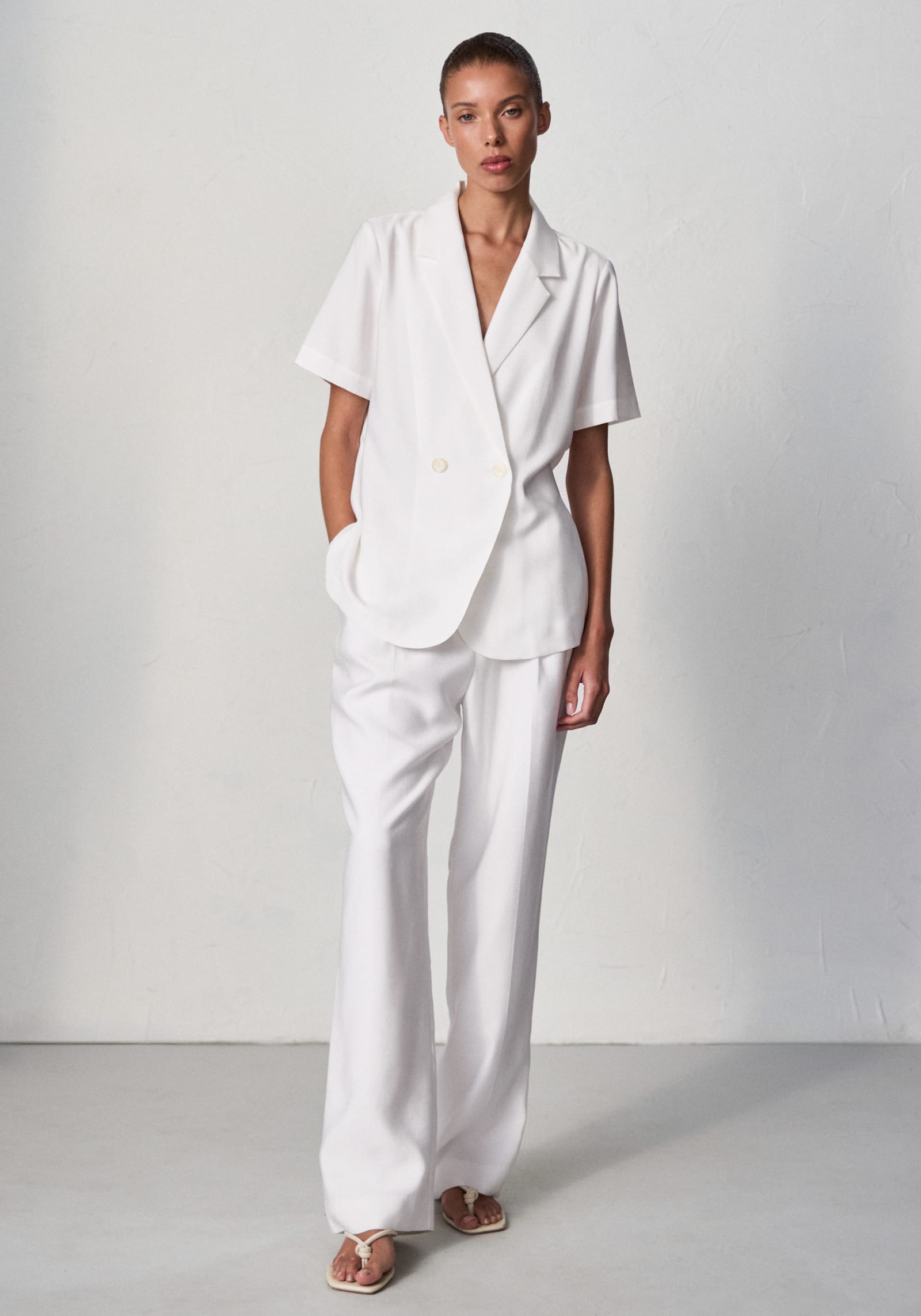 The Ivanhoe Pant, inspired by our cult-classic Greythorn Pant, is crafted from a luxurious ivory bamboo blend. Featuring a straight-leg cut and a grey elastic logo waistband for a sporty touch, these pants offer elevated comfort. Pair them with the Hepburn Shirt in ivory for a refined look, or style back with V&W basics for casual sophistication.