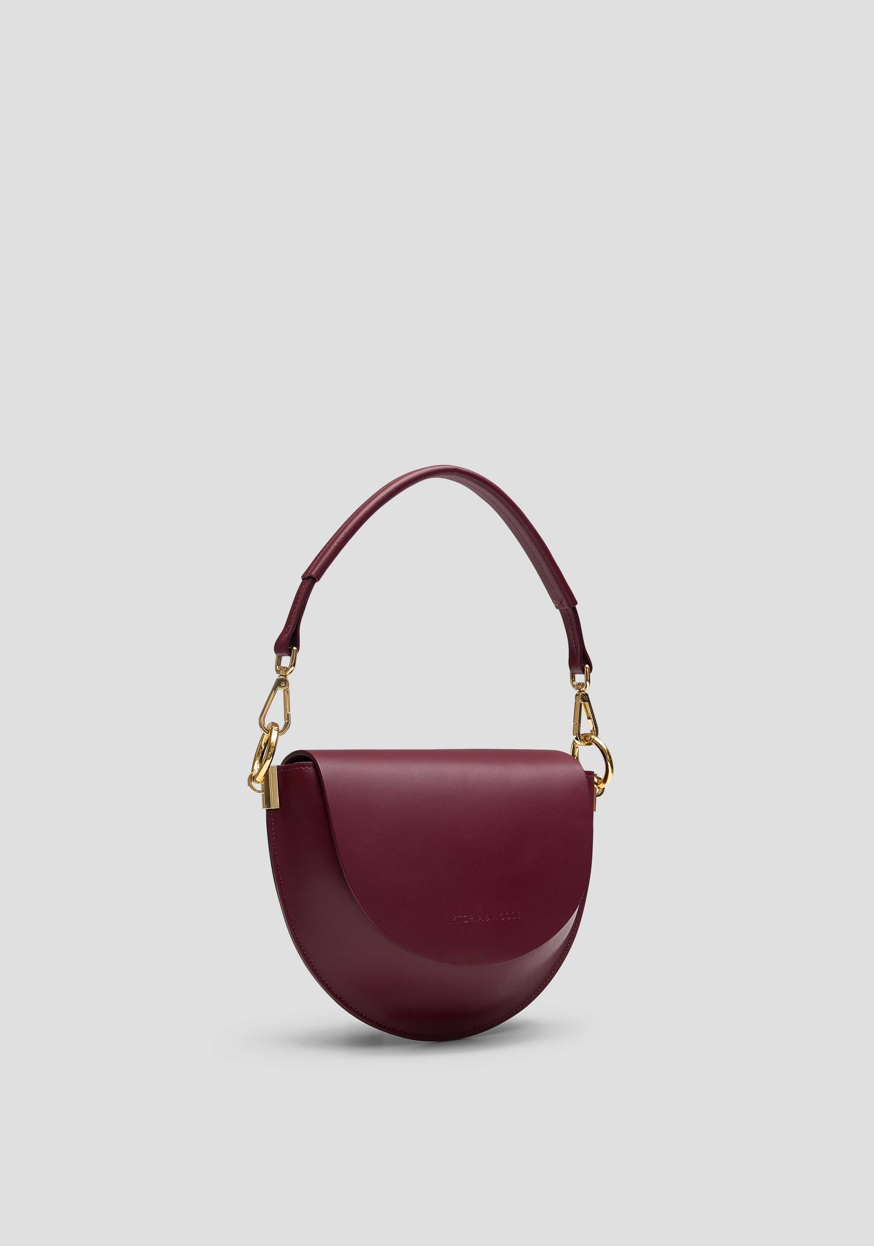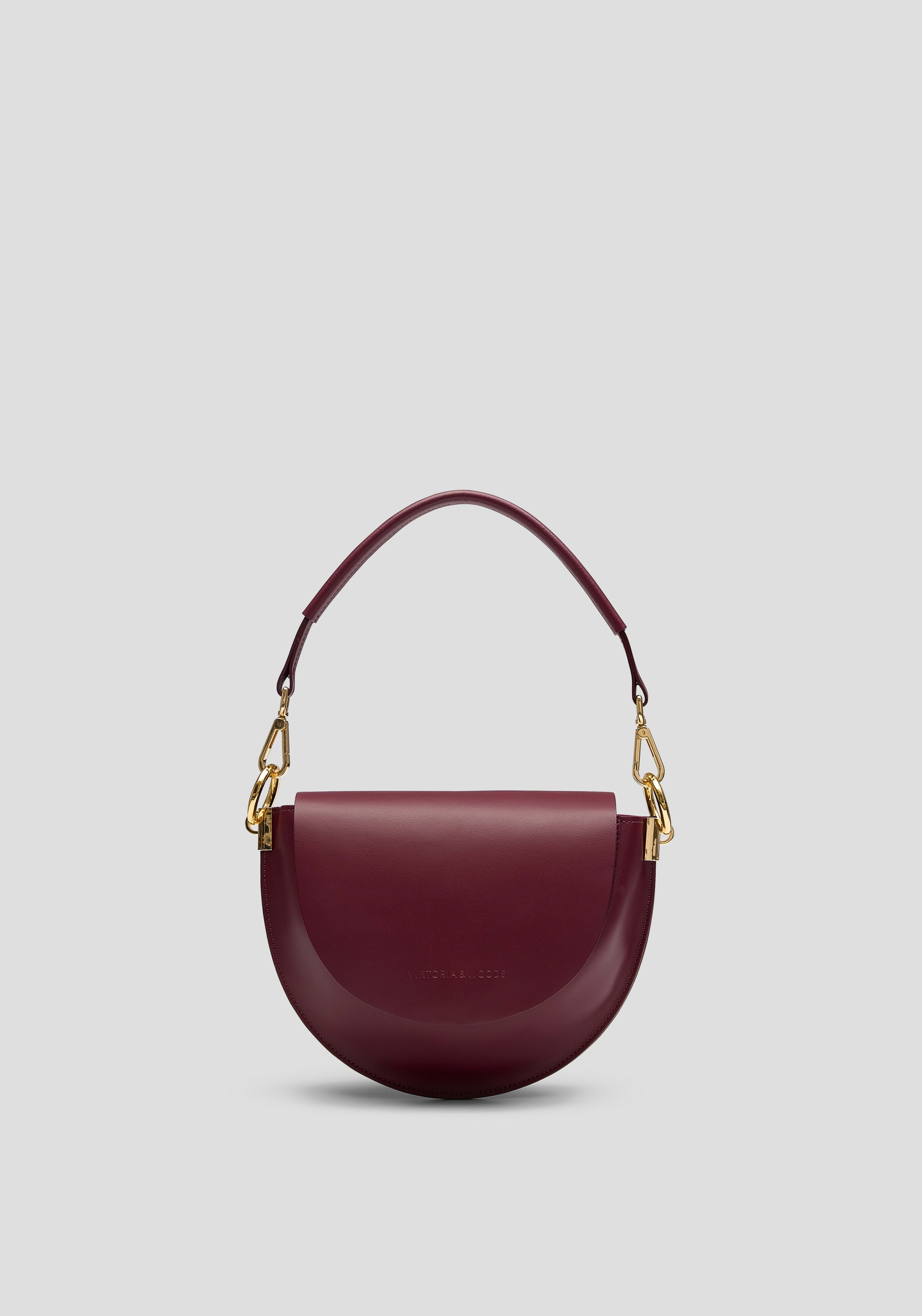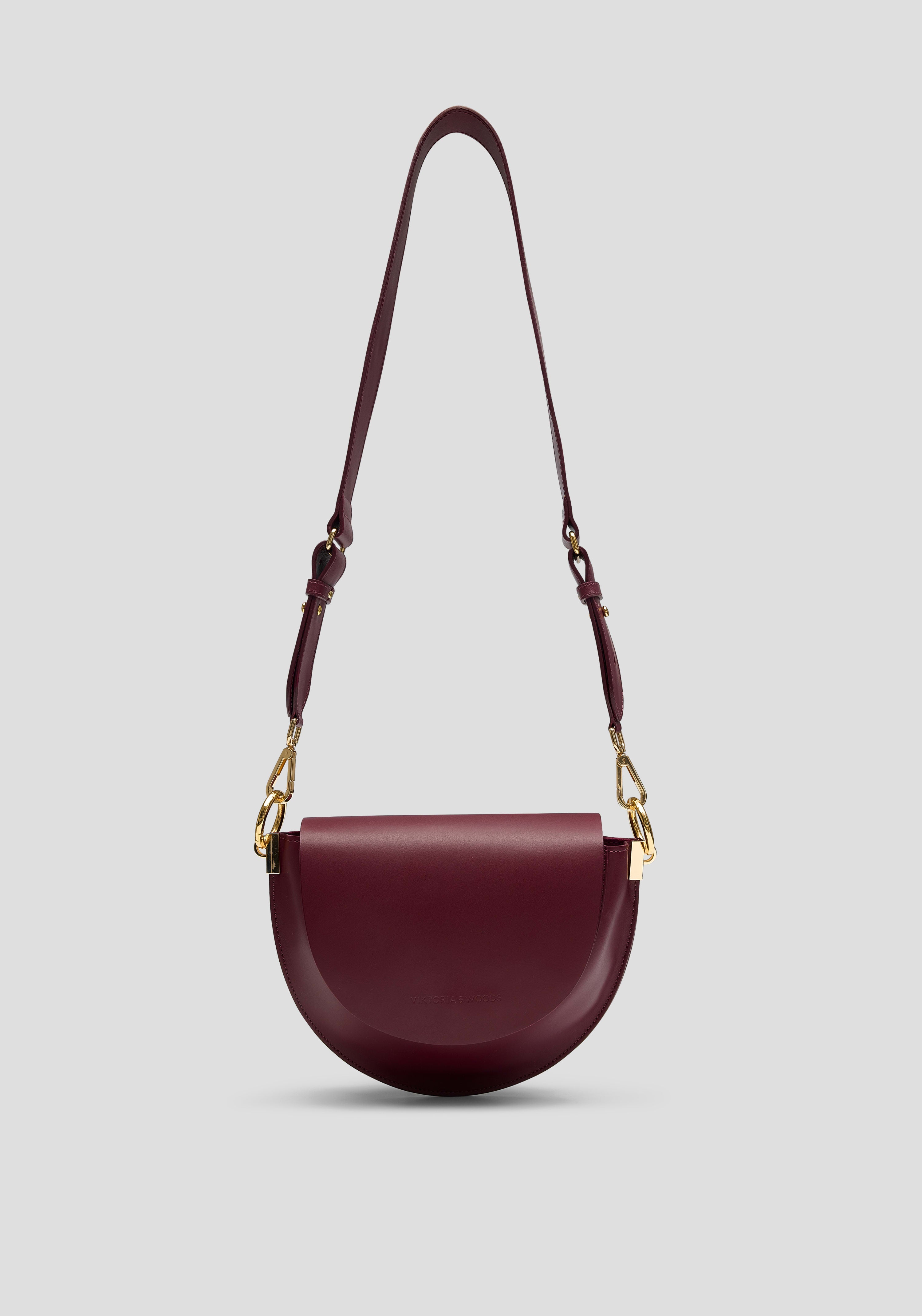 The iconic Jude Cross Body Bag returns in luxurious oxblood leather, fusing seasonal indulgence with timeless appeal. Featuring a sleek saddle silhouette, it includes a two-compartment interior, gold hardware, and a debossed logo. Complete with a removable, adjustable crossbody strap, it perfectly balances elegance and functionality for effortless everyday styling.