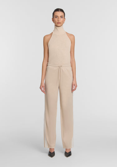 Infuse your everyday styling with a sporty undertone in the Kinetic Pant, crafted in a neutral almond hue with a relaxed straight-leg and soft flare. Featuring an elasticated waistband, contrast ivory stripes, and a signature WOODS patch, it blends comfort with elevated ease. Style with the matching Teammate Bomber, or pair back with essentials for versatile on and off-duty dressing.