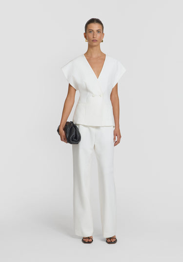 Infuse your tailoring with classic sophistication with the Ludlow Vest in timeless ivory - defined by a bold yet understated silhouette. This double-breasted design offers extended shoulder detailing, a front button closure accented by branded buttons, and mock front pockets. Pair it with the Templeton Trouser for an effortlessly clean ensemble.