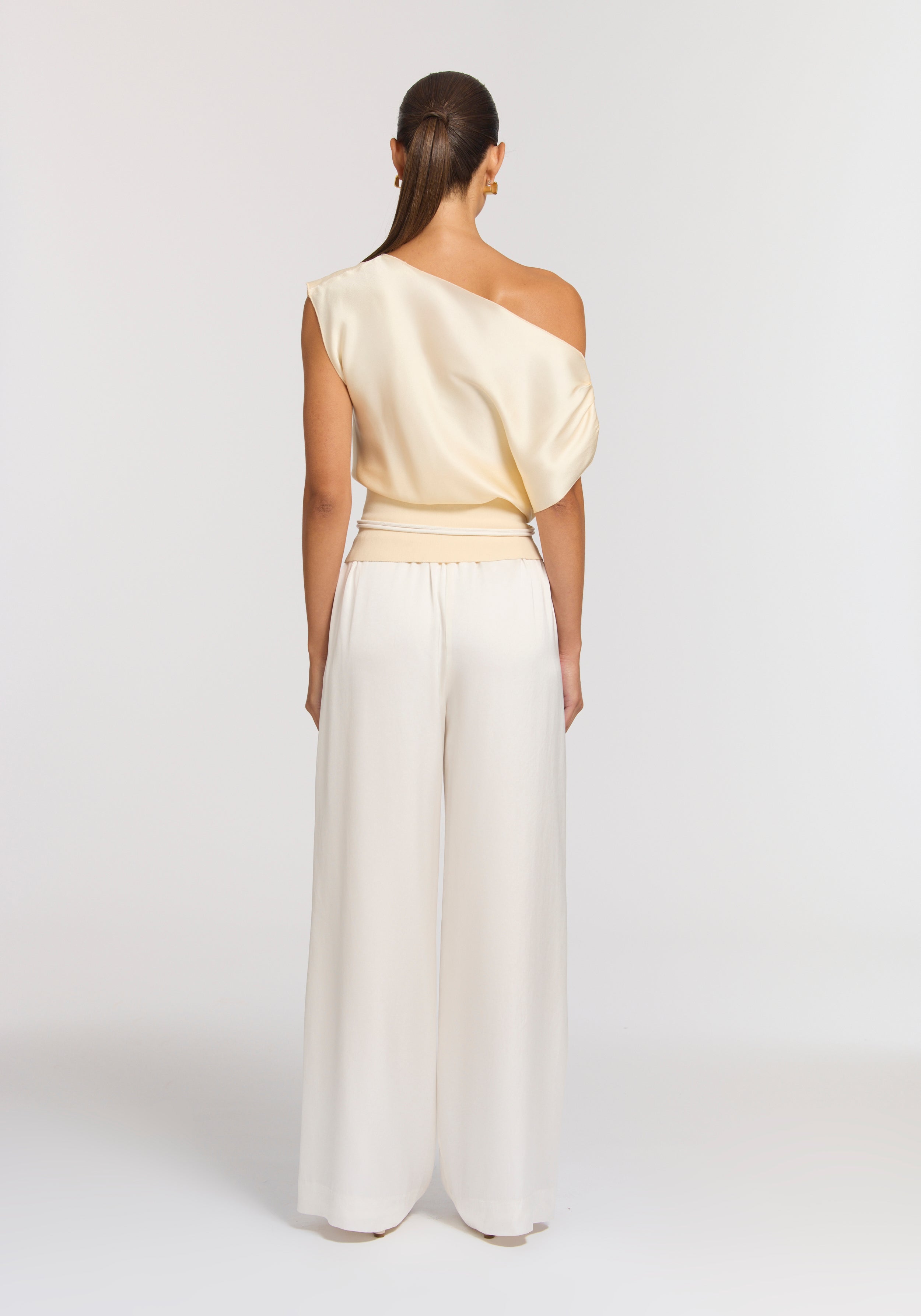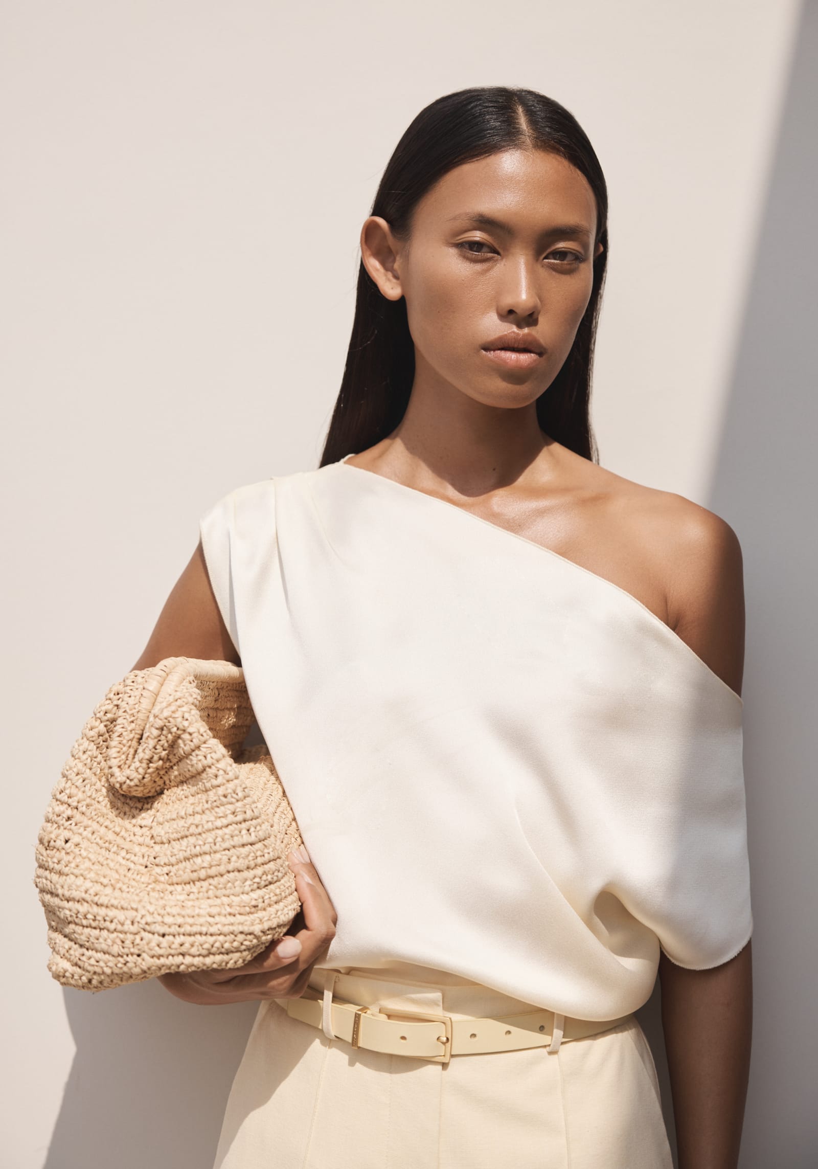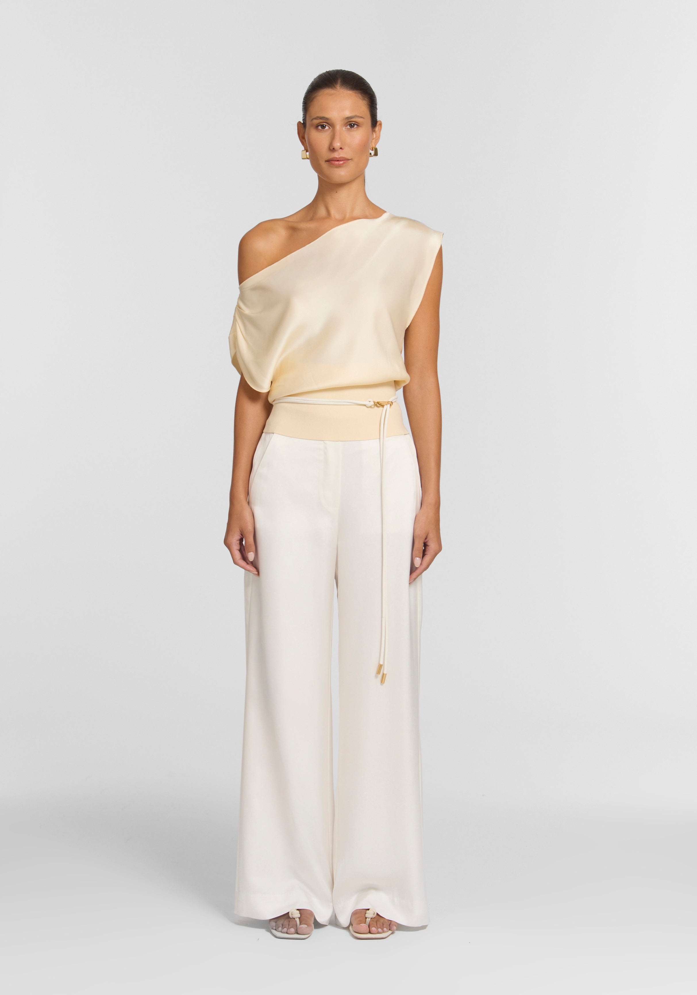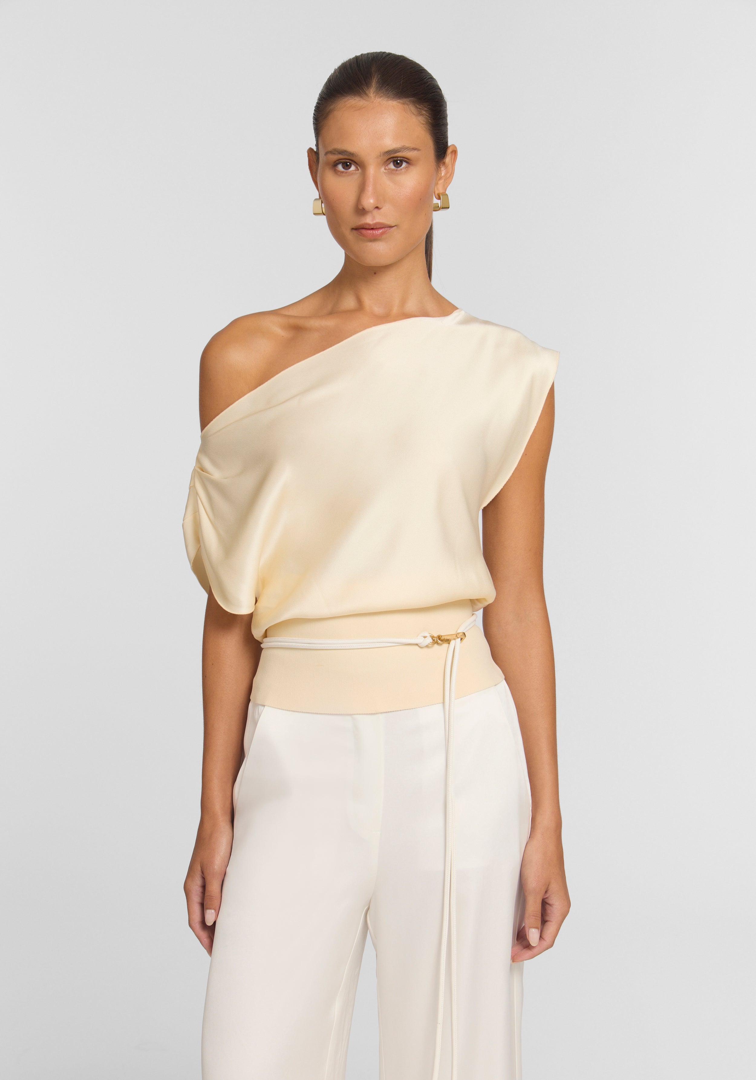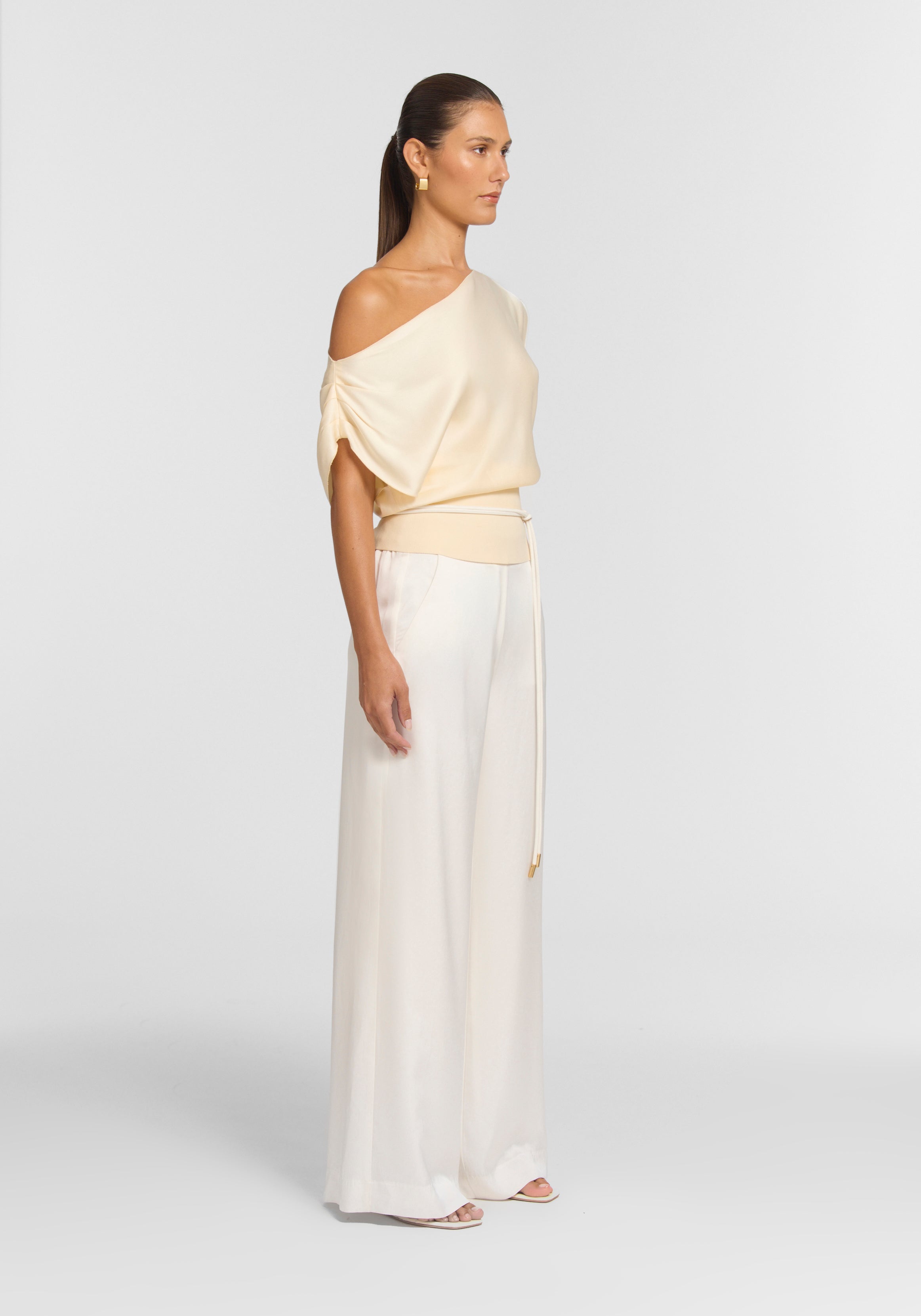 Embrace effortless femininity with the Mabel Top, crafted in a warm buttermilk hue. Designed with a soft boatneck neckline, extended shoulders, and subtle tucks for natural drape, it’s finished with a knitted hem panel for a softly sculpted silhouette. Pair with the Javier Skirt for a complete look, perfect for the eventing season.