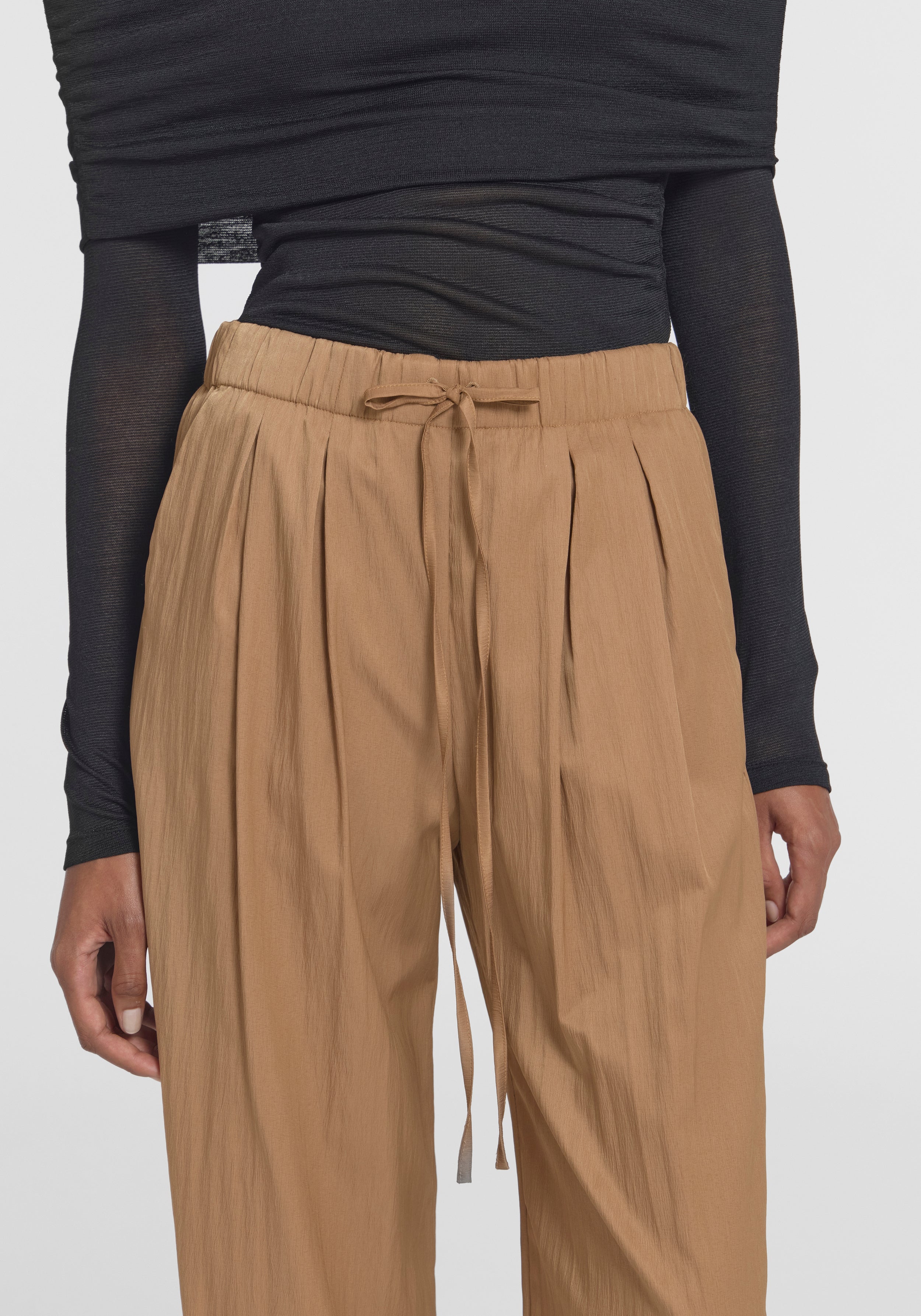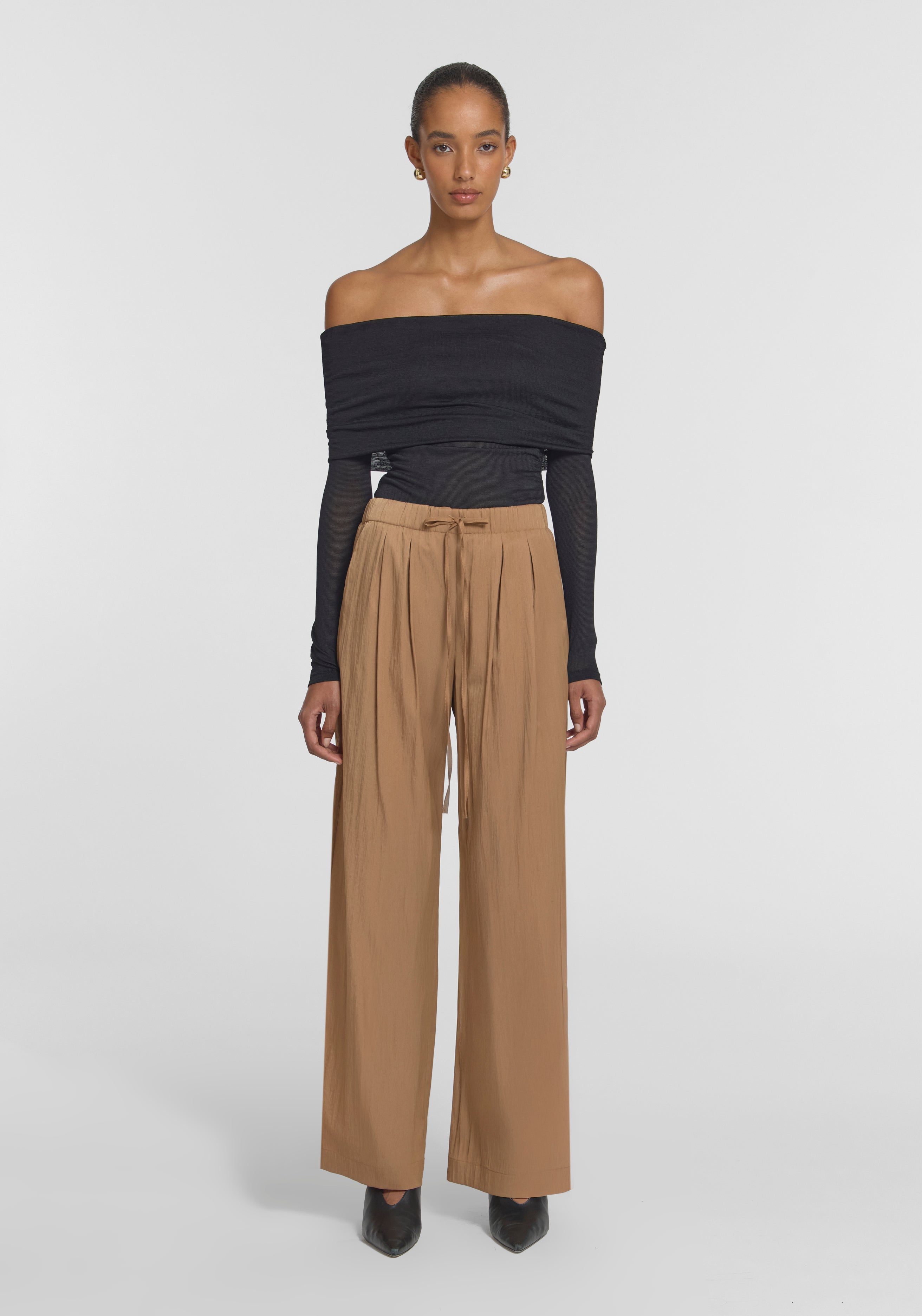 The Madden Pant channels modern sport utility in a warm hazelnut hue, crafted from a lightweight fabrication. Cut in a mid-rise, wide-leg silhouette, it features an encased elastic waistband with exposed tie detail, front inverted box pleats, and pockets. Designed to effortlessly integrate into your wardrobe system, or pair with the Whitethorn Jacket for polished athleticism, engineered for a life in motion.