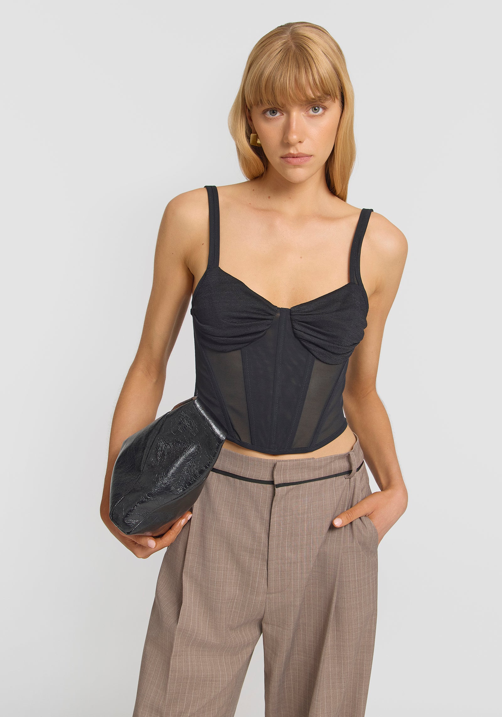- Powermesh bustier with scooped neckline