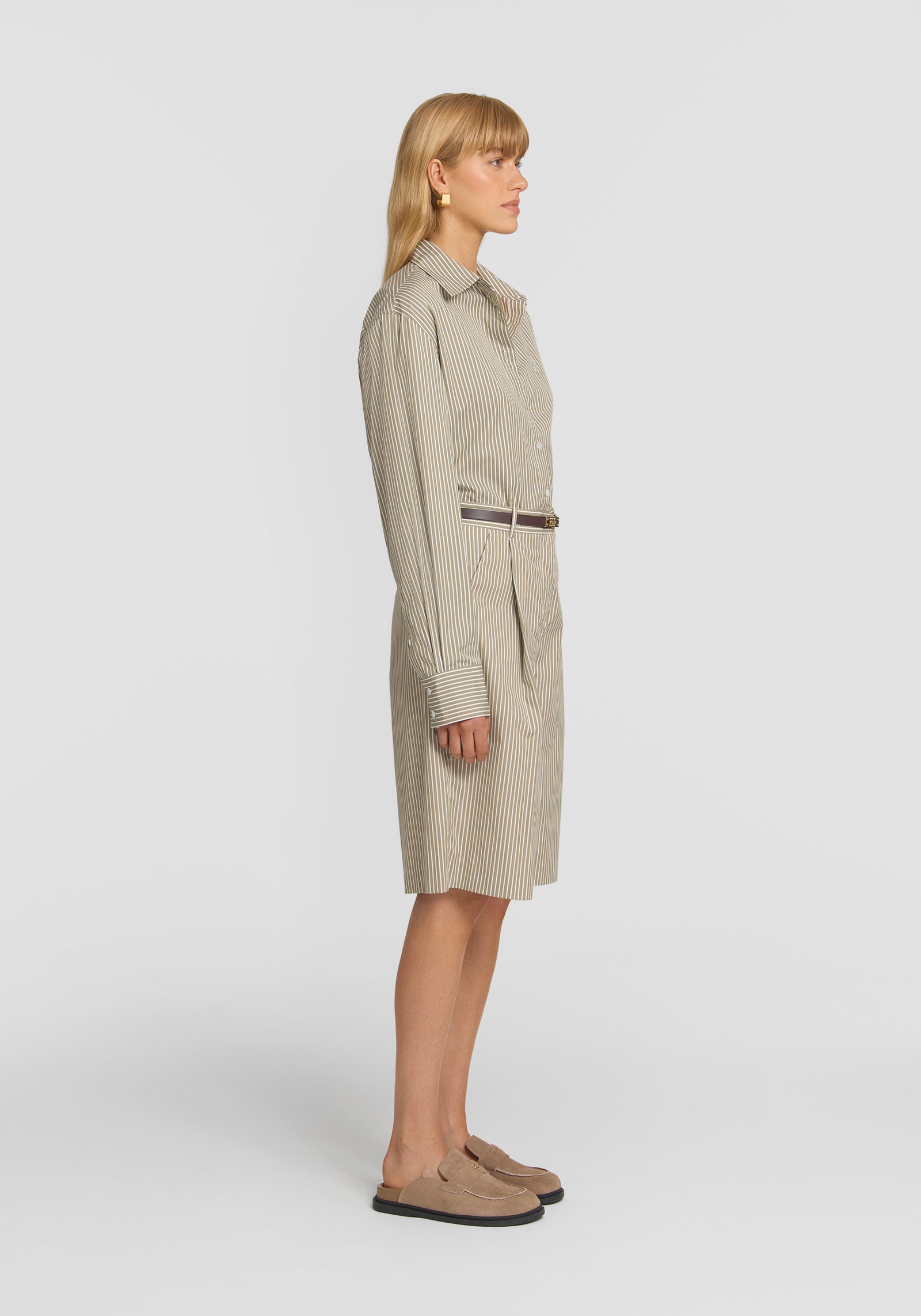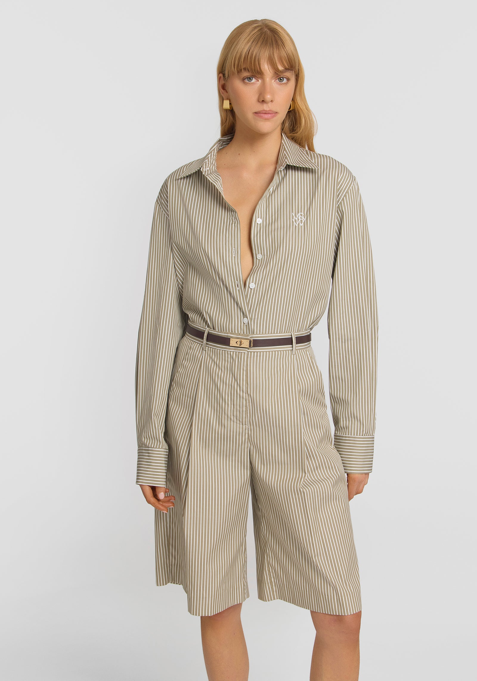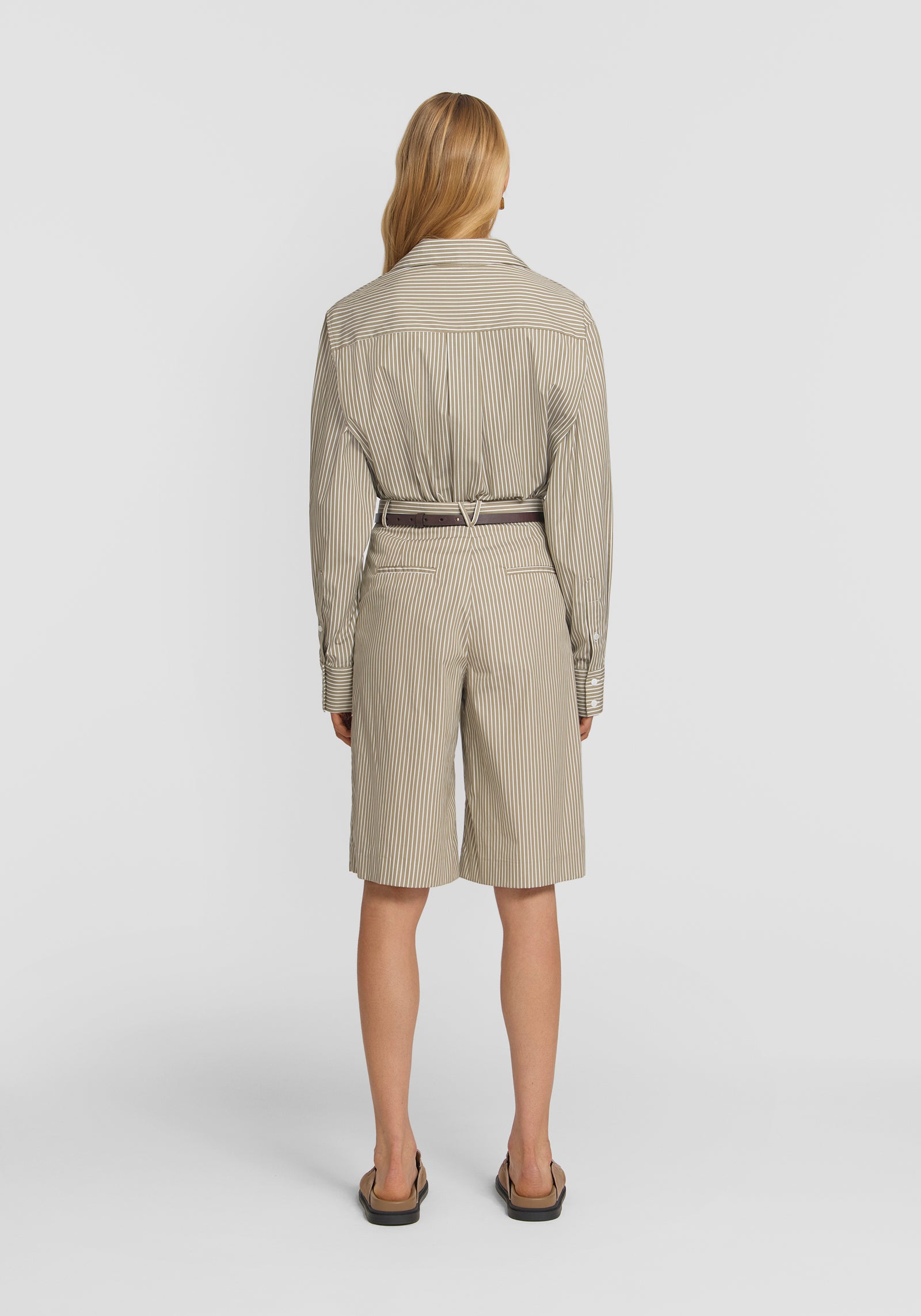 An effortless packing essential, the Monologue Short features a versatile pistachio green stripe. Sitting at the true waist, these shorts offer a straight-leg profile, subtle front tuck detailing, and are finished with pockets and belt loops. Perfect for your next escape, pair with the Trinity Shirt for an effortlessly chic look or style with swimwear for the ultimate beachside ensemble.