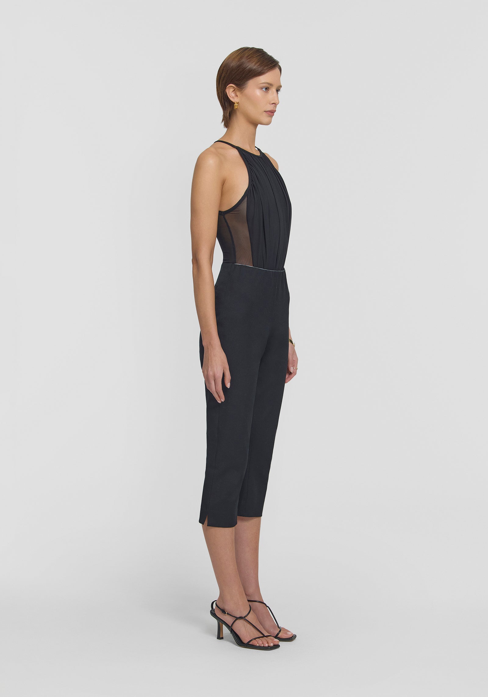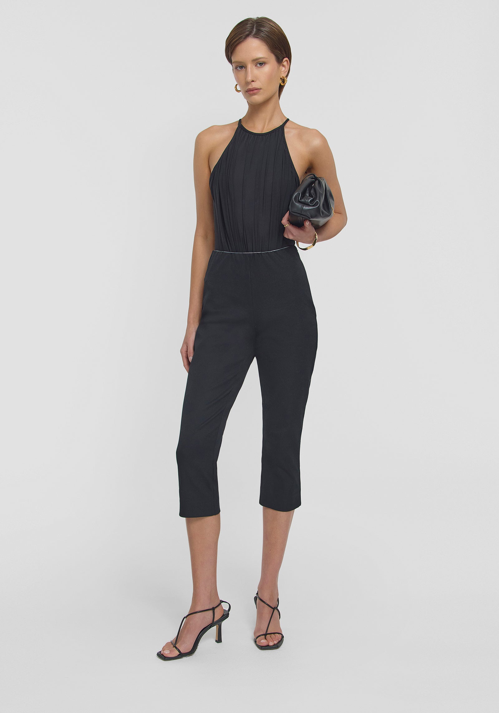 Introducing the Moonbeam Capri Pant in black, our take on this season's must-have silhouette. With a mid-rise fit, they hit mid-calf and feature a chic side split at the hem. Perfect for transitioning from day to night, effortlessly redefining everyday styling with a touch of cool-girl sophistication.