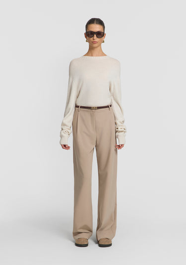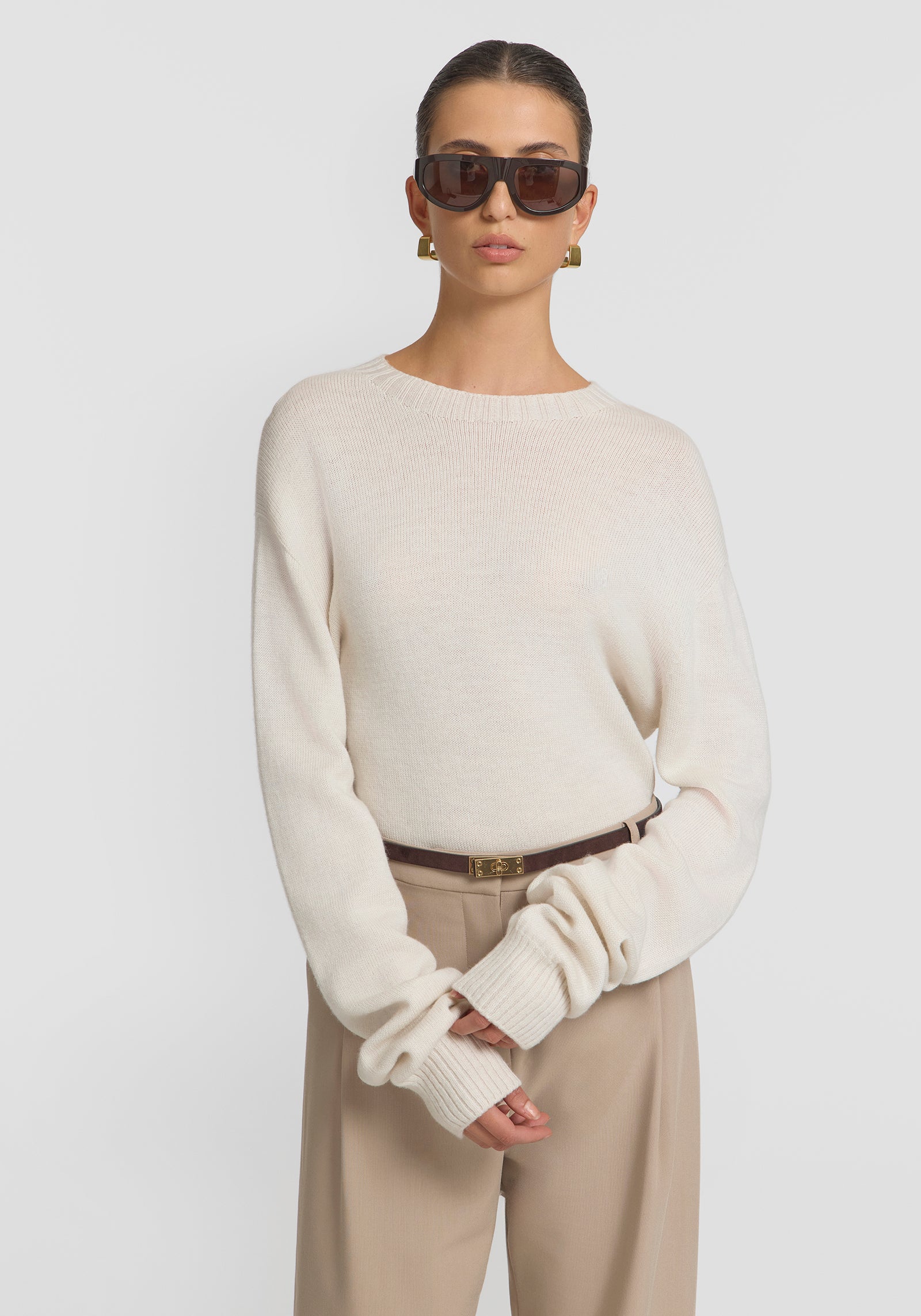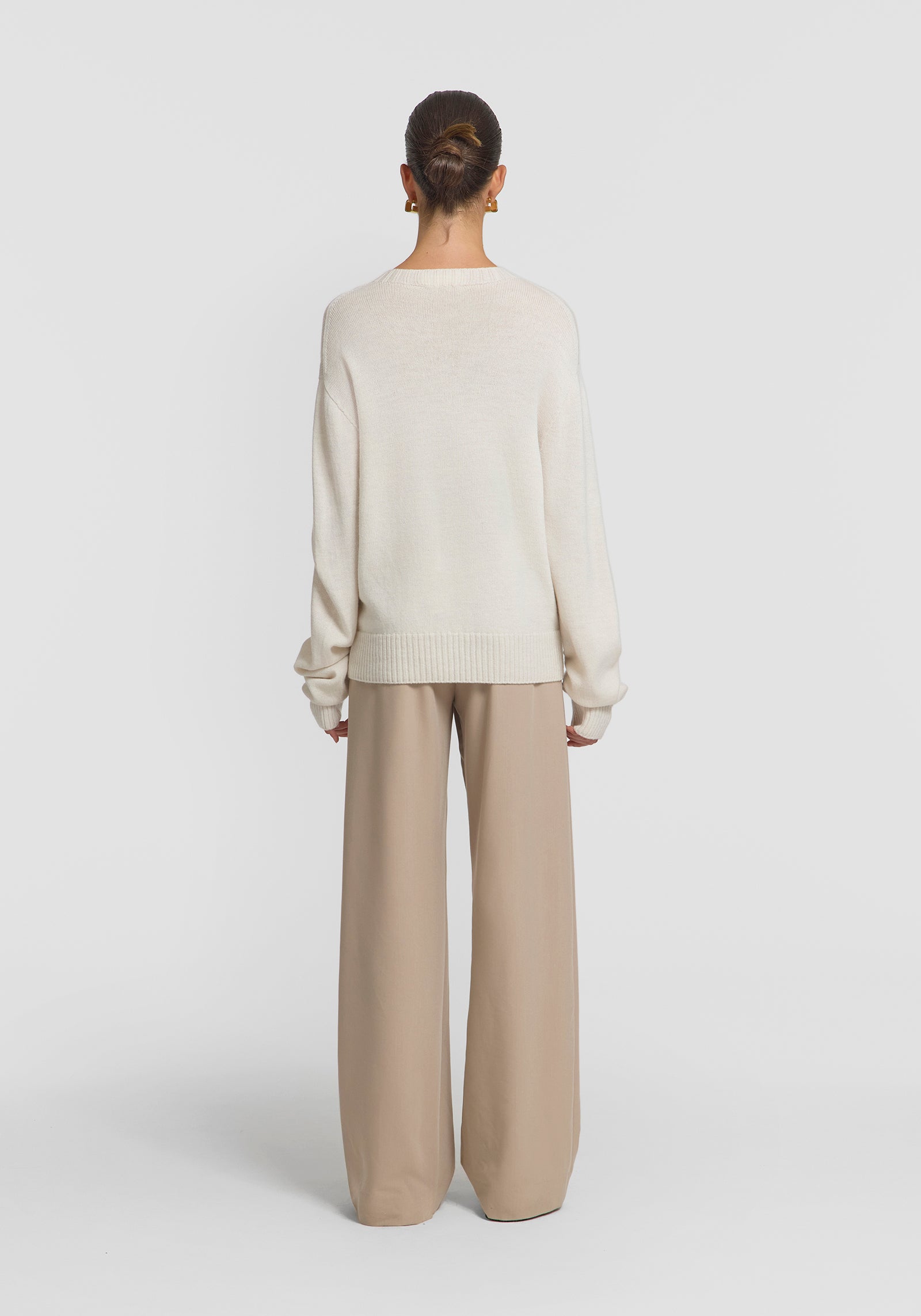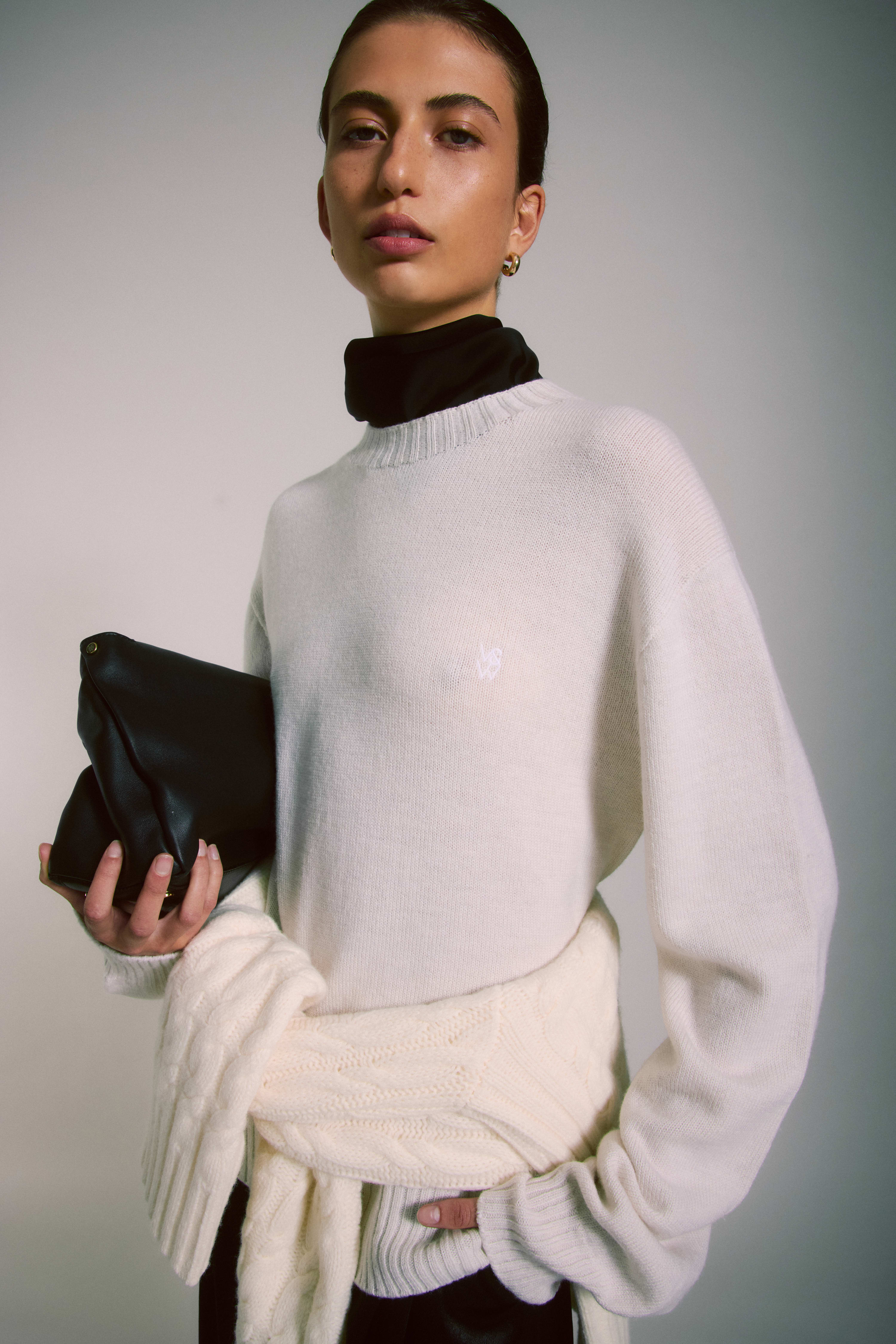 An effortless addition to your winter capsule wardrobe, the Nantucket Knit is crafted from luxurious ivory merino wool. With a relaxed, slouchy fit and a classic crew neck, it’s detailed with tonal V&W embroidery and ribbed hem and sleeve cuffs. Perfect for layering or travel, this lightweight knit offers warmth in a clean silhouette, making it a timeless essential.