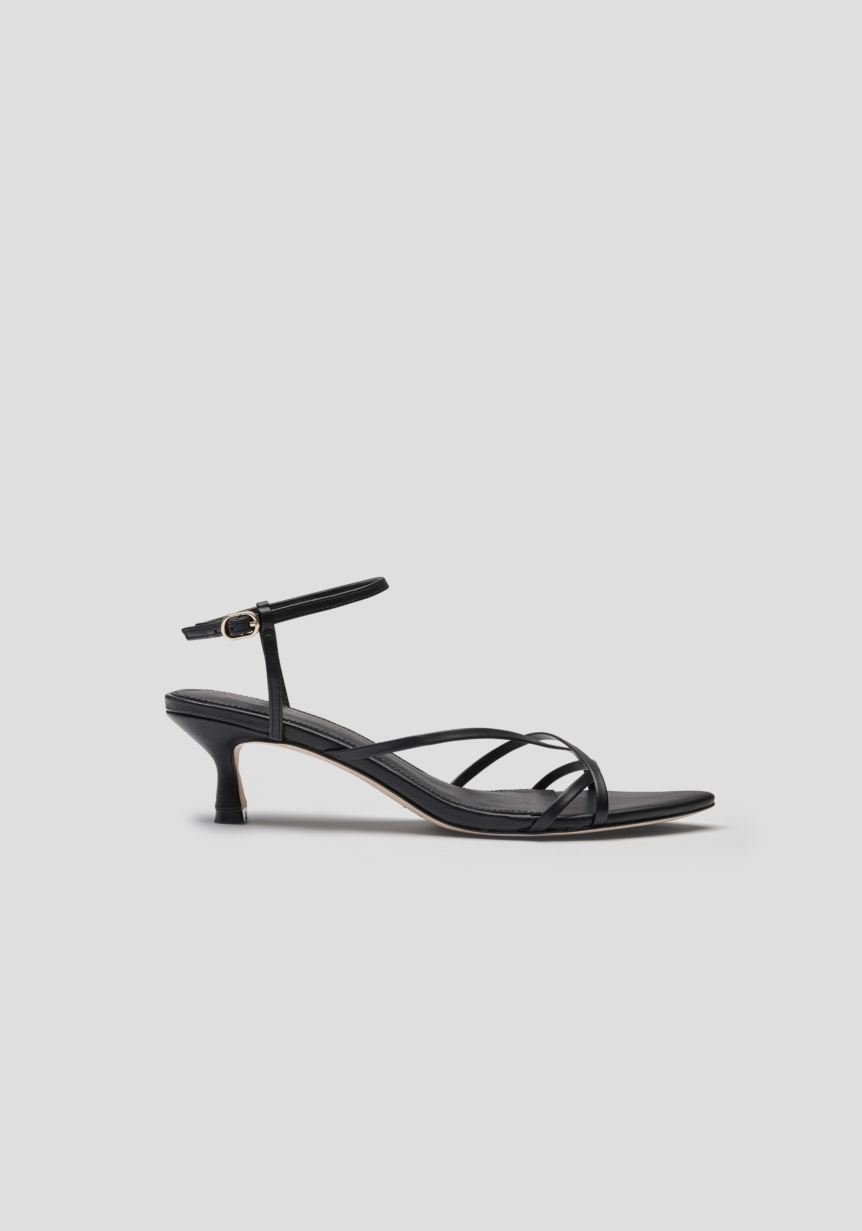 A diverse heel for any wardrobe, the Naples Heel is crafted in black nappa leather. This refined strappy style features a classic pointed toe, an adjustable ankle strap with buckle detail and an effortless 4cm heel, offering pure foundational form and artful simplicity.