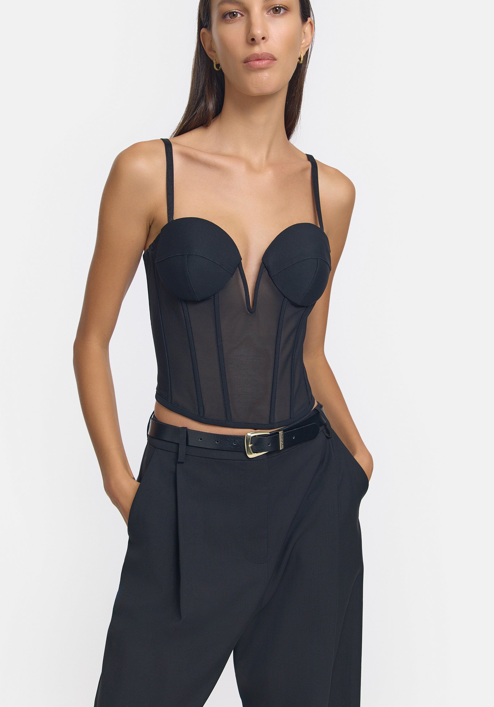 The Narcissist Bustier is a captivating addition to the V&W power mesh narrative. This corset top features a double layer of mesh around the bust, boning through the body, and a sweetheart neckline, creating an alluring and bold look. Elevate your ensemble with the Lynx Pant for a sophisticated, all-black statement, or exude effortless chic by pairing it with denim.