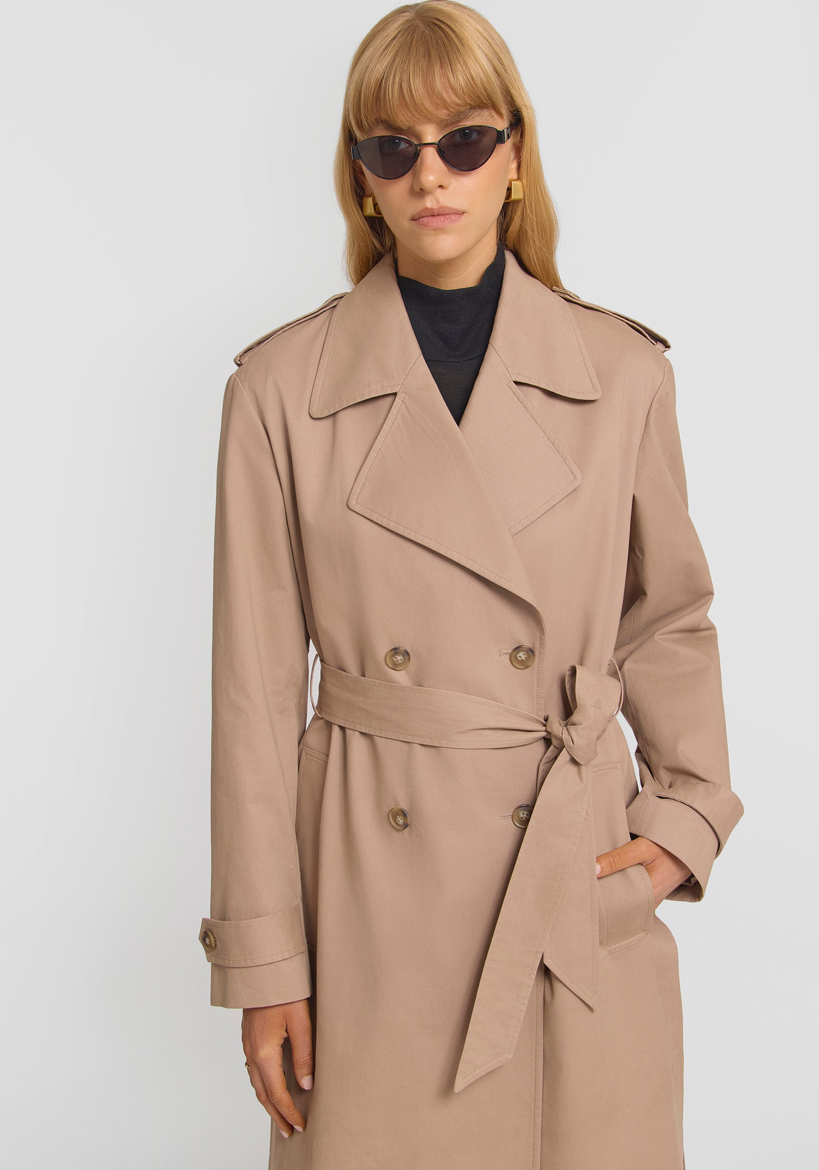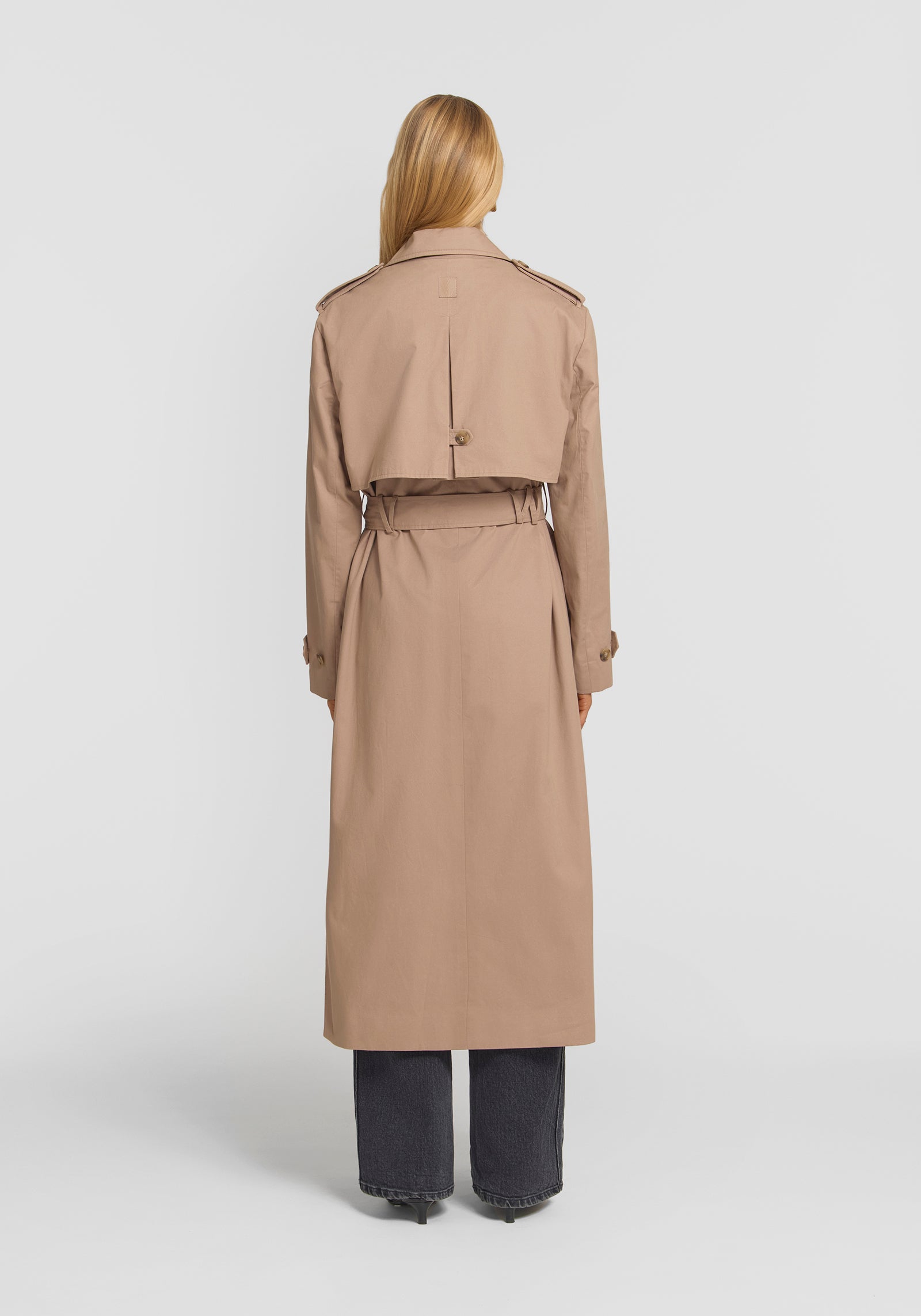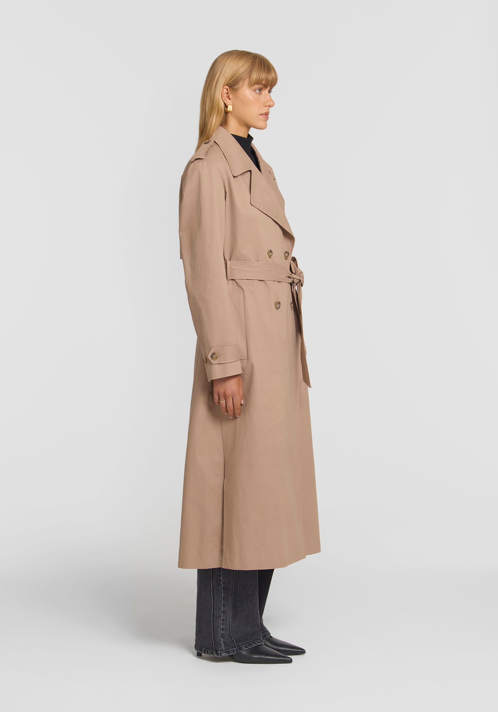 The Newcomer Trench is a timeless outerwear staple, crafted from dark sand cotton. Featuring classic trench coat details - a double breasted design, relaxed silhouette, and oversized collar and lapel. Complete with V&W signature belt loops, logo buttons, and side seam split openings, this intelligent investment elevates any look, offering versatility and seasonless wear.