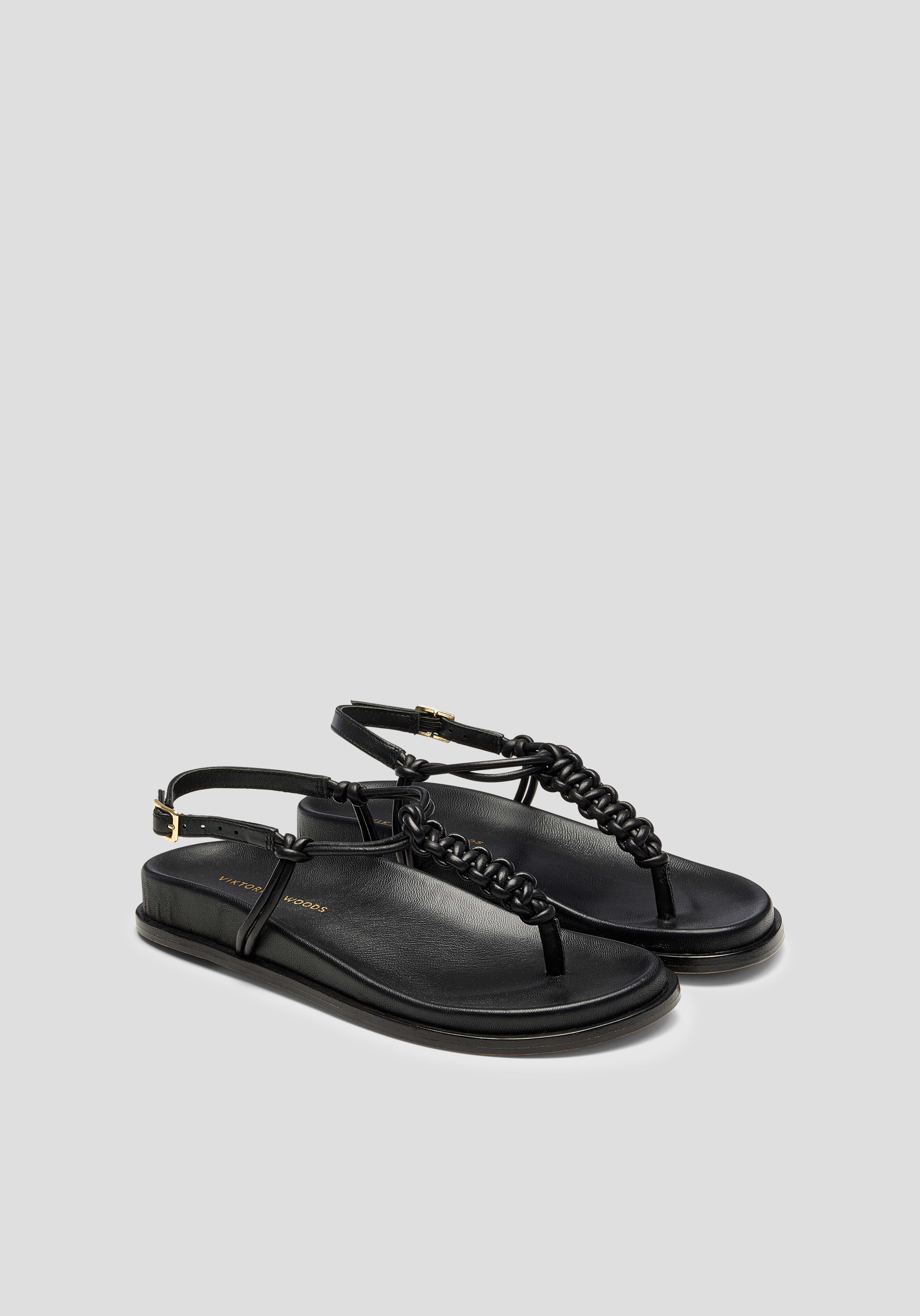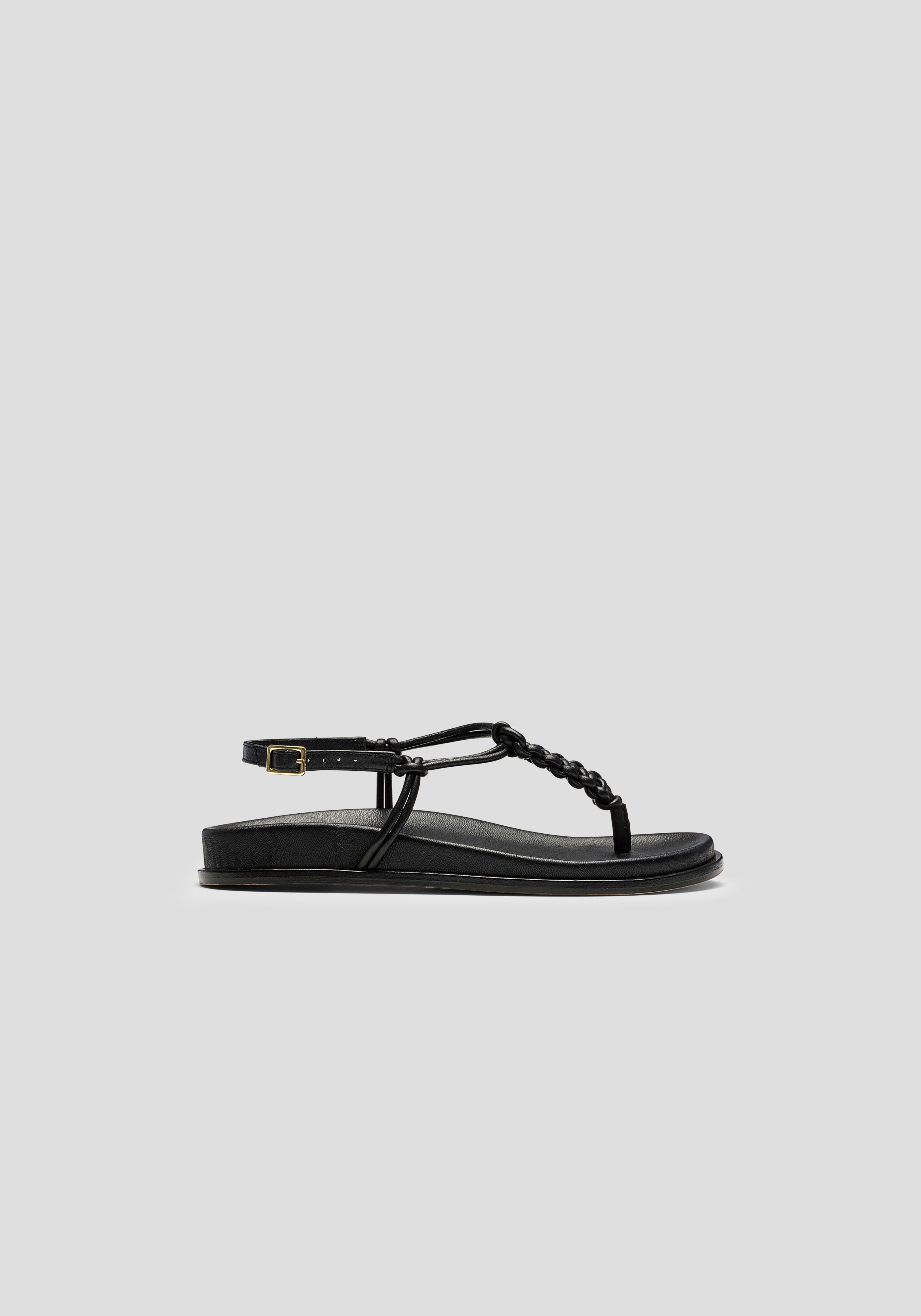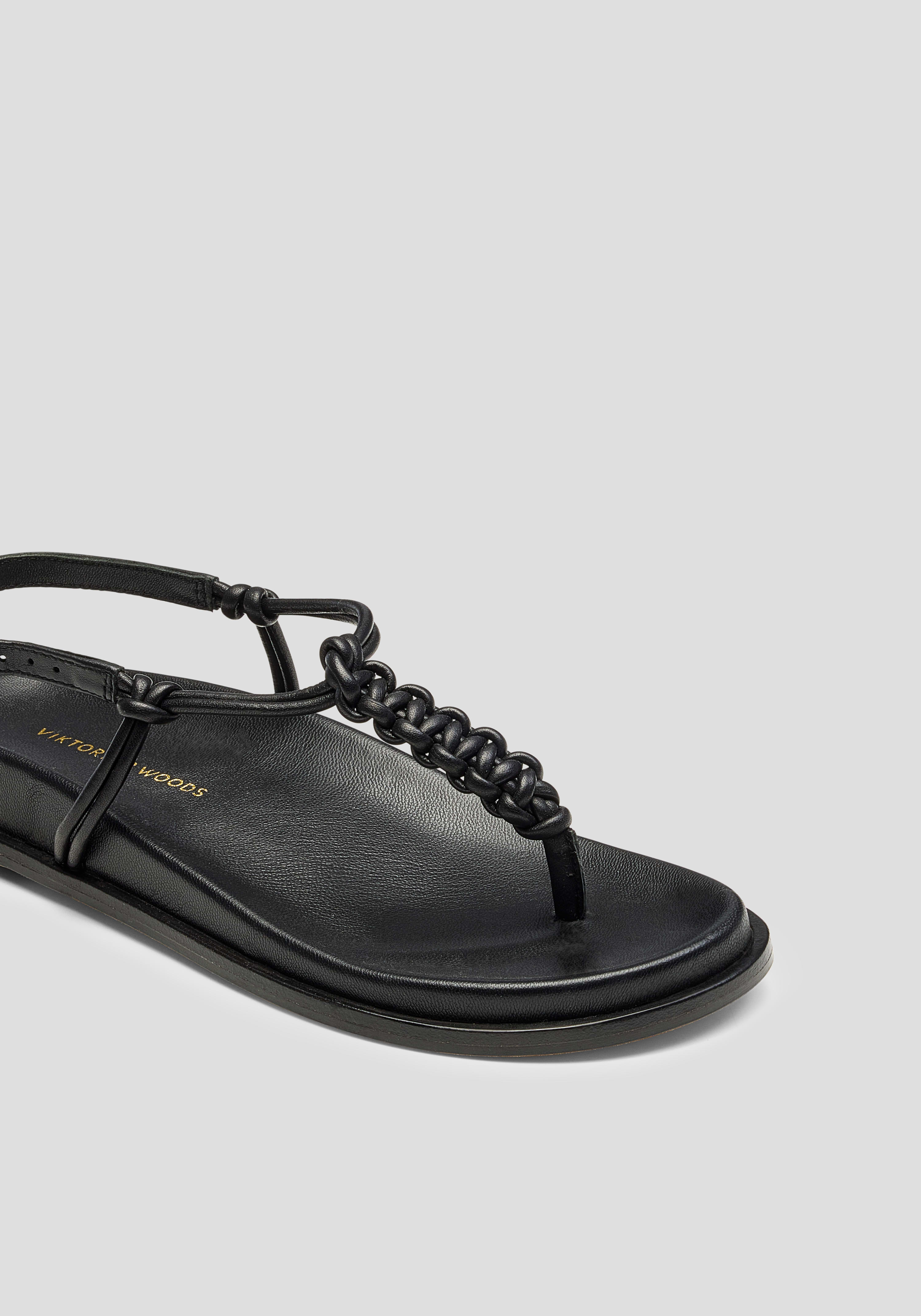 Offering effortless versatility for the warmer months, the Nico Sandal is luxuriously crafted in black leather. With a hand-braided design, slingback construction with buckle, and contoured footbed, this sandal is destined to become a timeless staple.