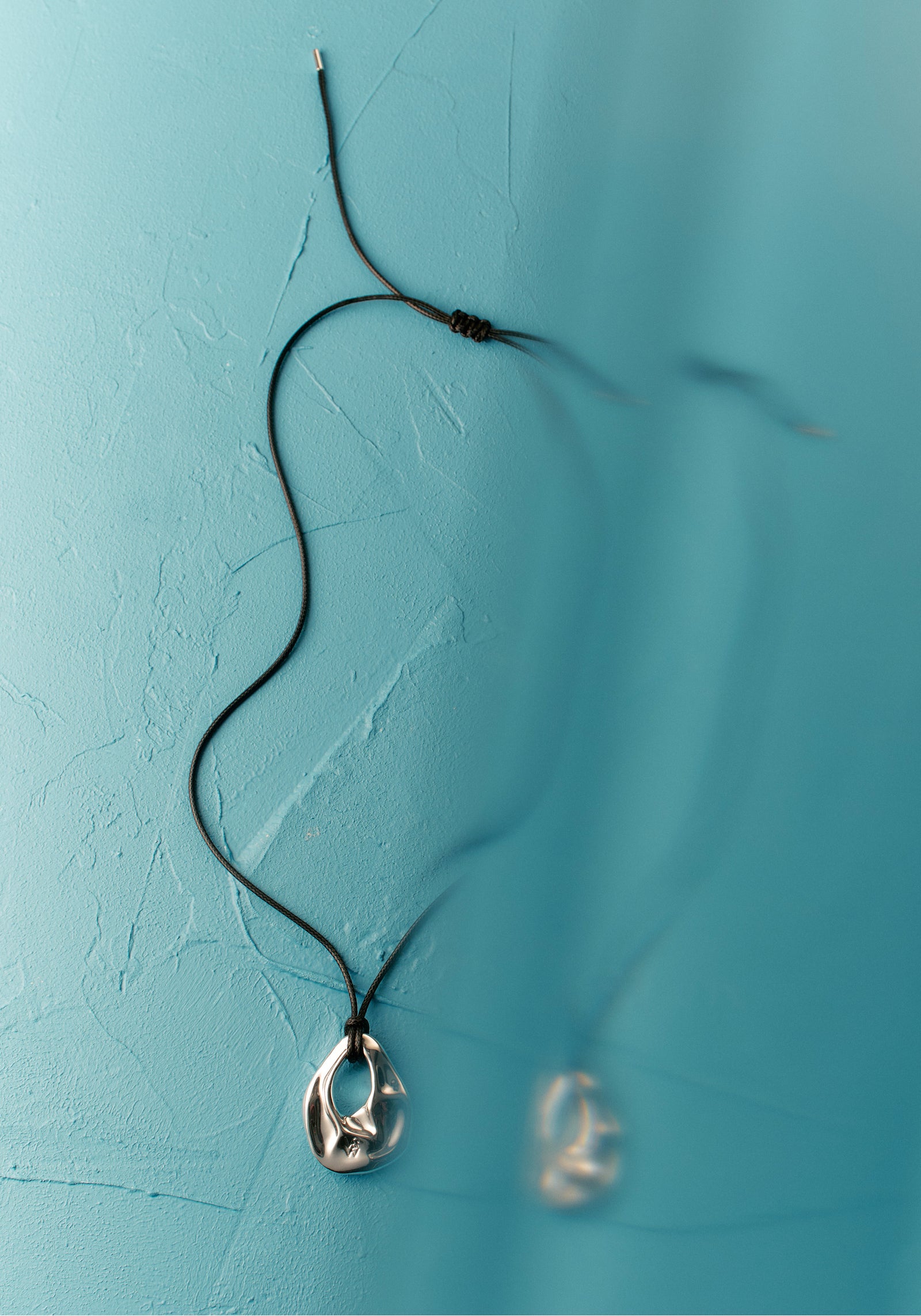The Organic Pendant Necklace is a confident, artful statement crafted in sterling silver. Showcasing an organic-shaped pendant with subtle debossed V&W branding, it effortlessly transforms your everyday outfitting.