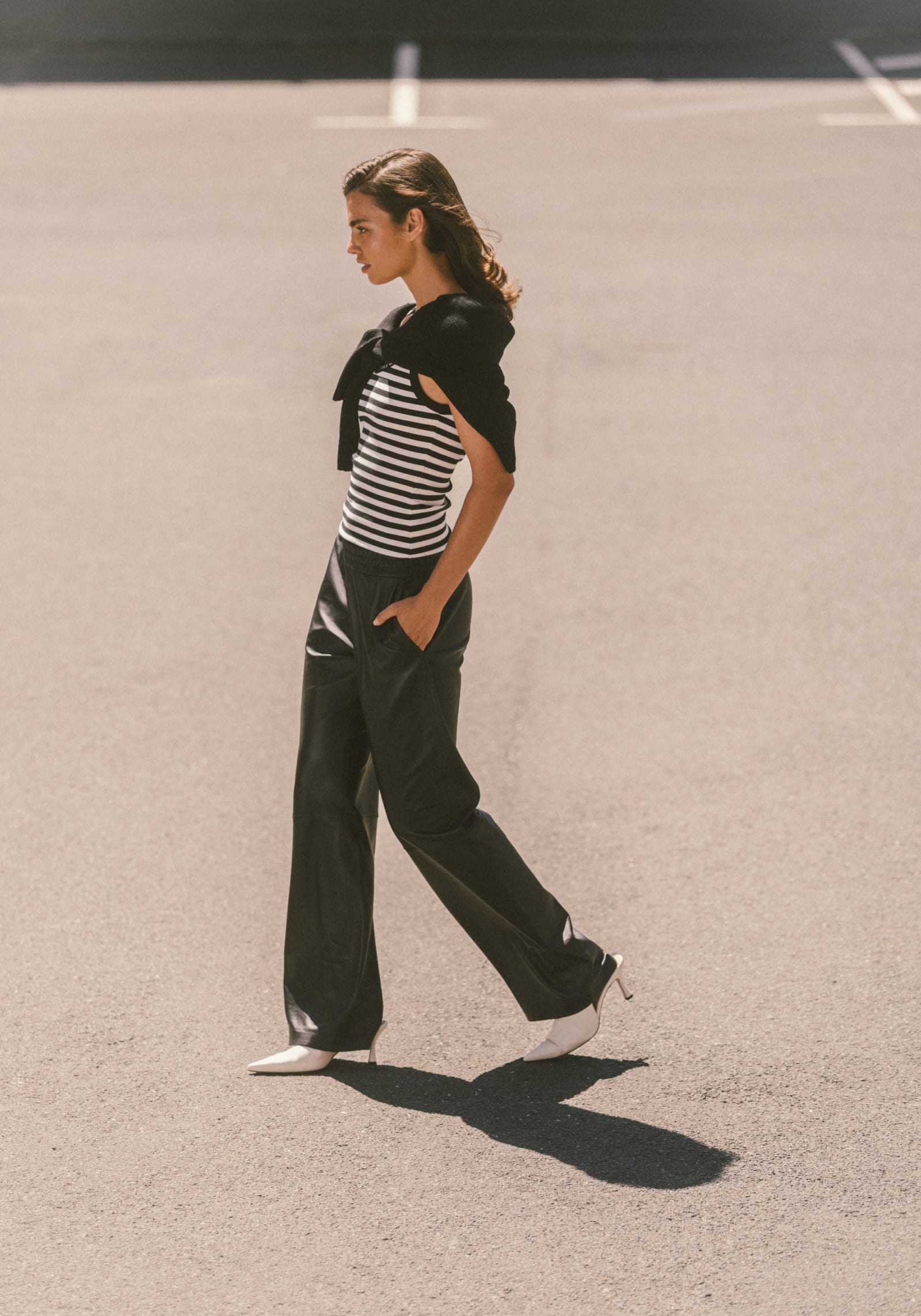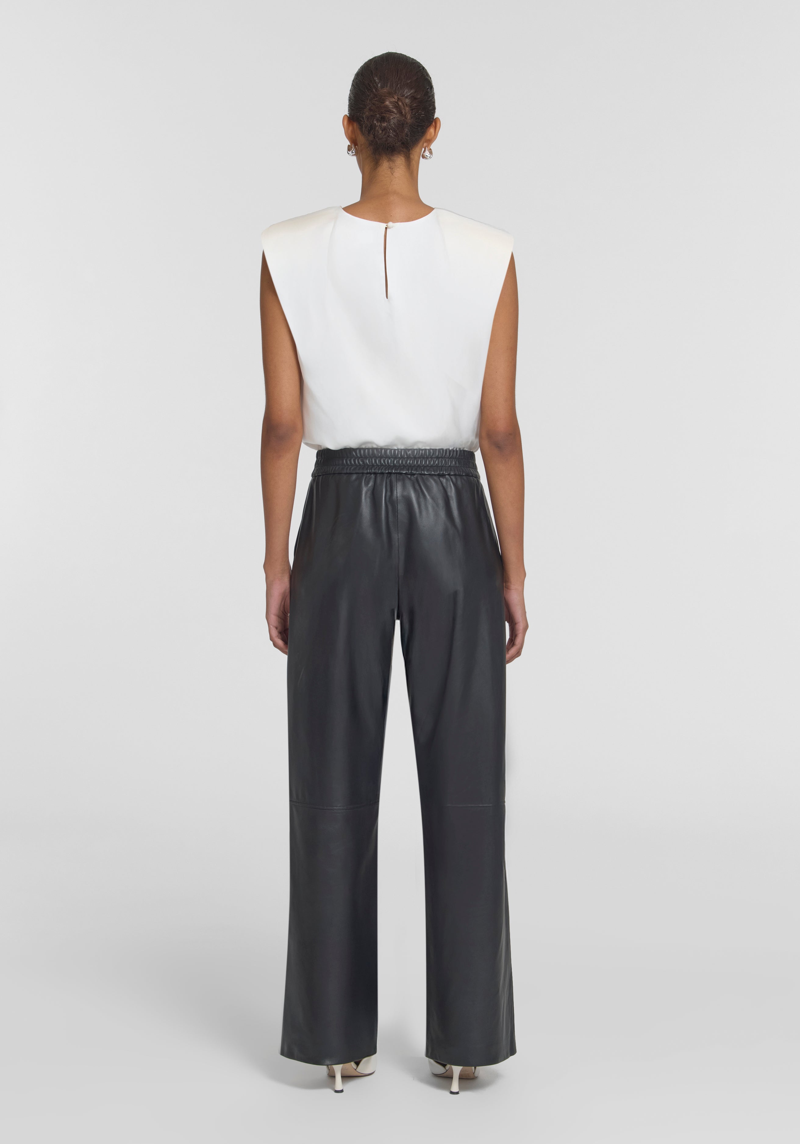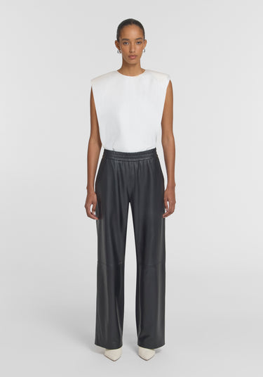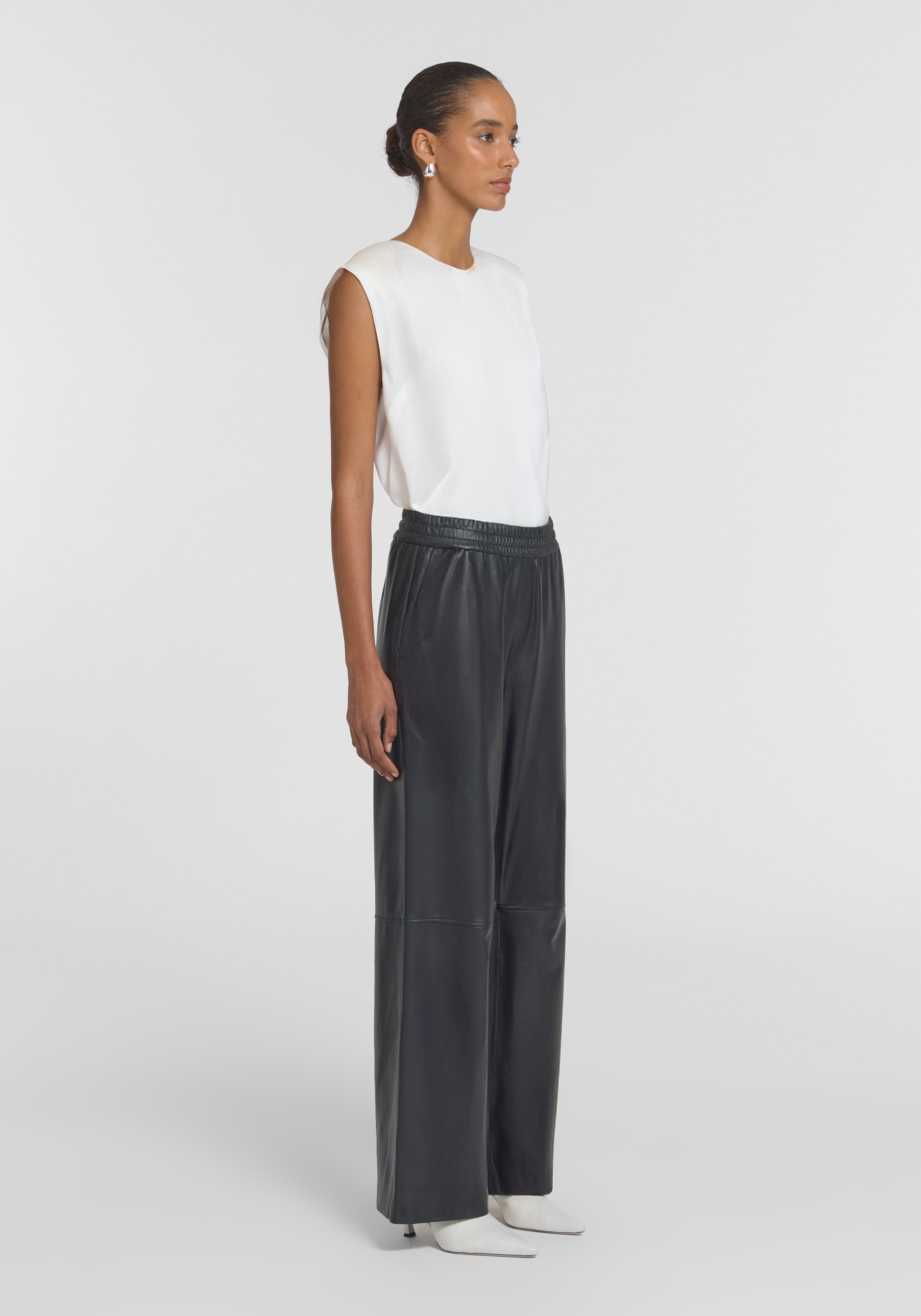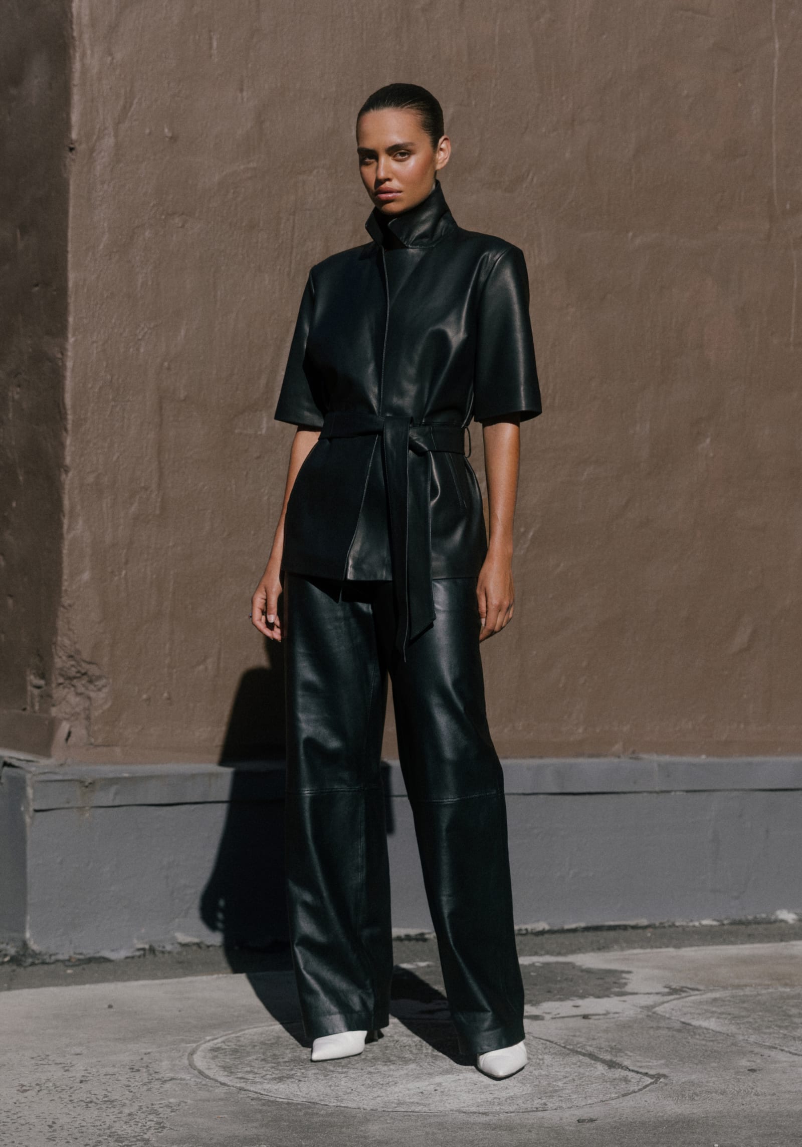 A definitive investment in enduring style, the Pilot Leather Pant reinvents the Pilot Pant in luxurious, soft black nappa leather. Cut in a straight-leg silhouette with a versatile rise and elasticated waistband, it features pockets and a knee seam, balancing utility with bold structure. Designed to be a pillar of everyday dressing, pair with V&W essentials or the Chorus Leather Shirt for a commanding, confident statement.